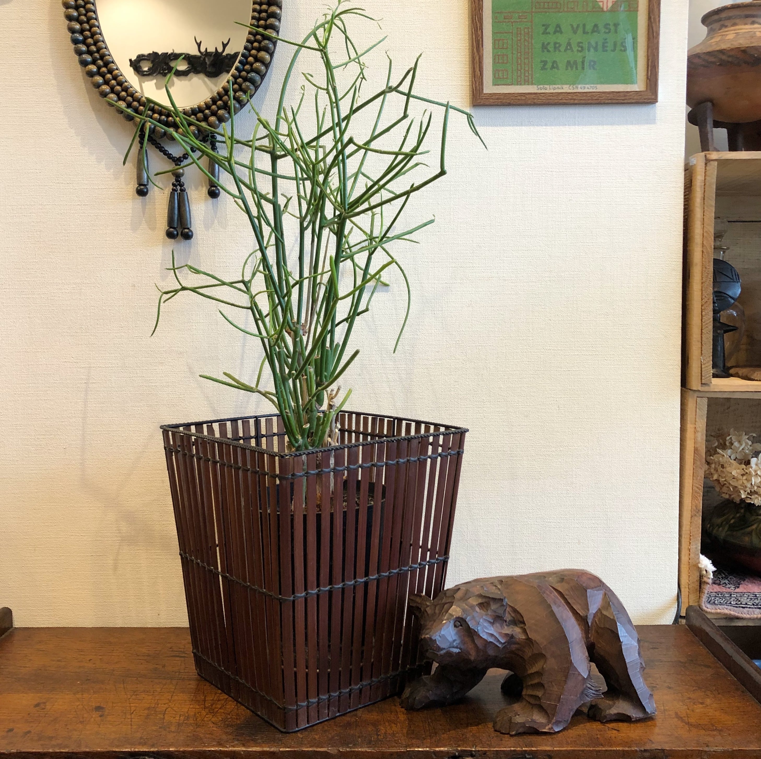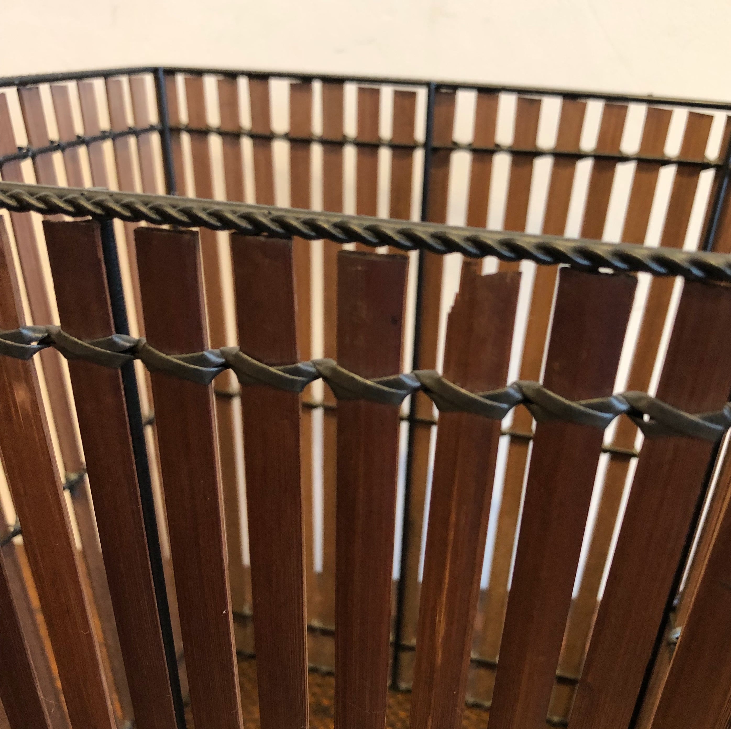 アイアンフレームにバンブー素材が編み込まれたヴィンテージバスケット。