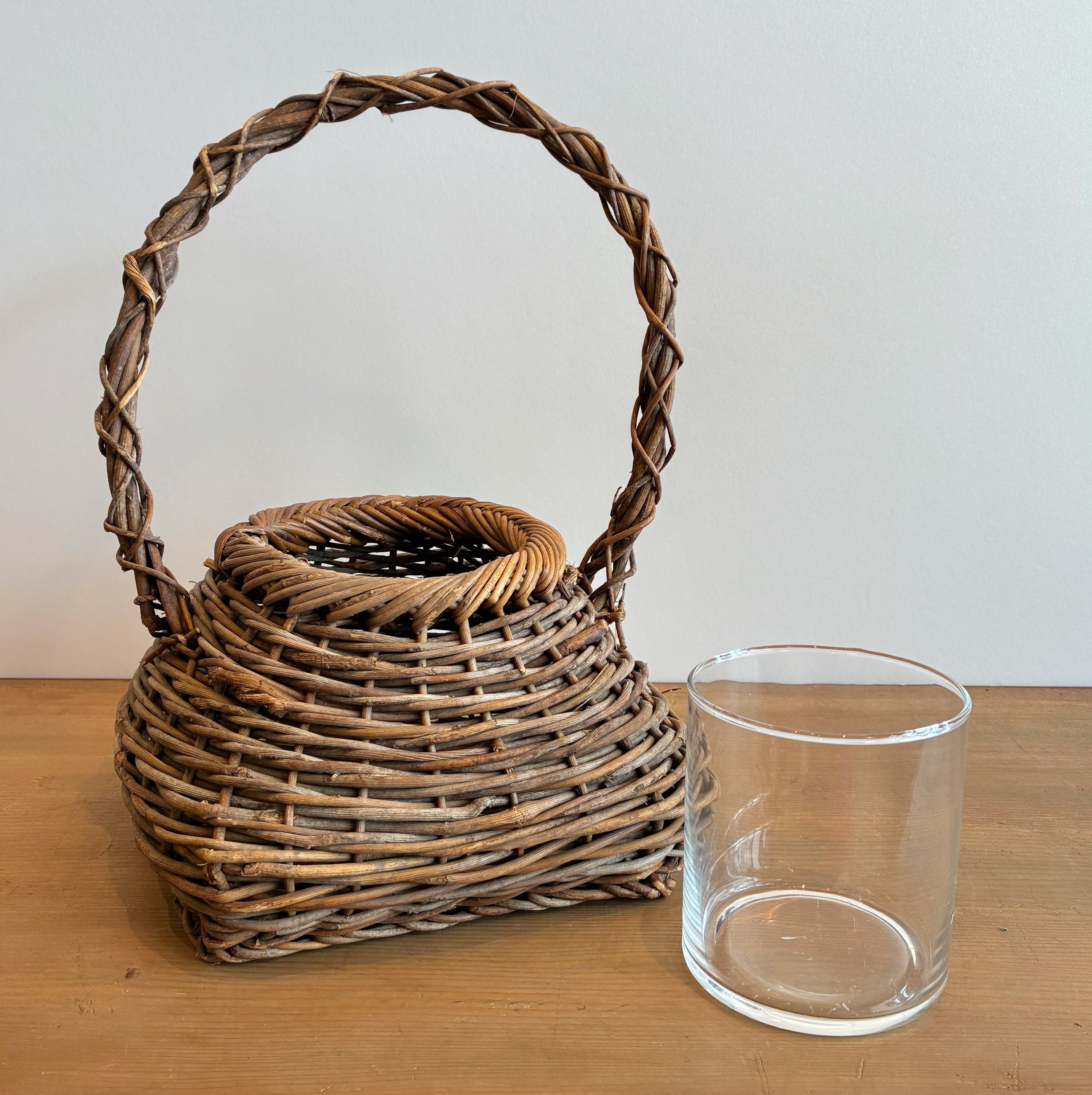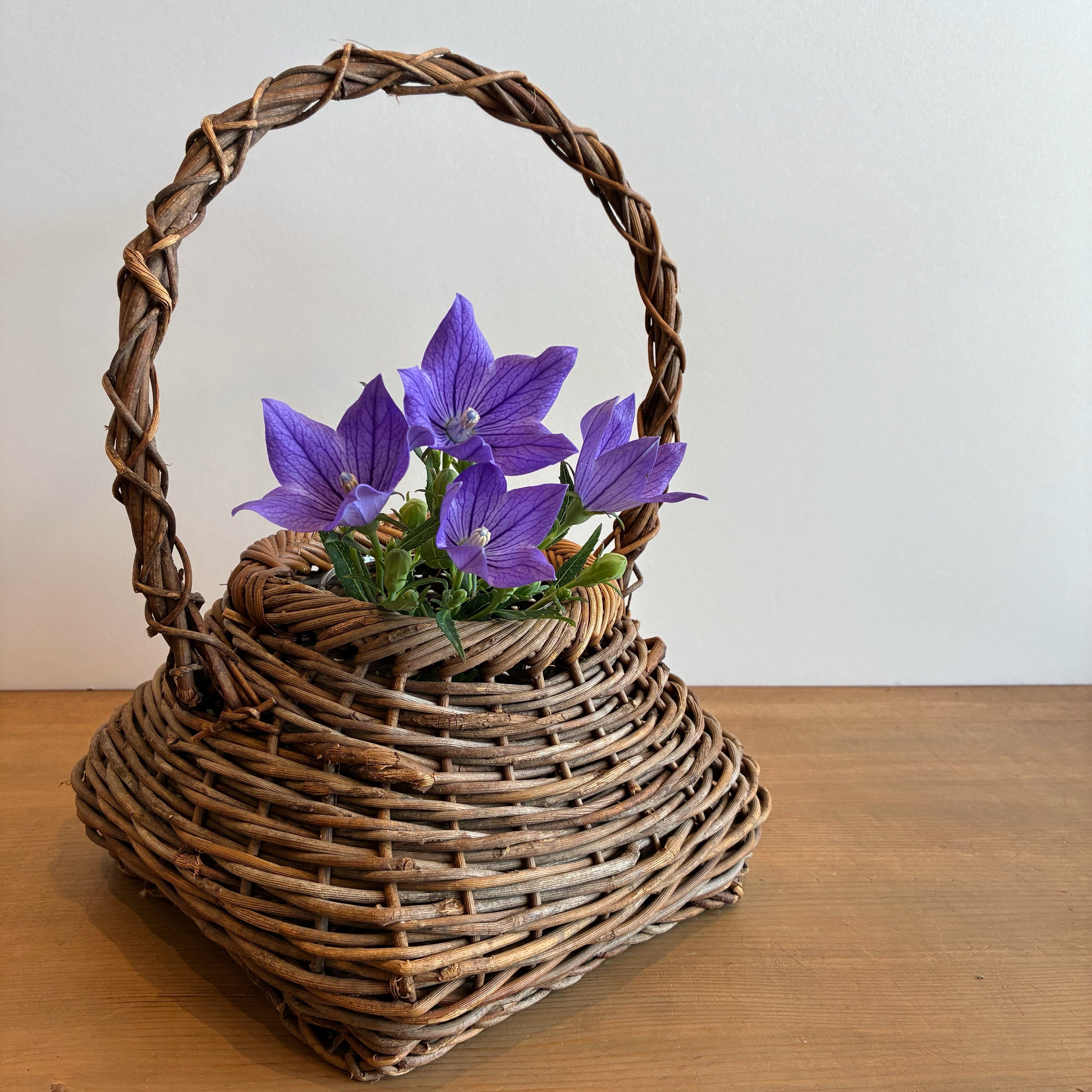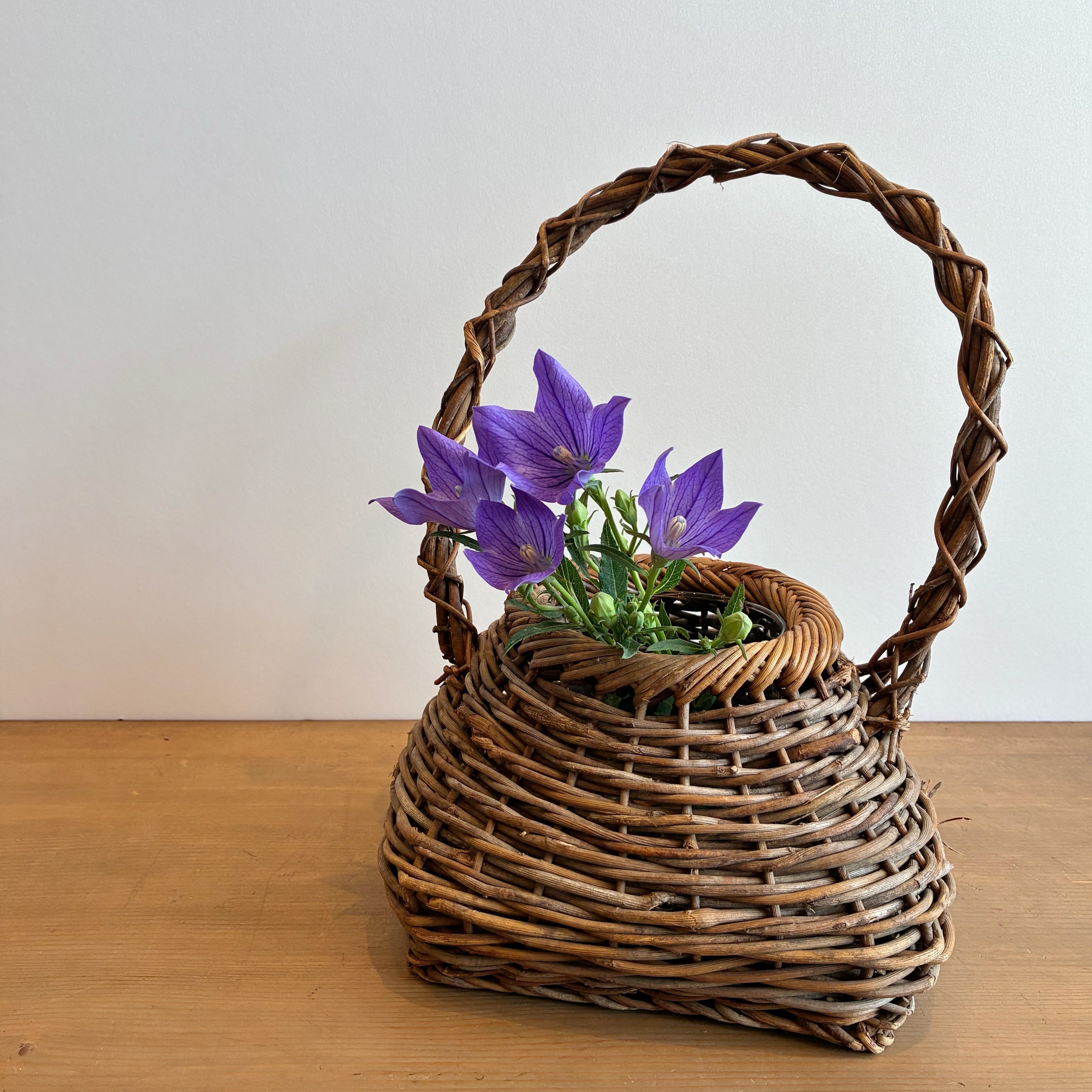 野趣あふれた蔓編みのかごは、和洋どんな花もよく似合いそうです。