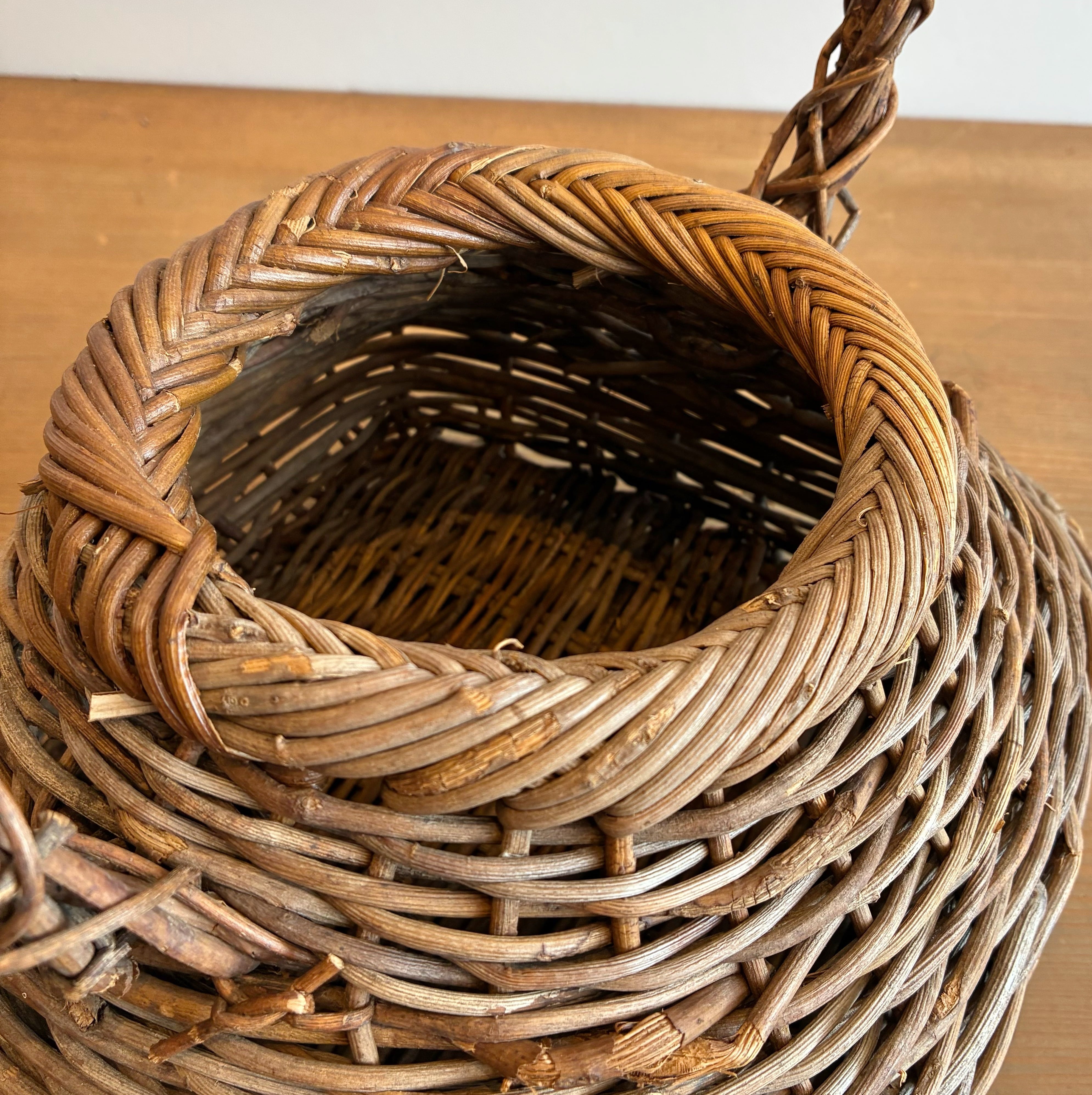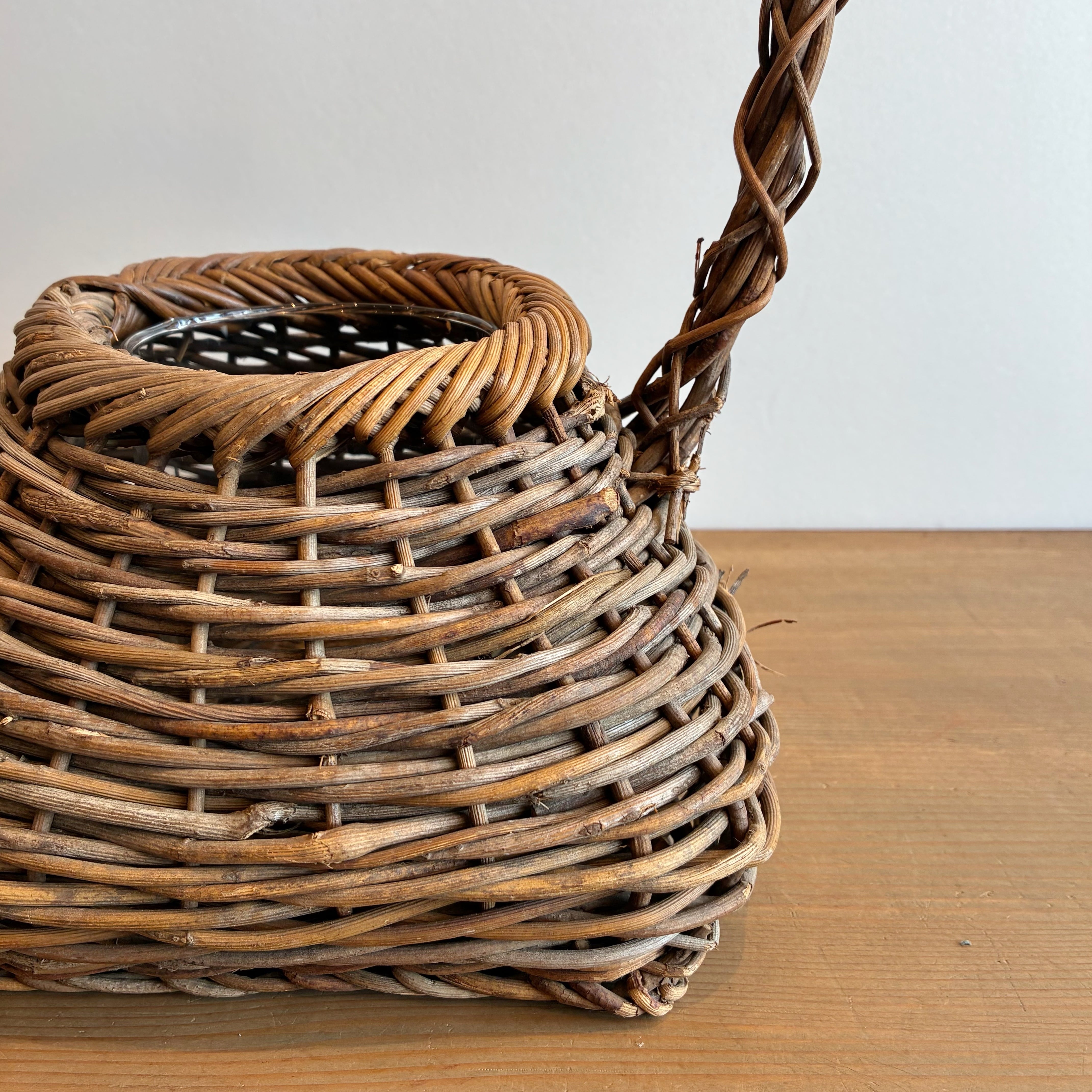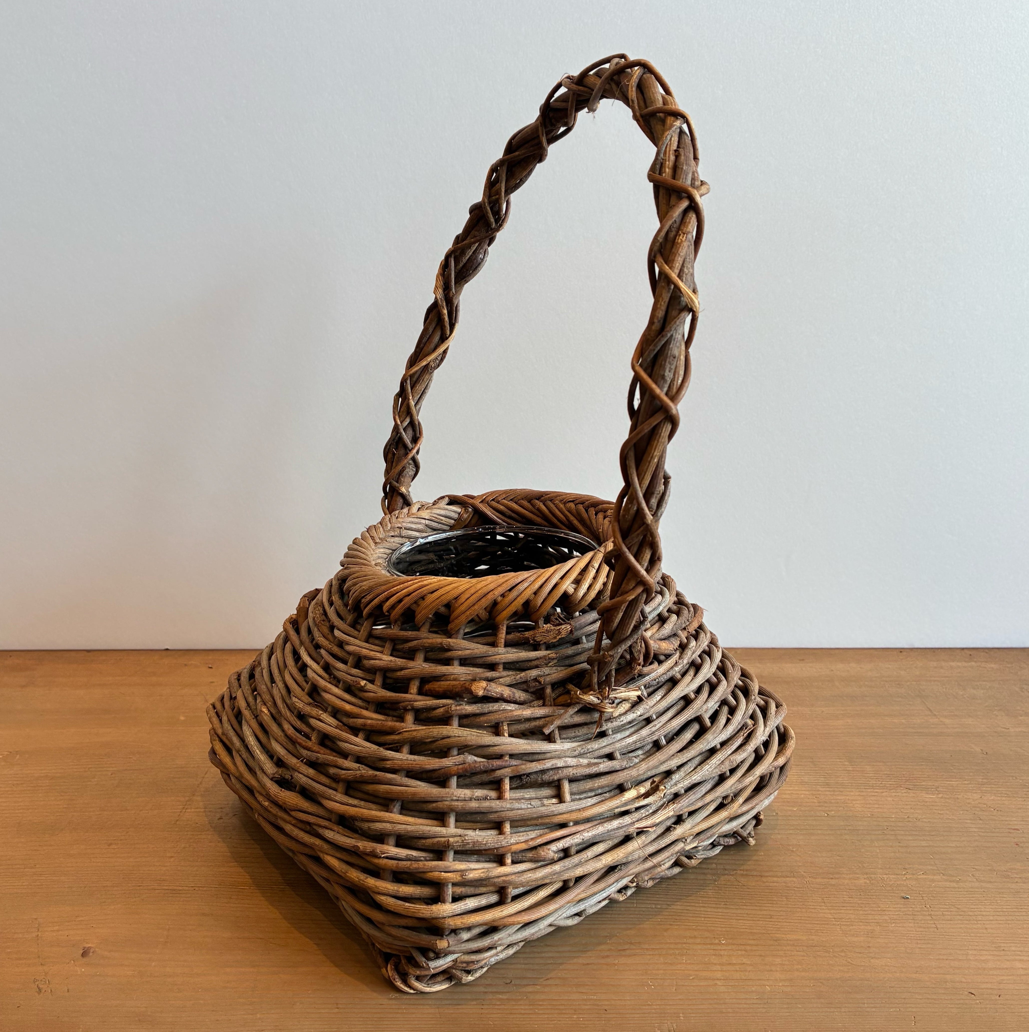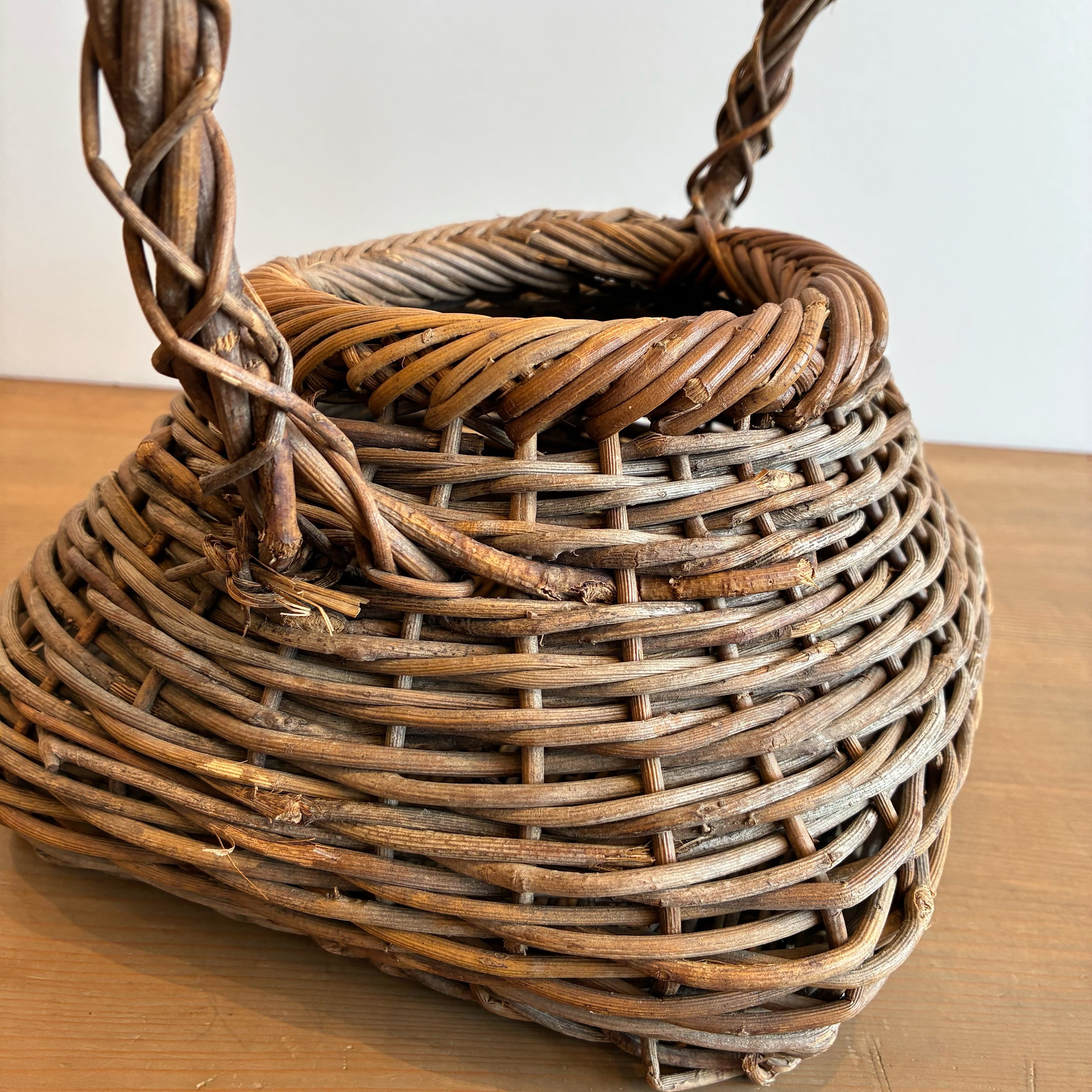 野趣あふれた蔓編みのかごは、和洋どんな花もよく似合いそうです。
