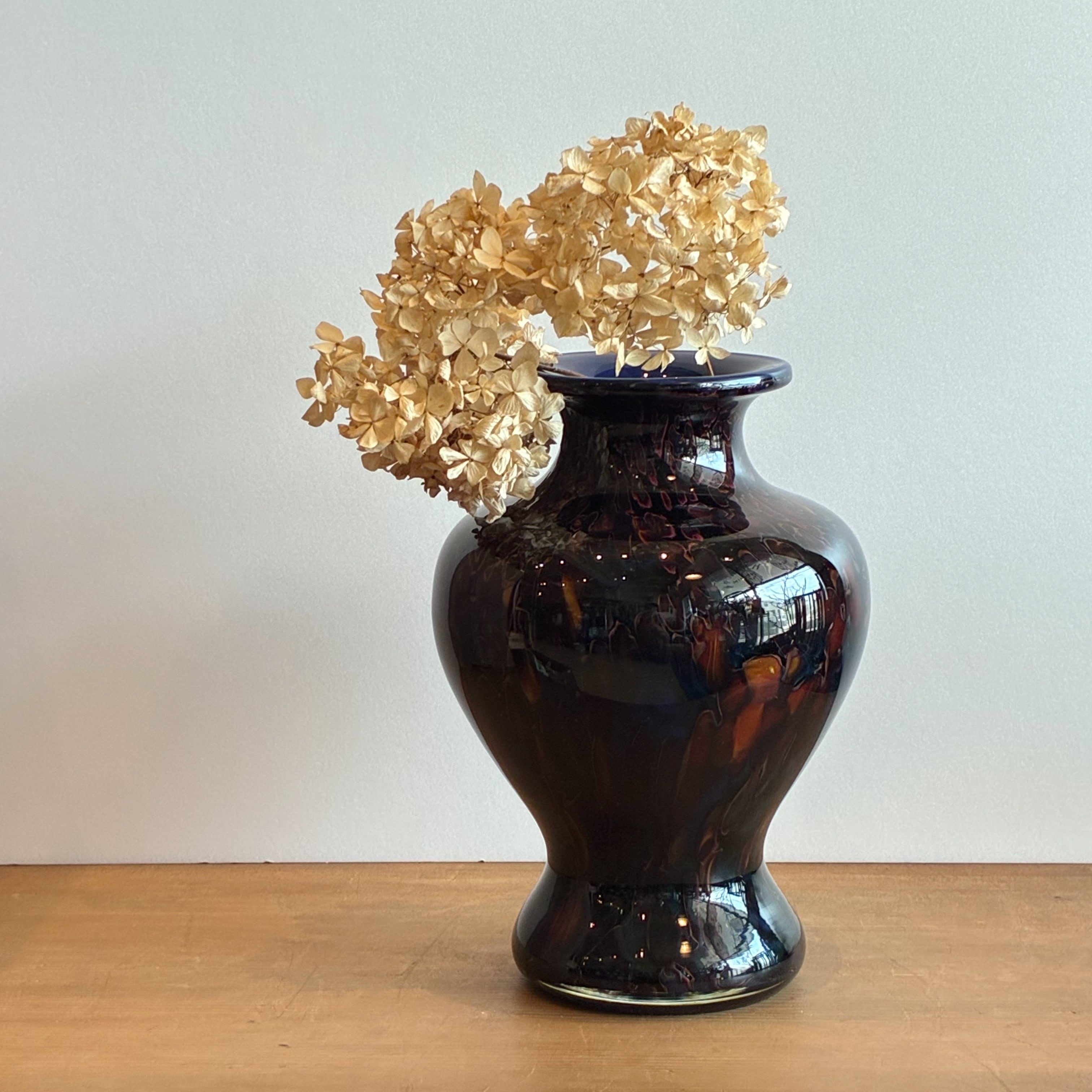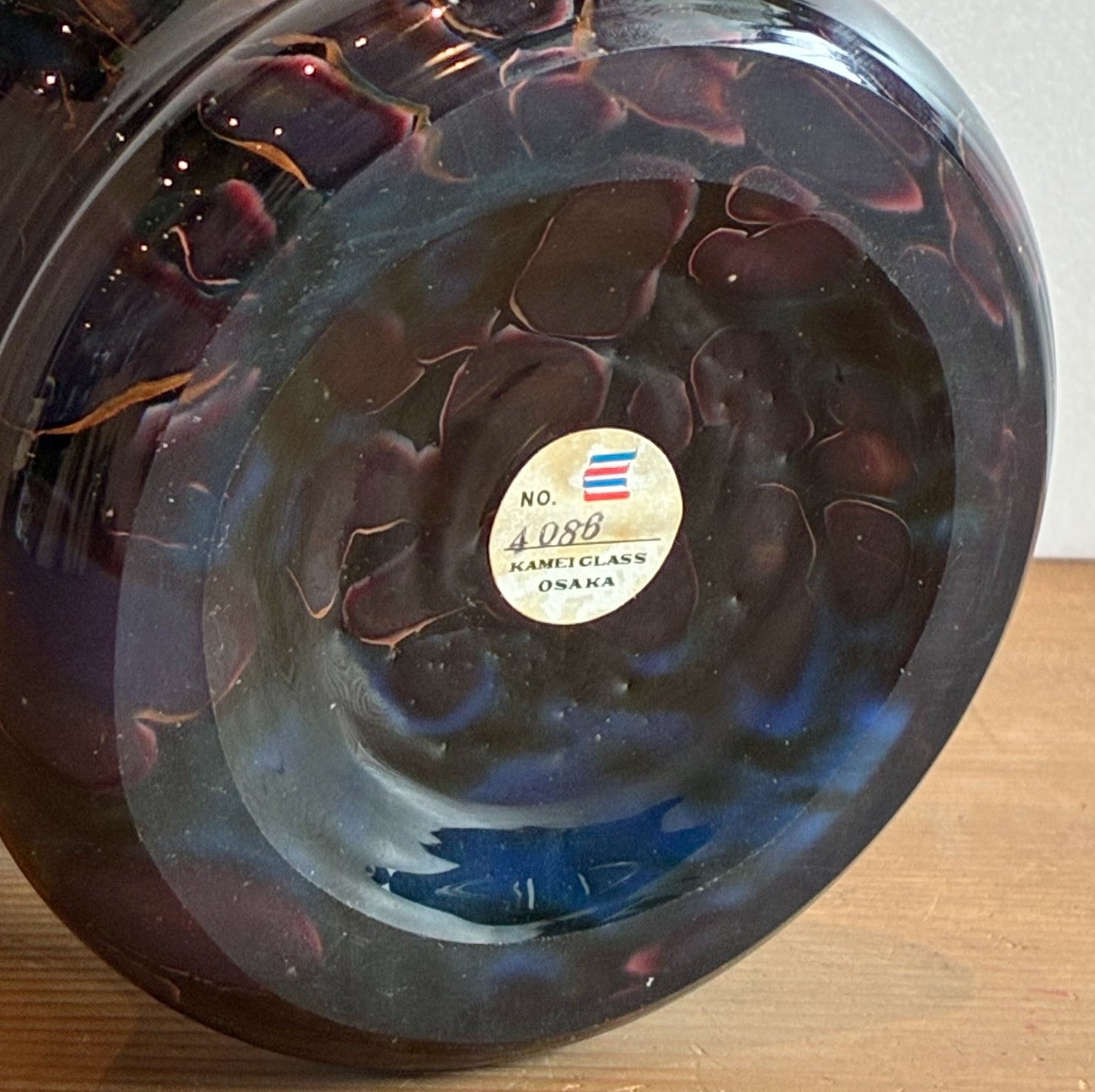 マーブルガラスが美しいカメイガラスのヴィンテージフラワーベース。