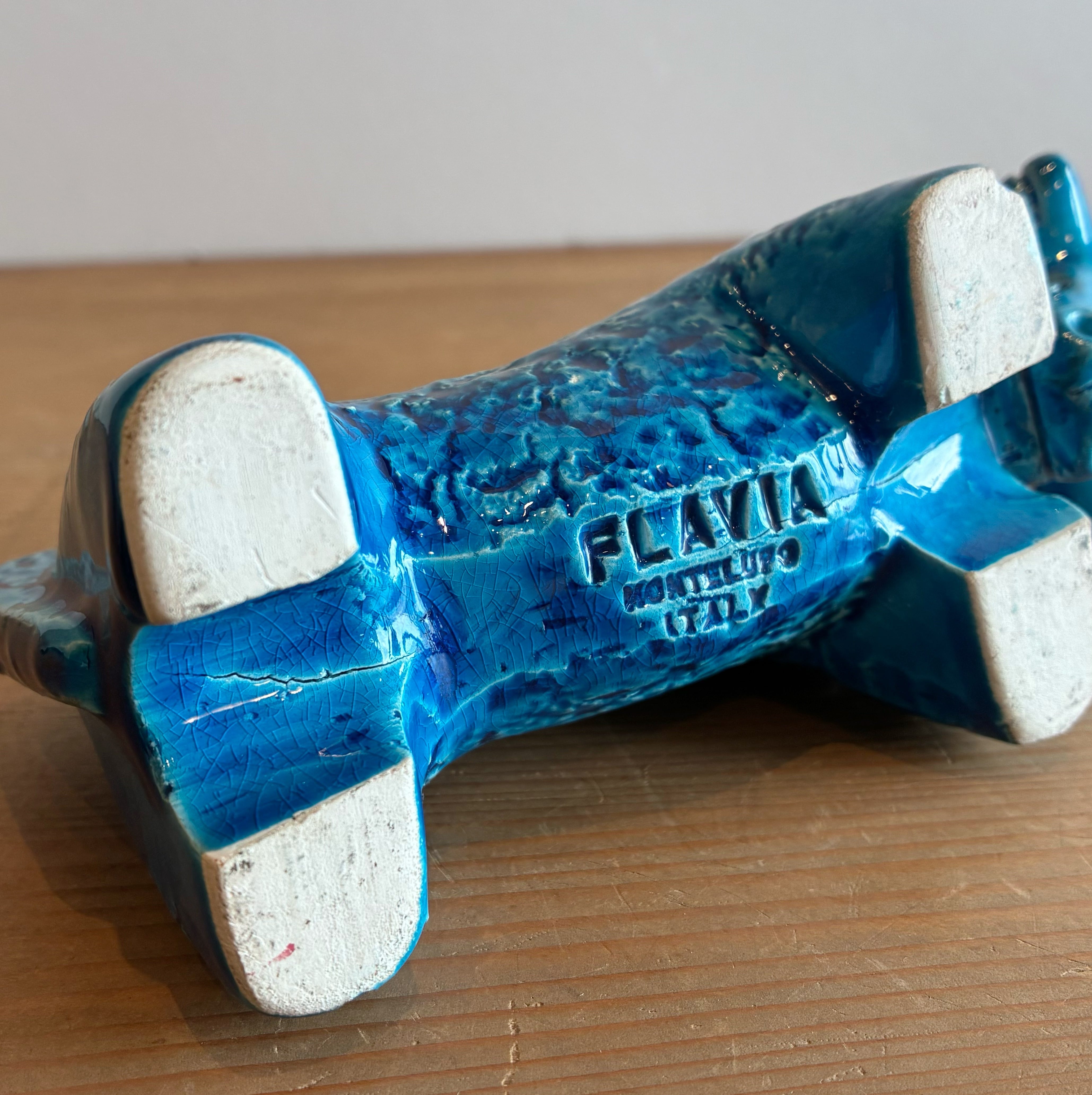 イタリア・トスカーナ地方の陶器工房、FLAVIA社のリミニブルーシリーズの牛のオブジェ。