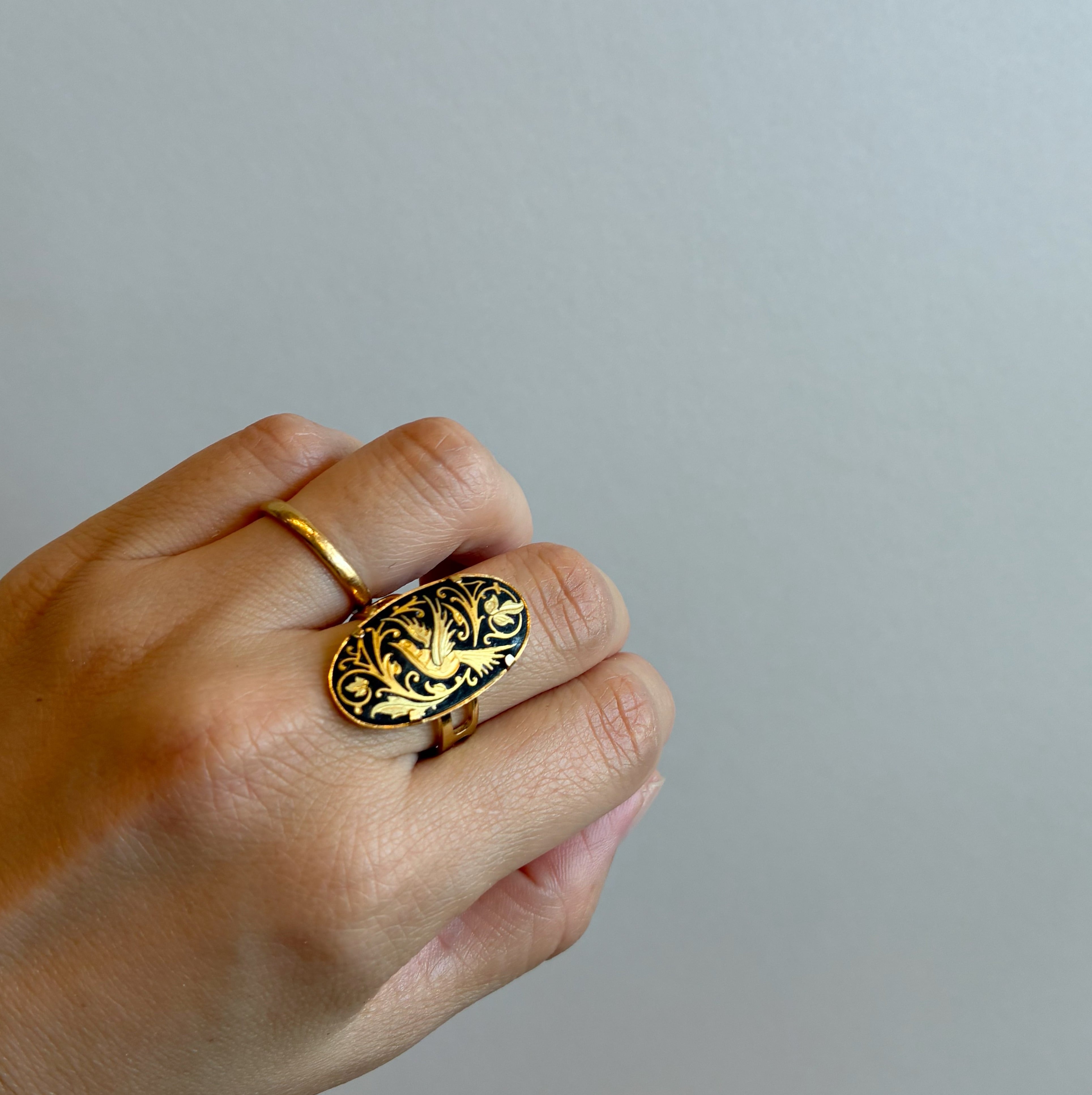 スペイン・トレド地方の伝統工芸の象嵌細工「ダマスキナード」のリング。