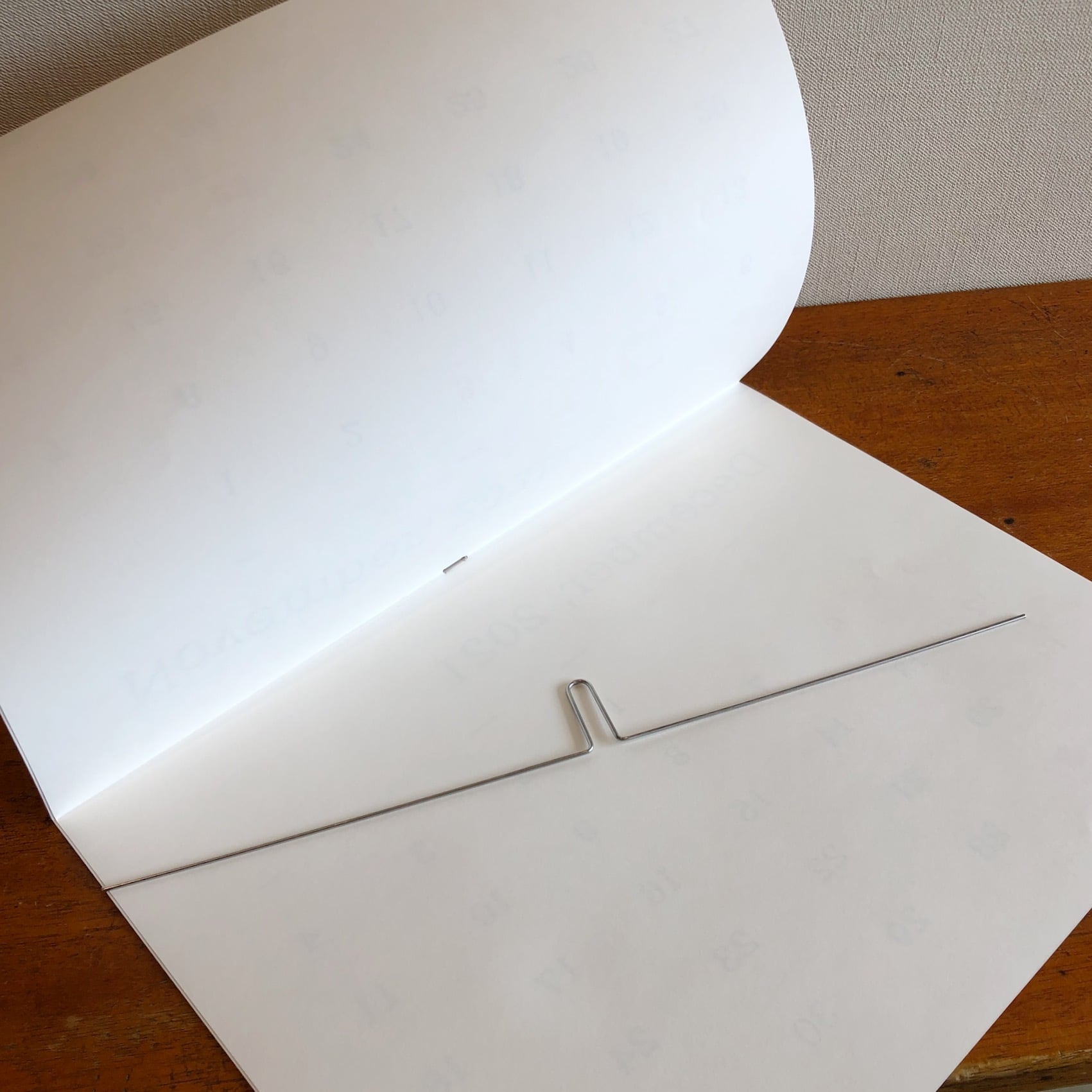 2つ折りになった6枚の紙を重ね、付属の「Kハンガー」でまとめてあり、