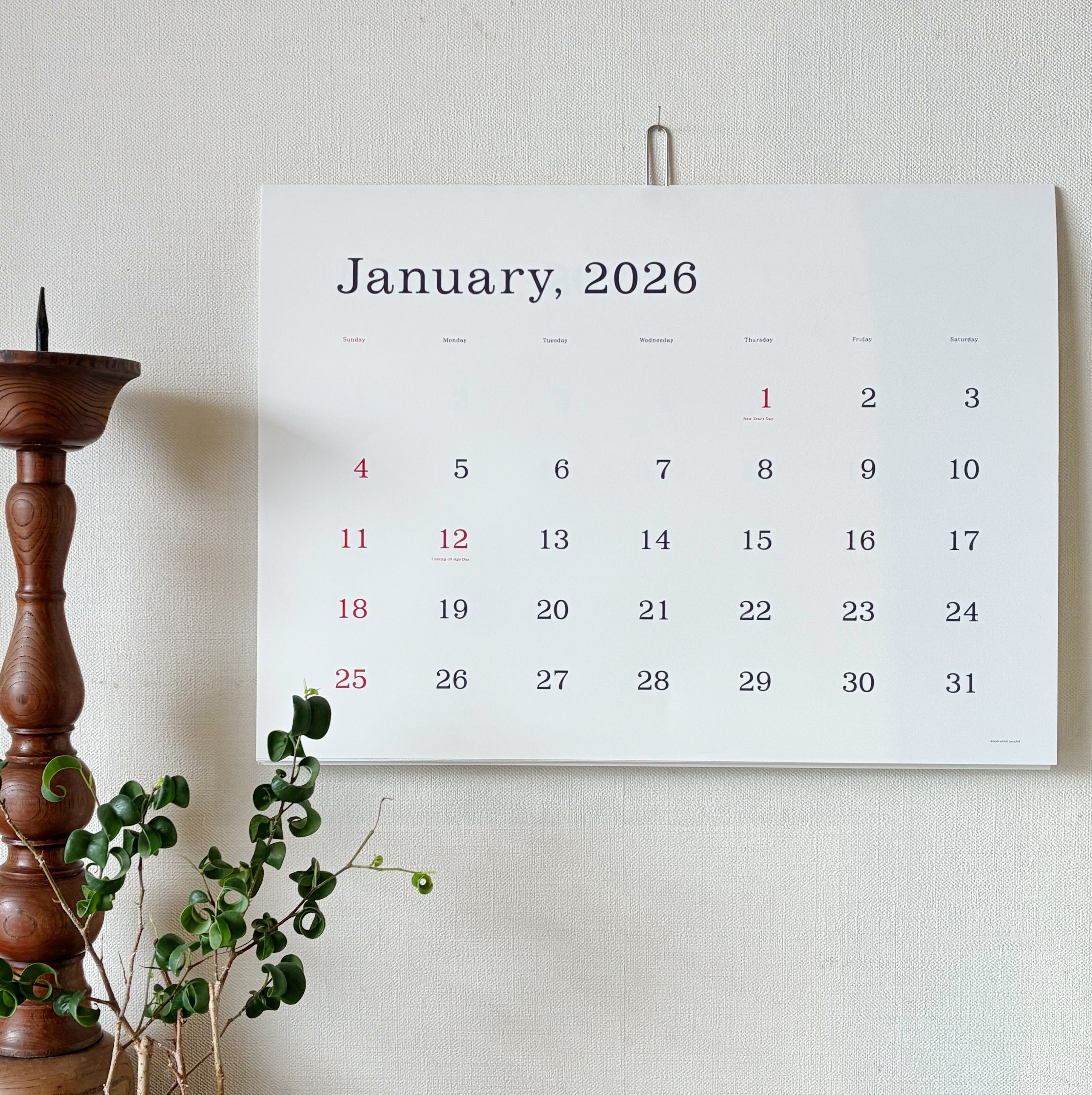 翌月のカレンダーの表記もなく、無駄のないシンプルなデザインです。
