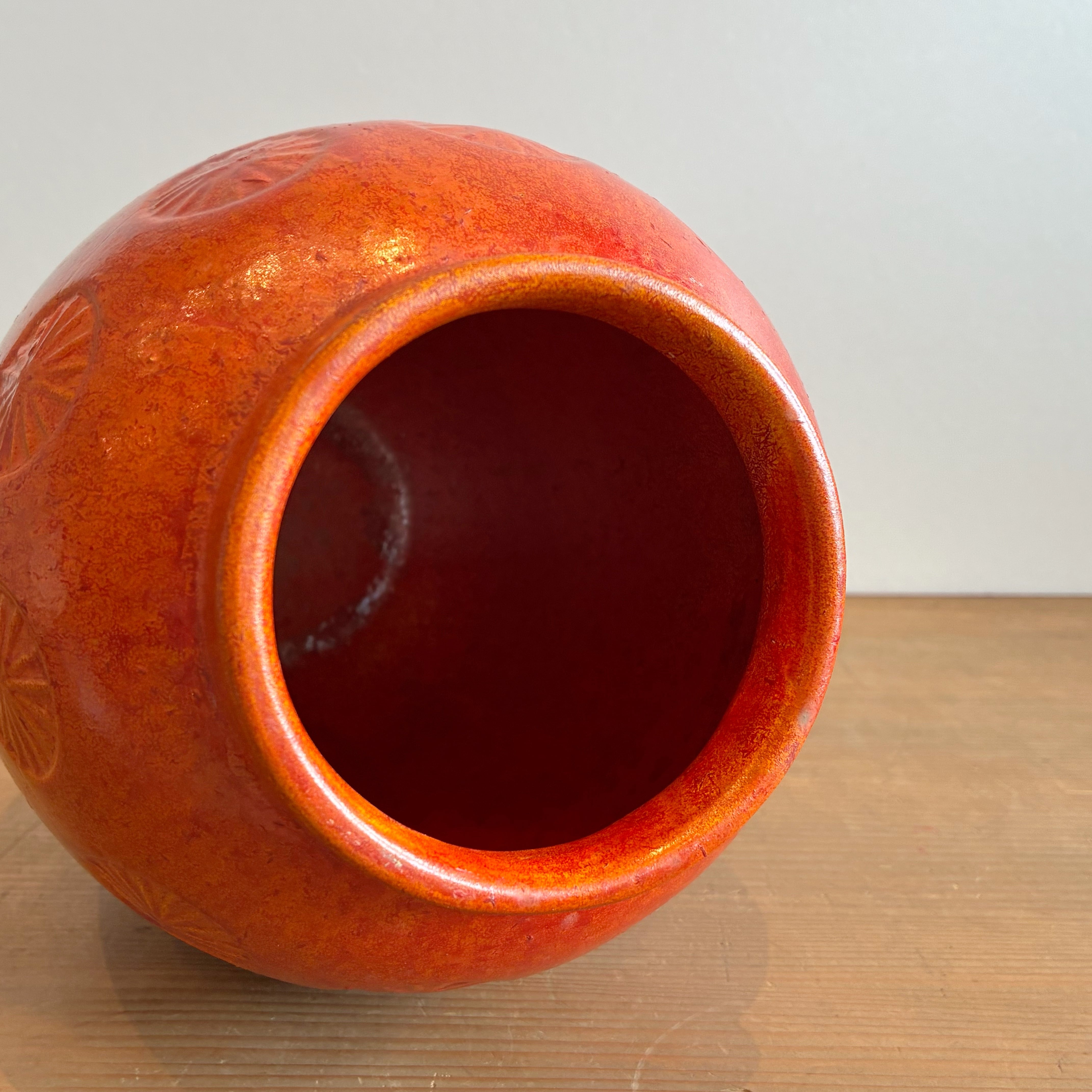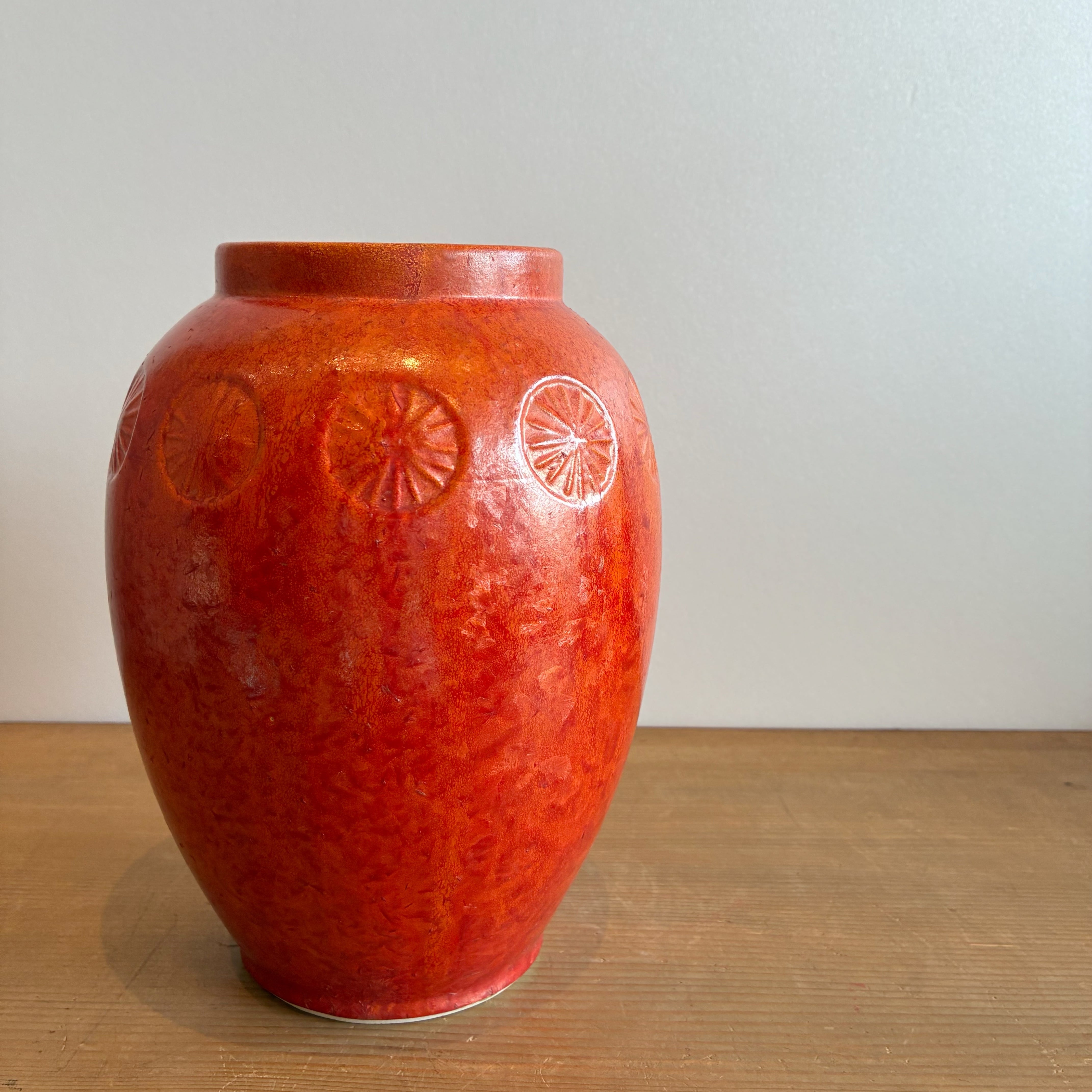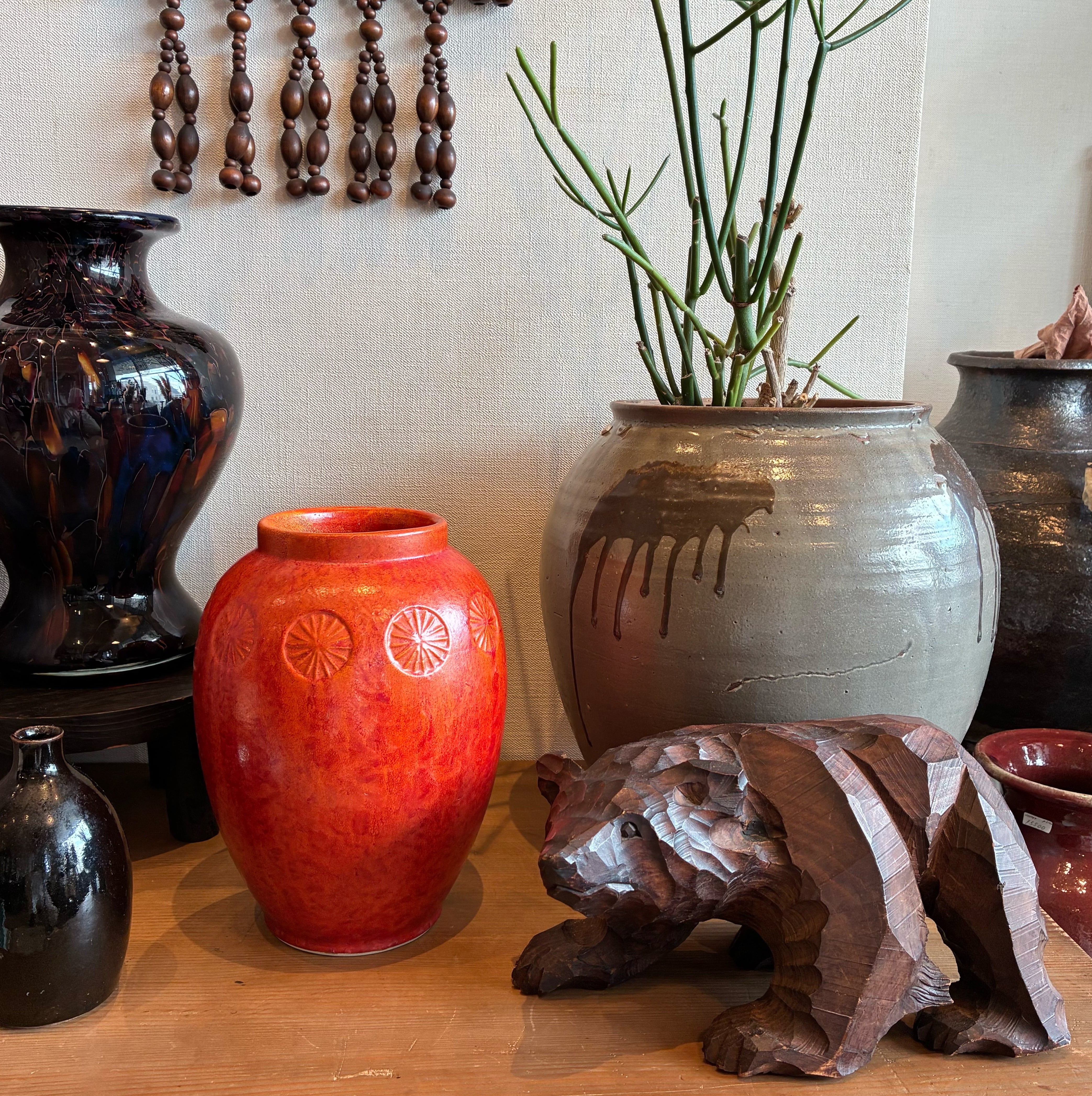 鮮やかな朱色が目を引くヴィンテージフラワーベース。