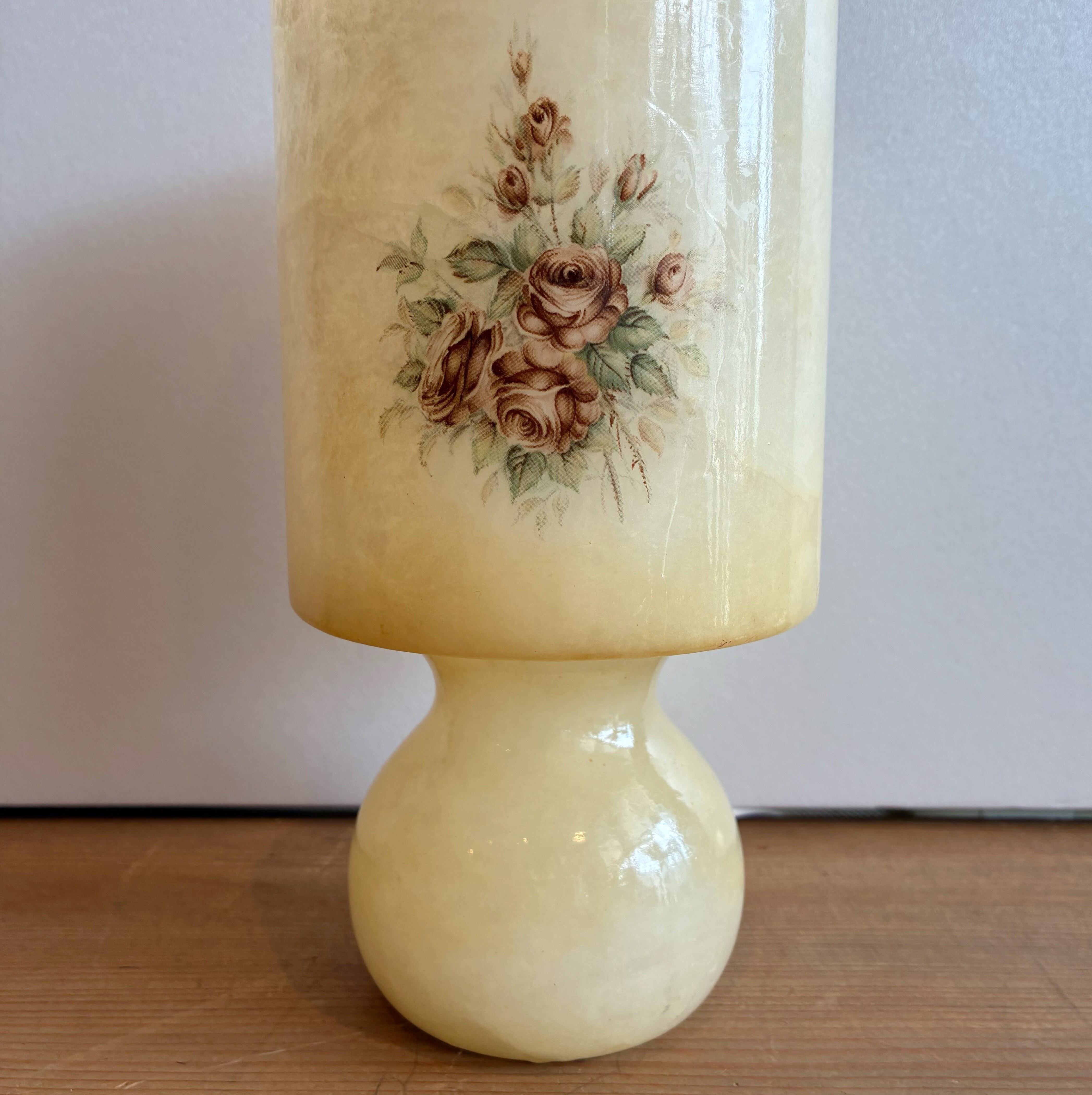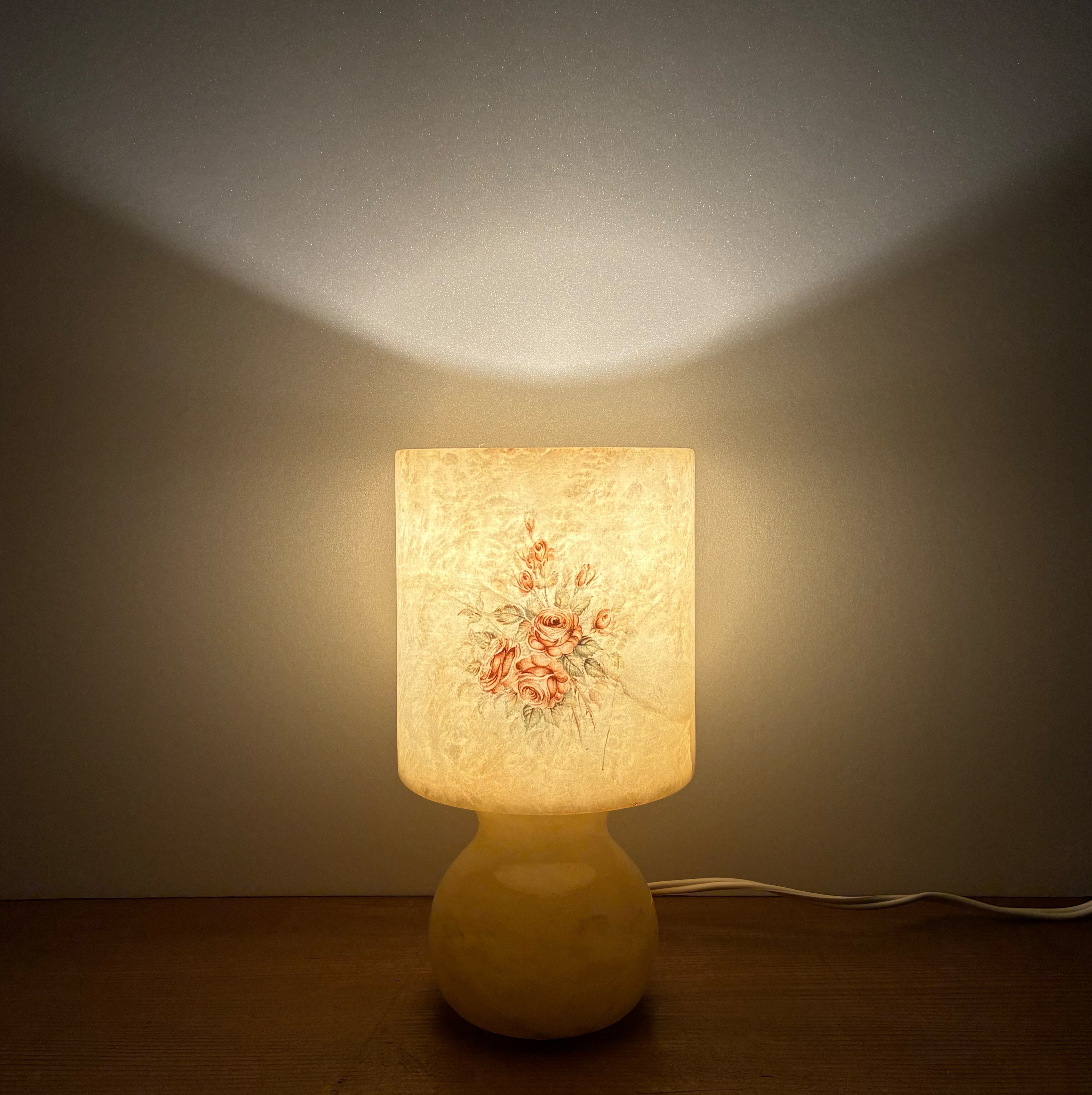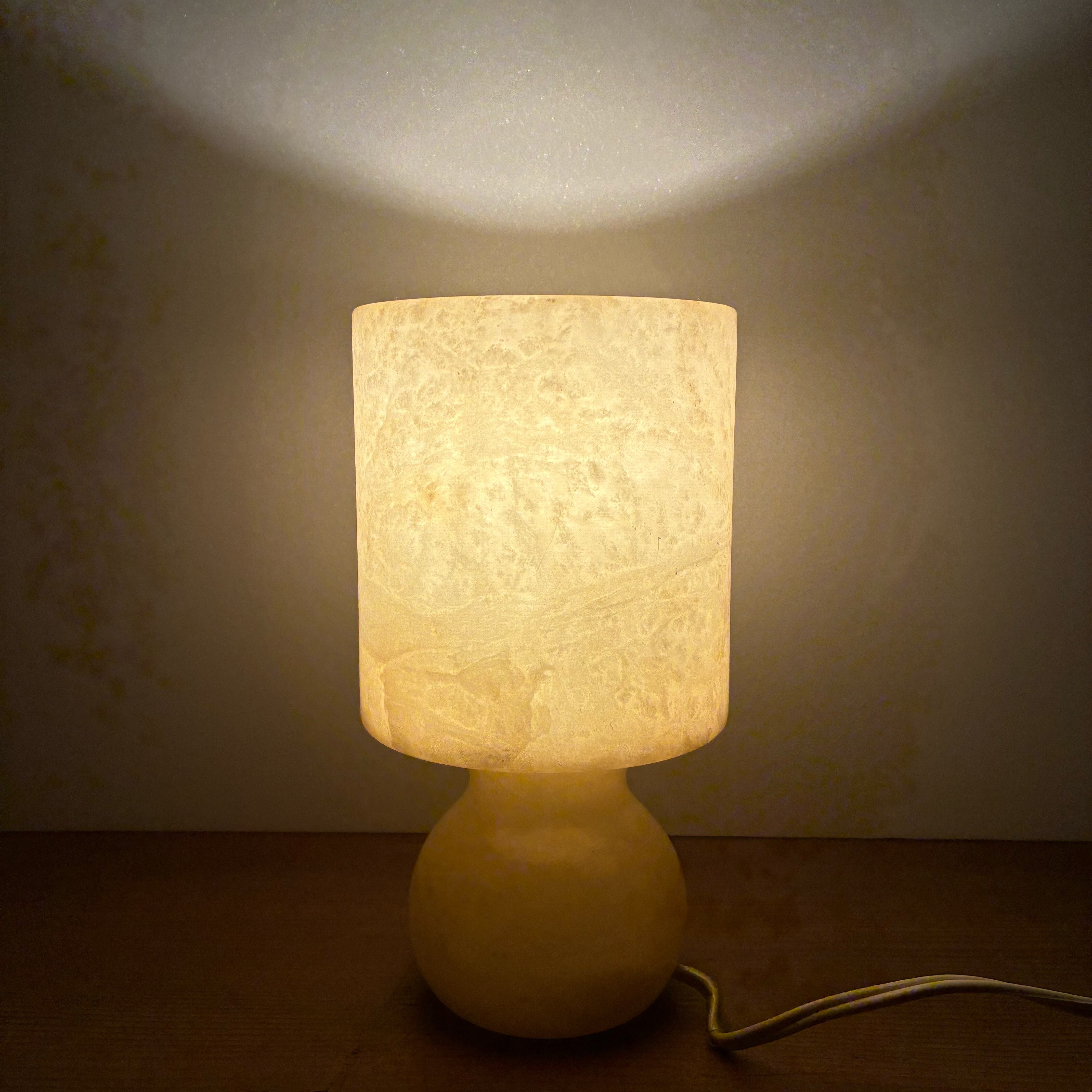 アラバスター特有の石目模様を通したやわらかな灯りが幻想的です。