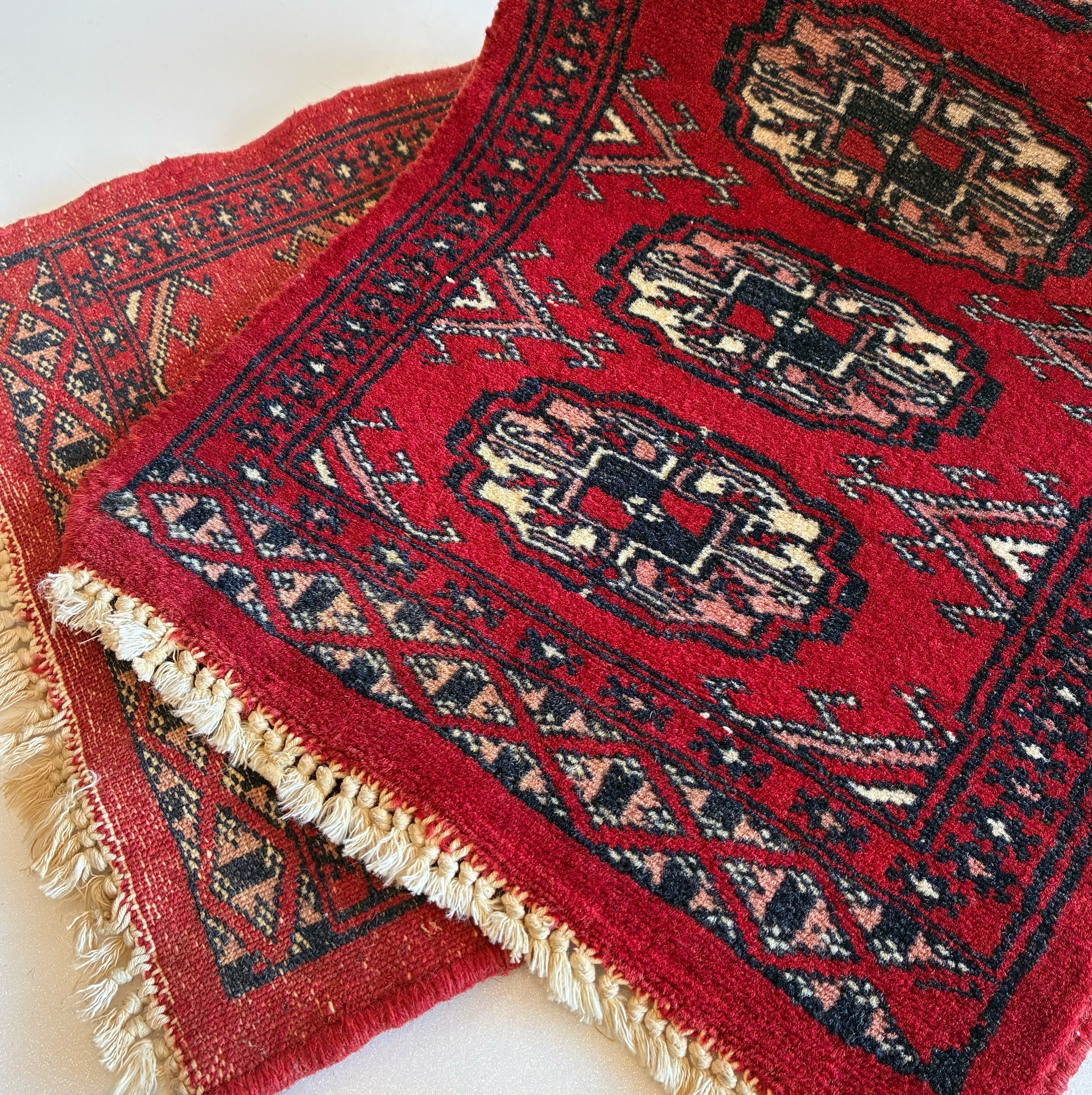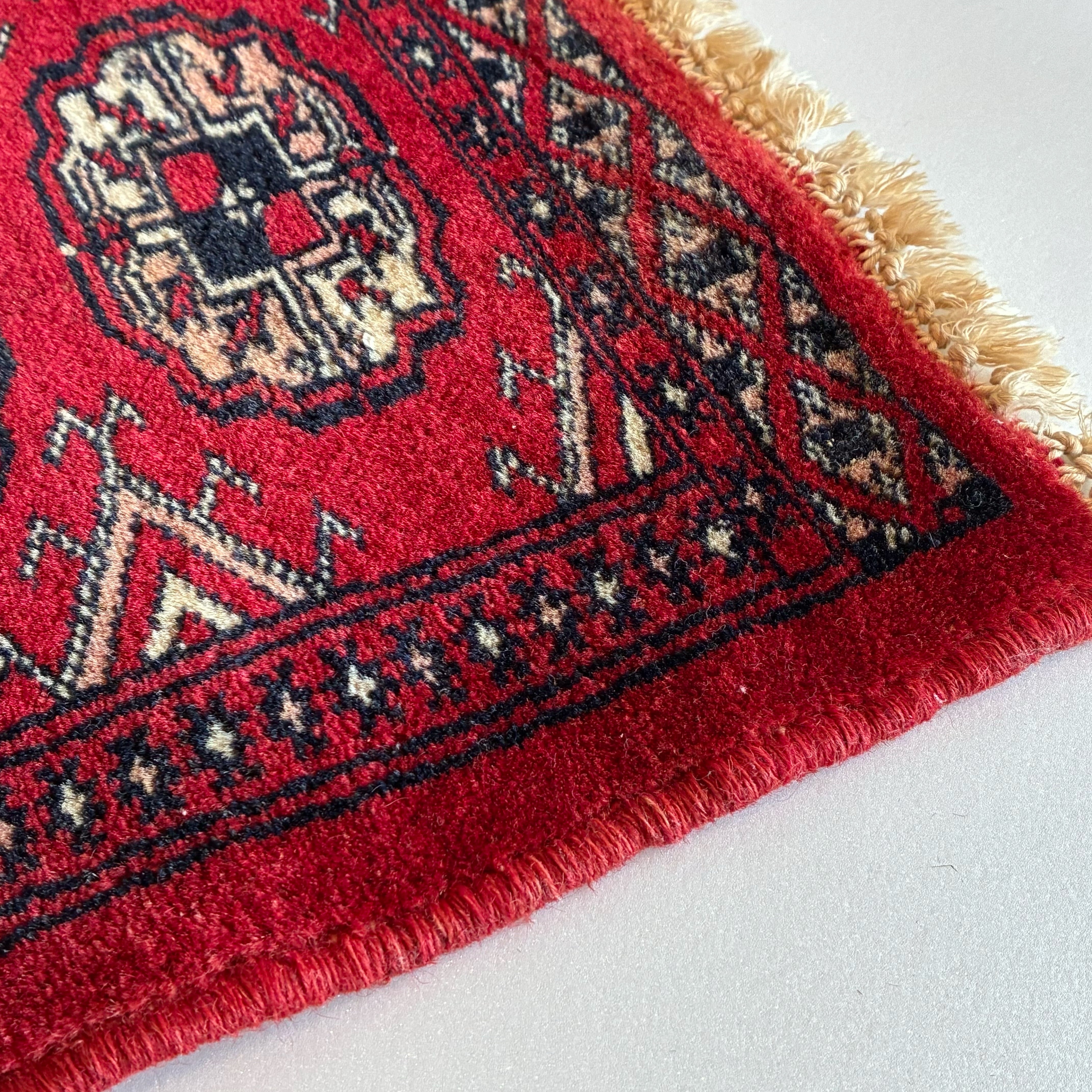 鮮やかな赤とギュル紋様がトライバルラグらしい素敵な一枚です。