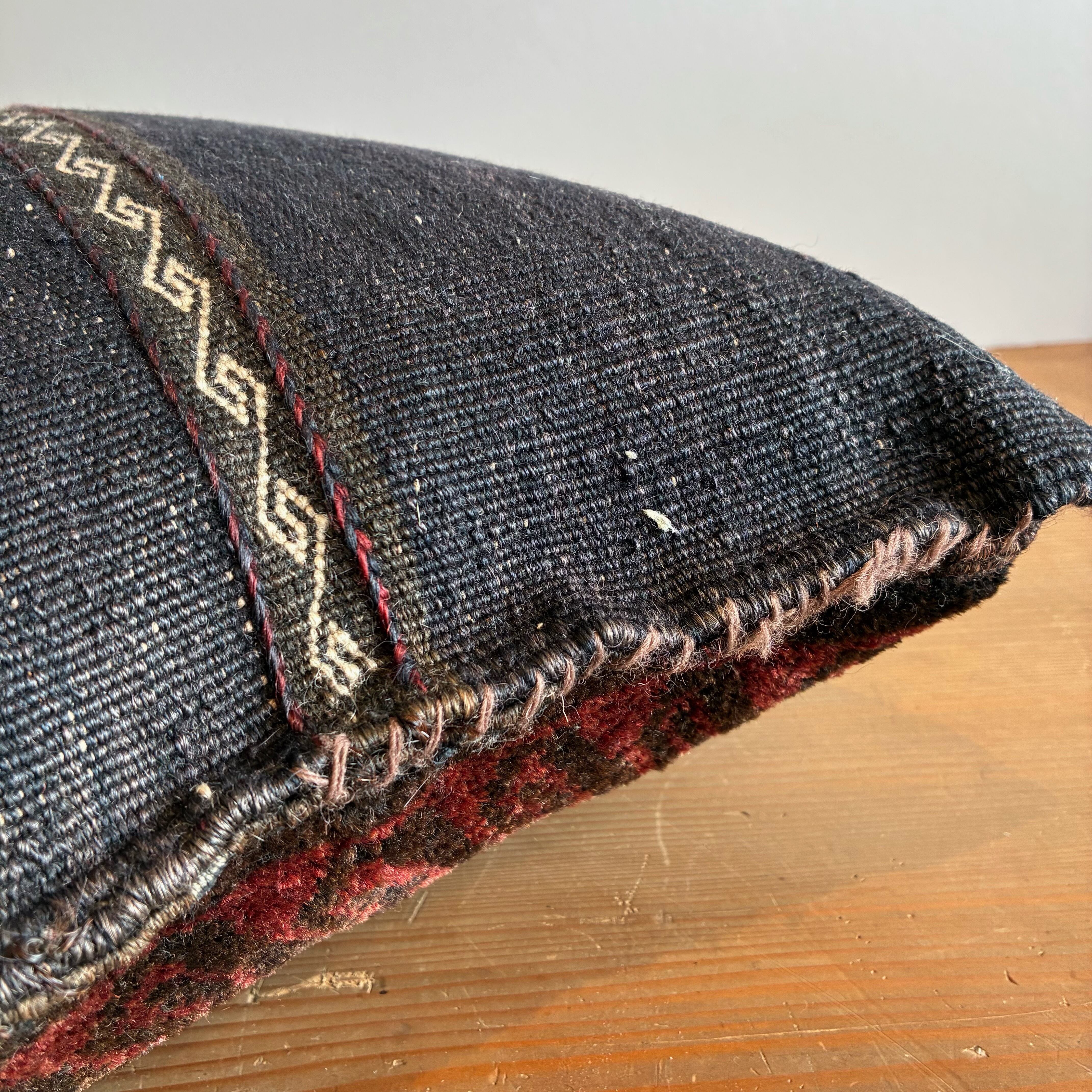 ※こちらのクッションカバーは古いトライバルラグやキリムを使用して作られたお品です。多少の毛羽立ちやシミ、補修箇所などがある場合がございます。ご理解の上、お買い求めください。