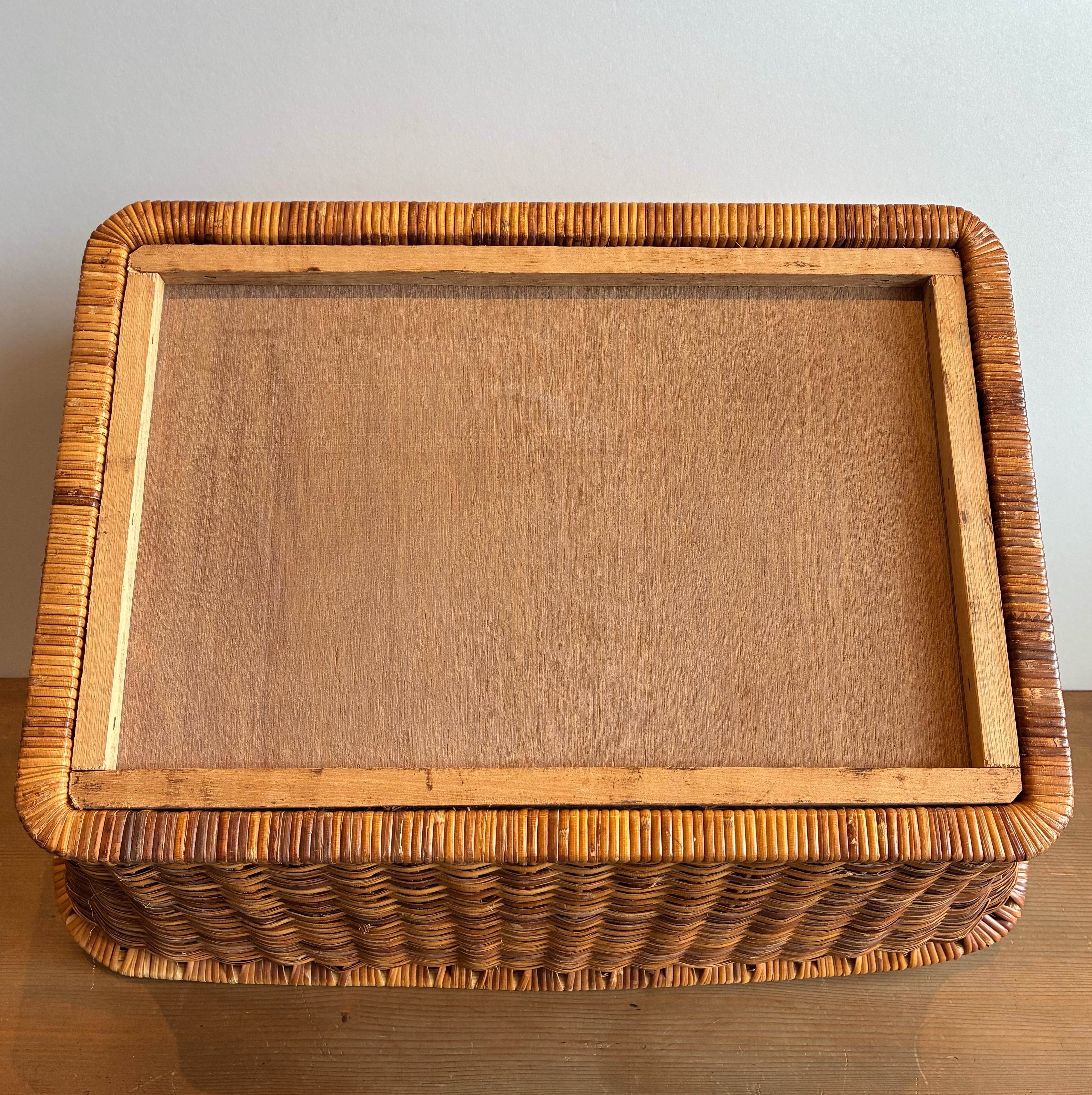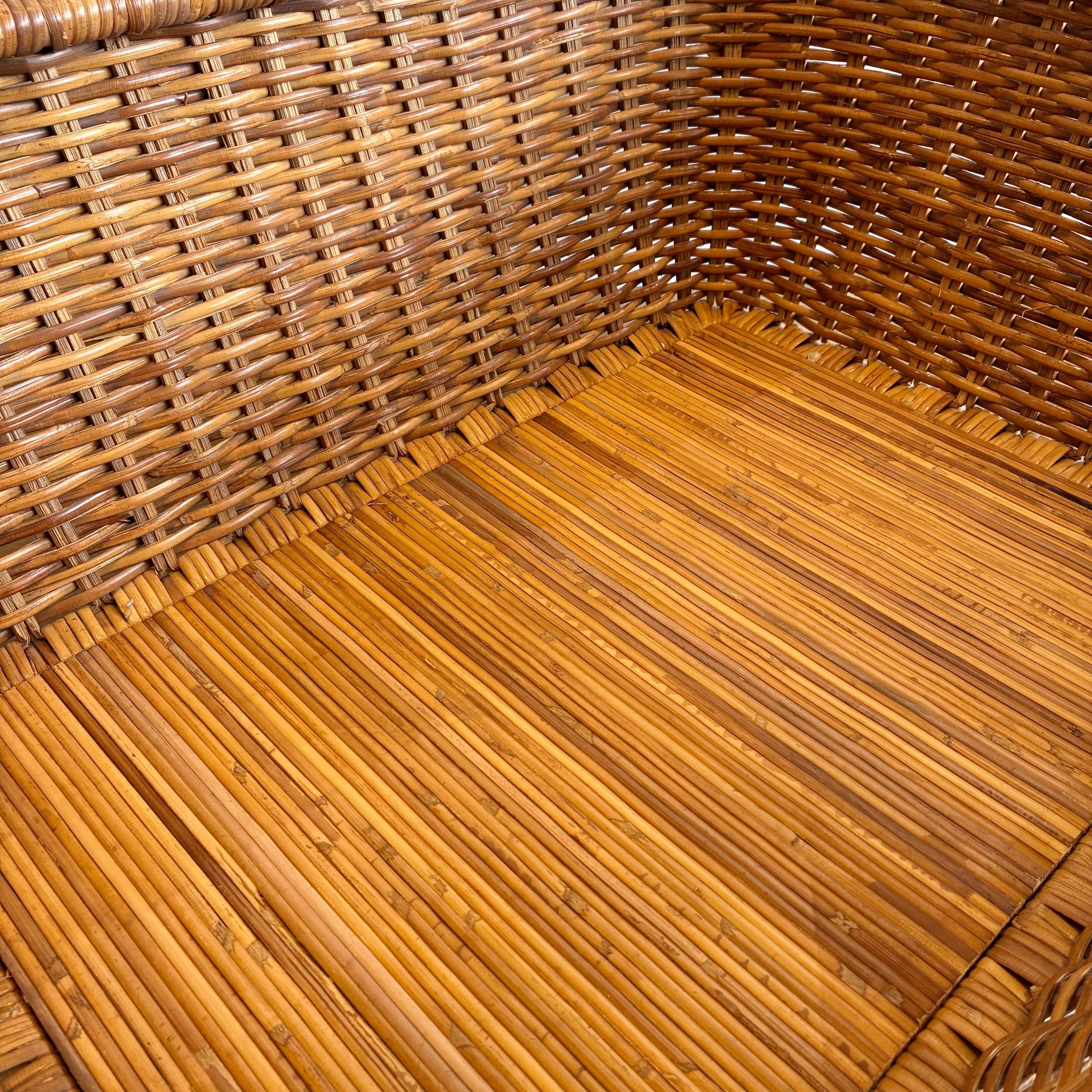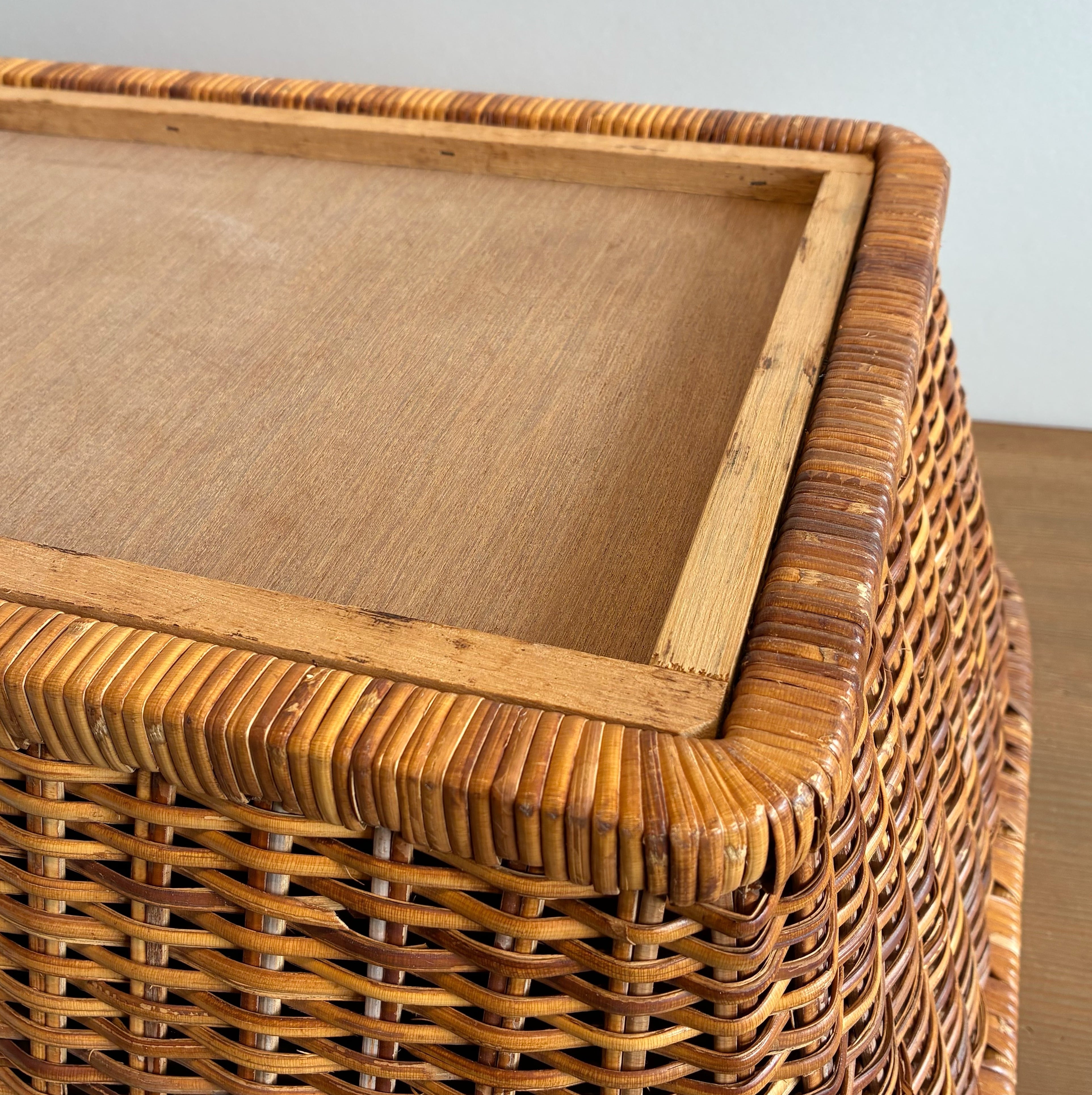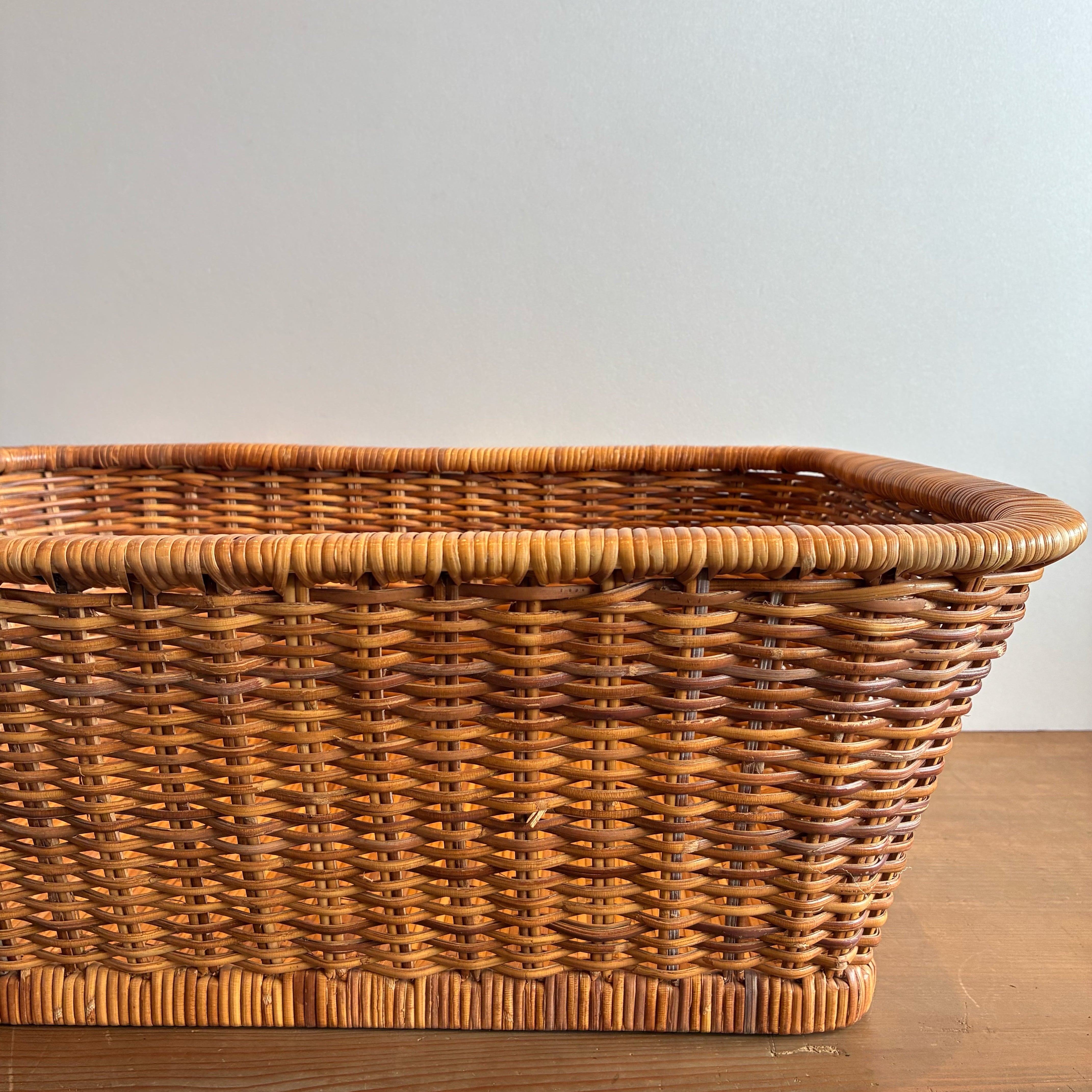 美しい飴色に変化した日本の古いラタン脱衣かご。