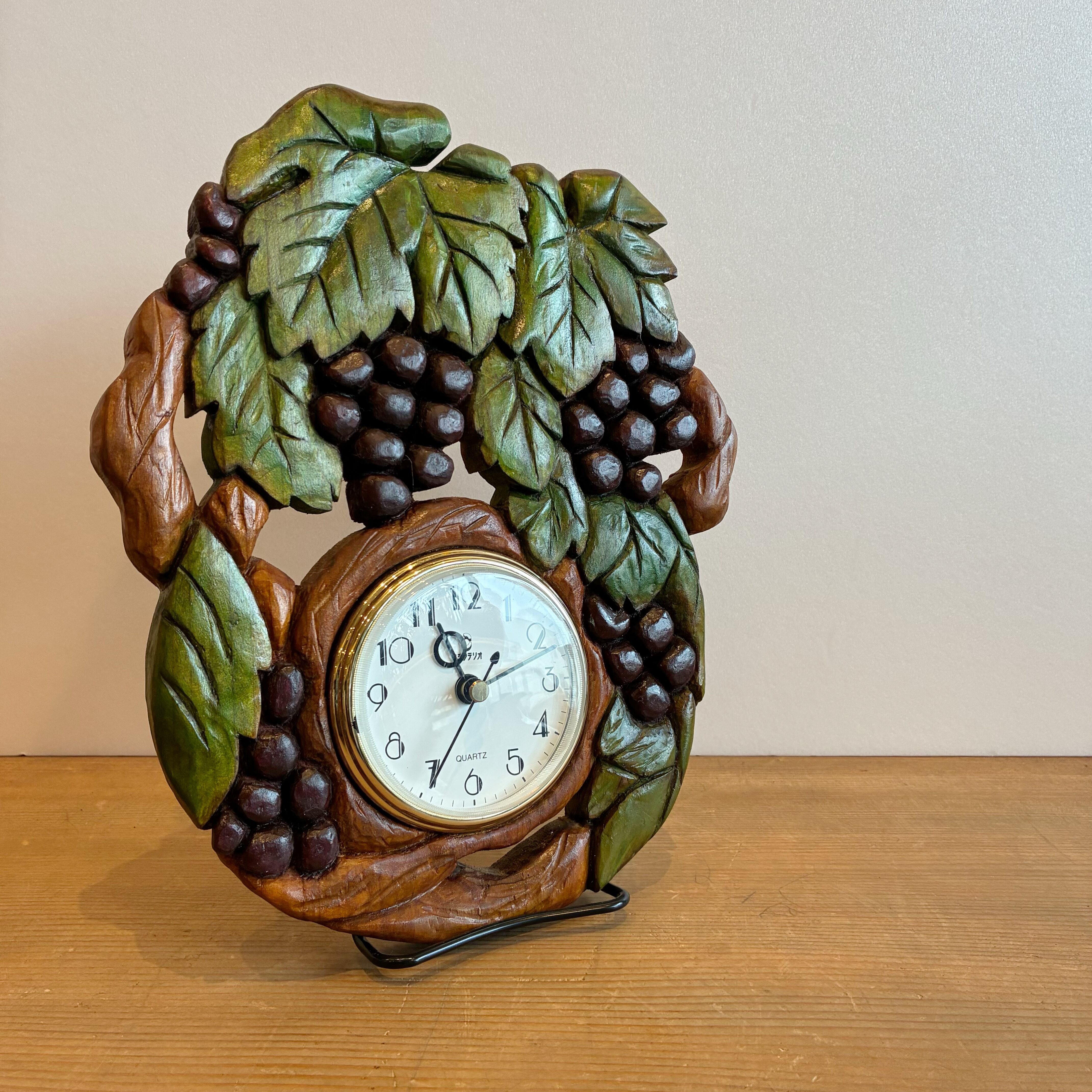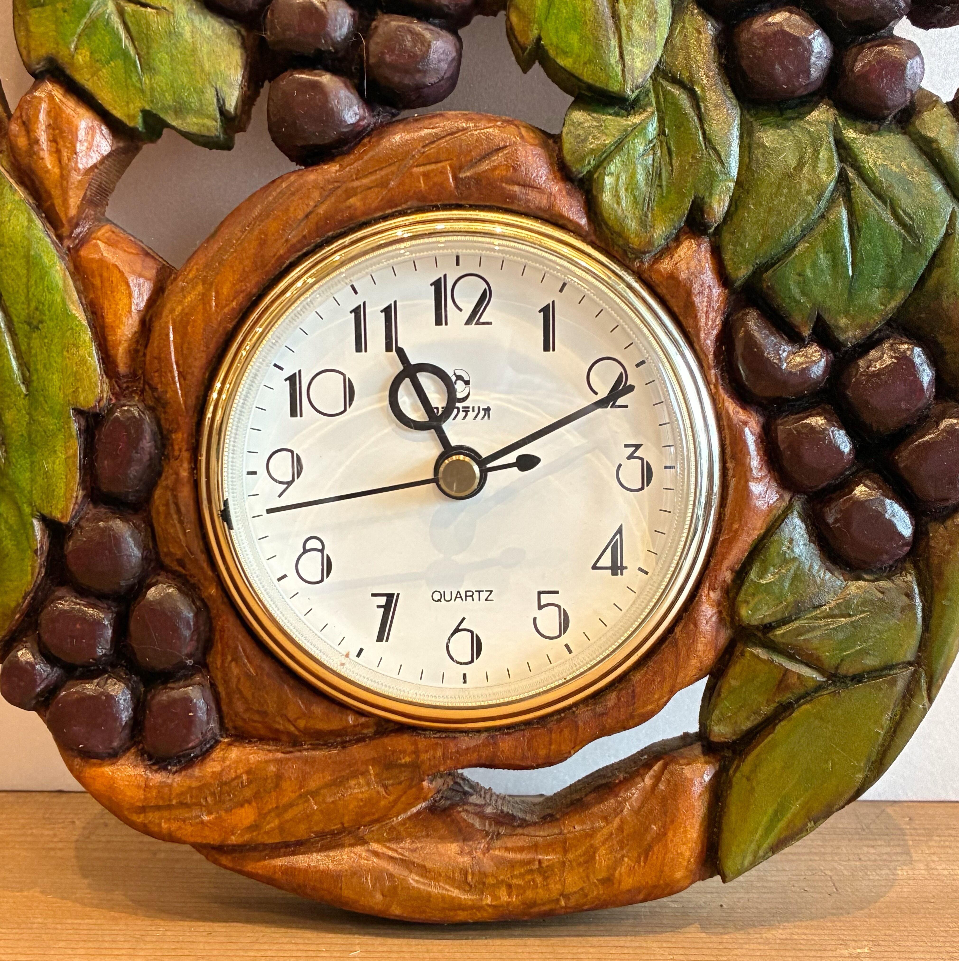 葉と実の色使いも美しく、時計としての実用性だけでなく、壁飾りとしても素敵な作品です。