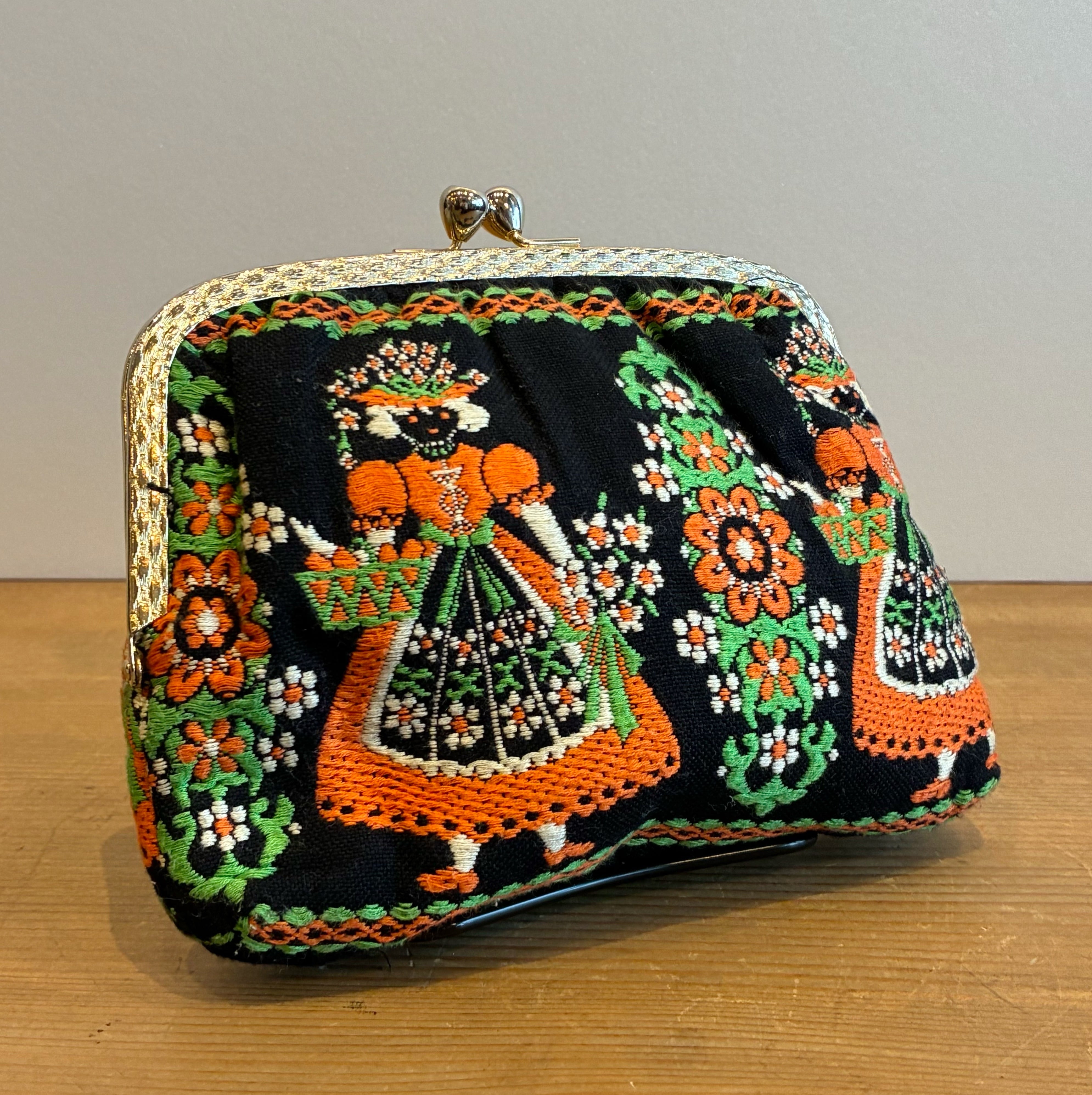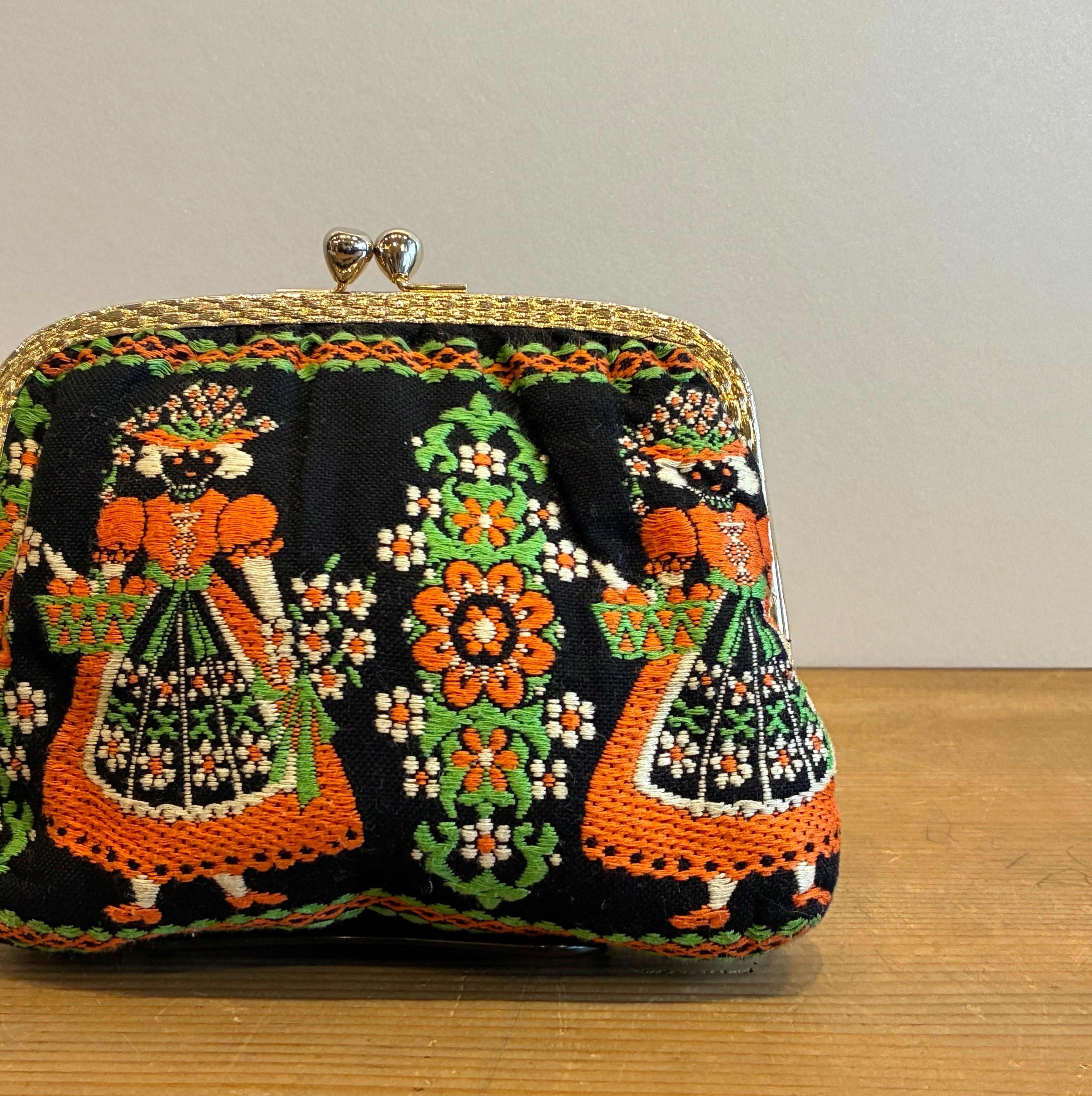 久家道子「プチポアン」ポーチ。女の子の刺繍がレトロで可愛いですね。