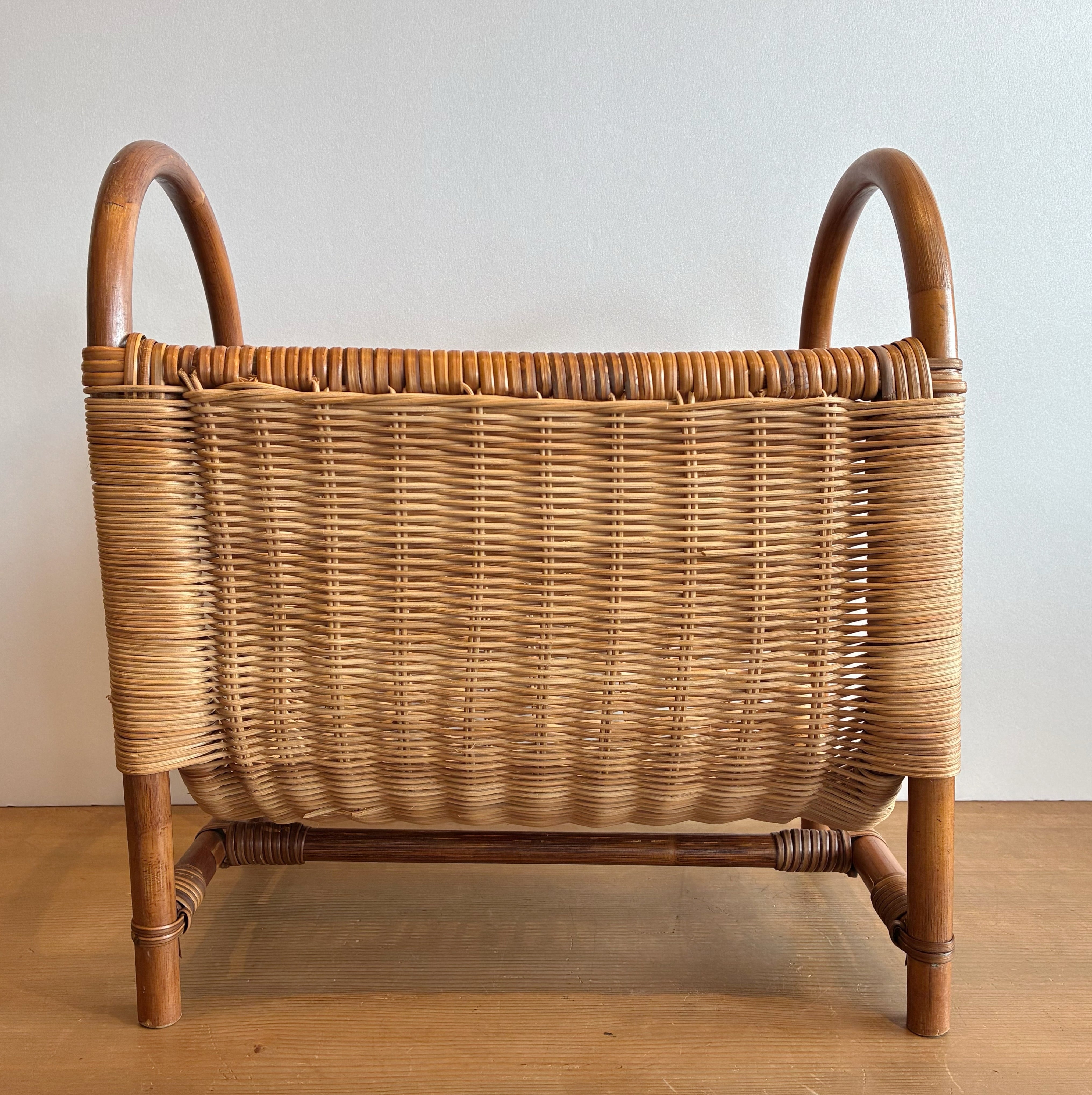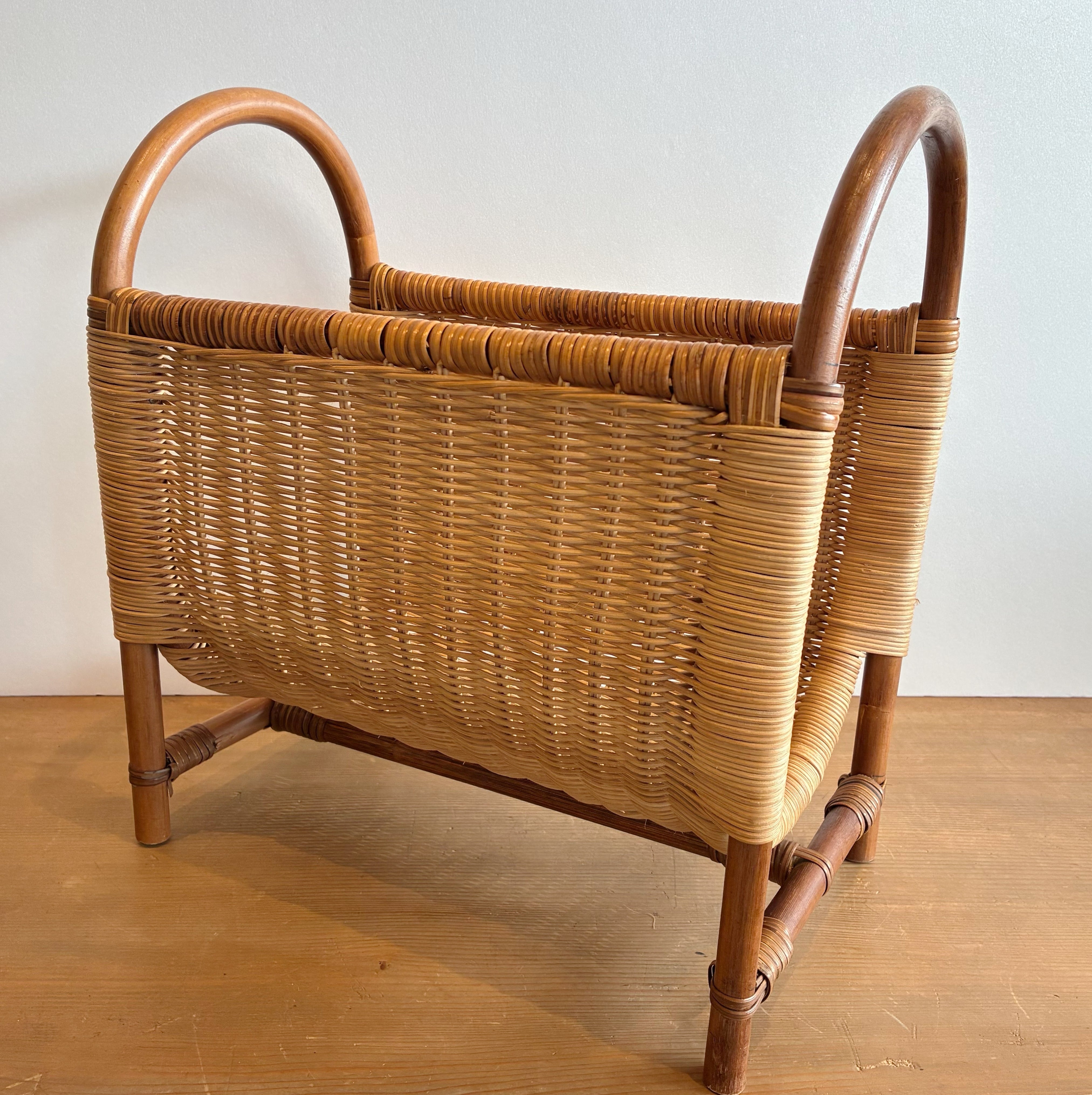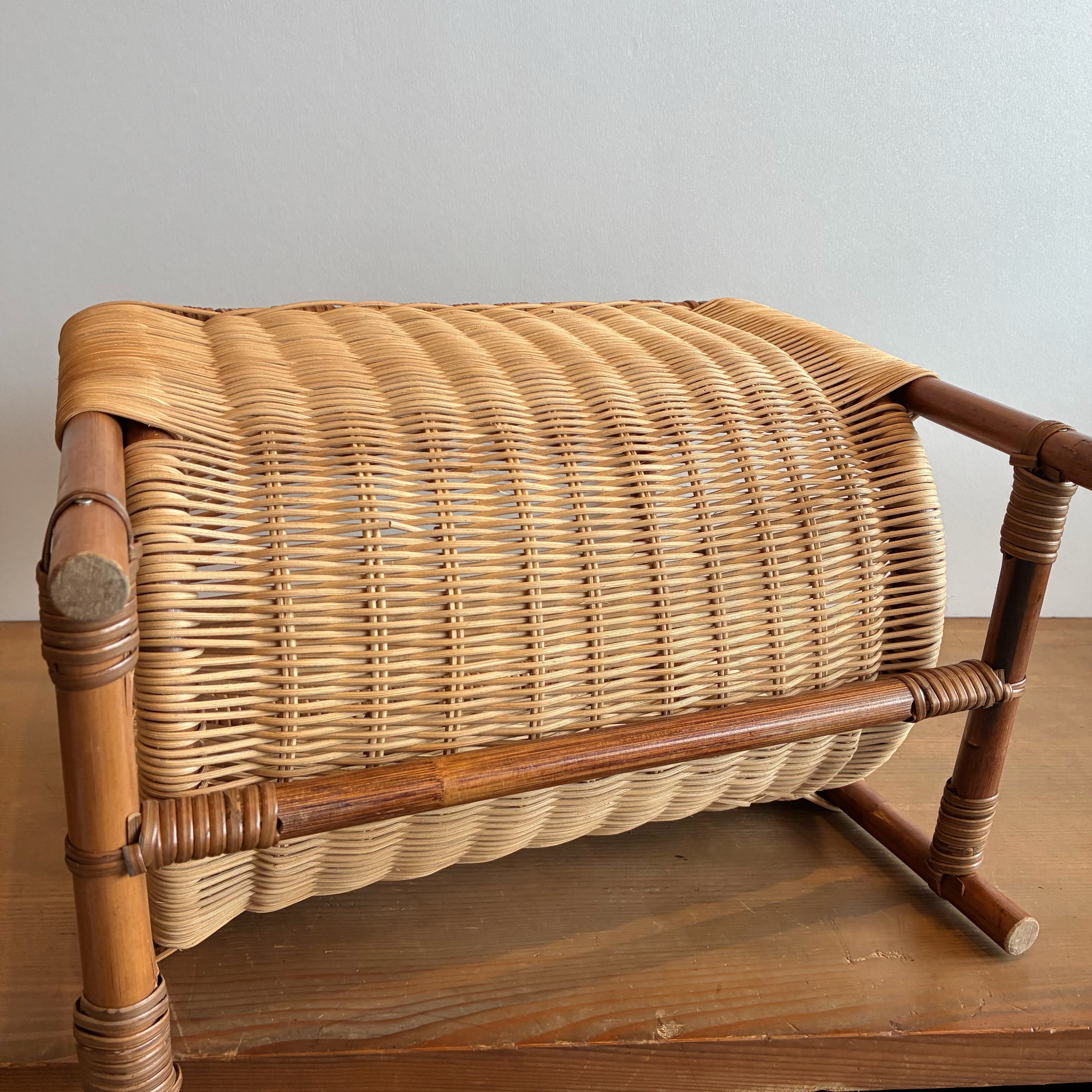 ナチュラルな風合いが、どんなお部屋にも馴染んでくれる古いラタンマガジンラック。