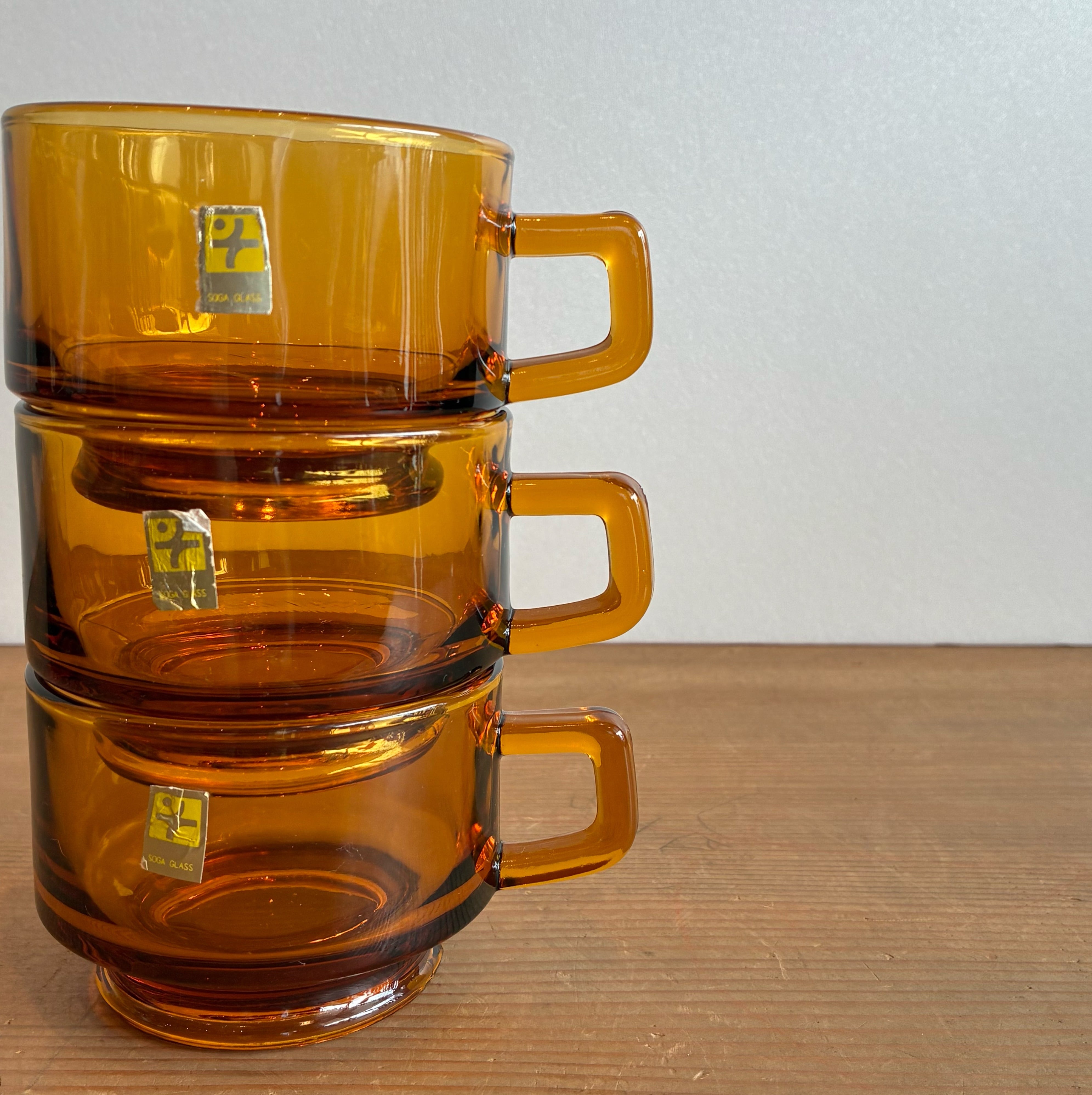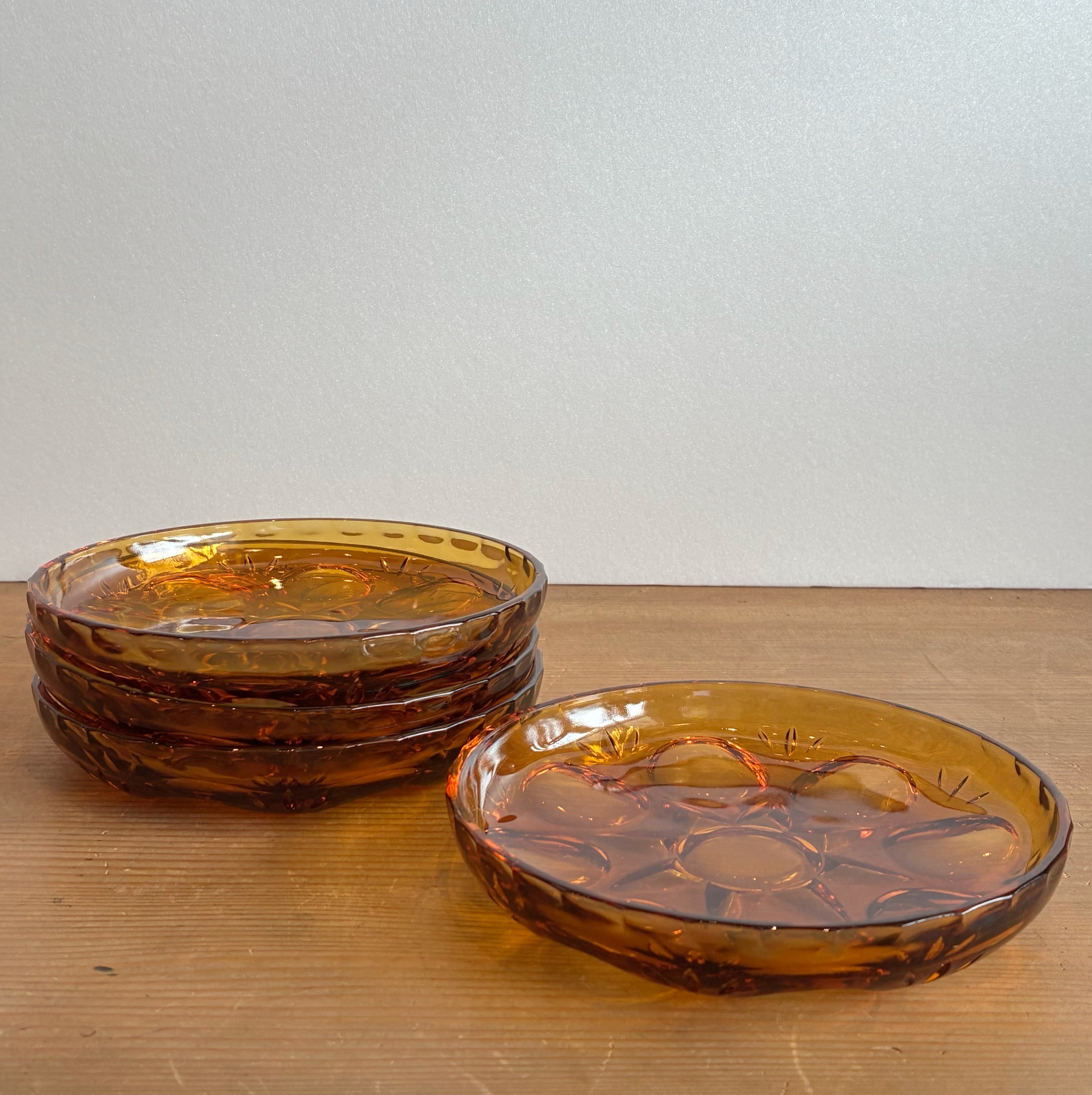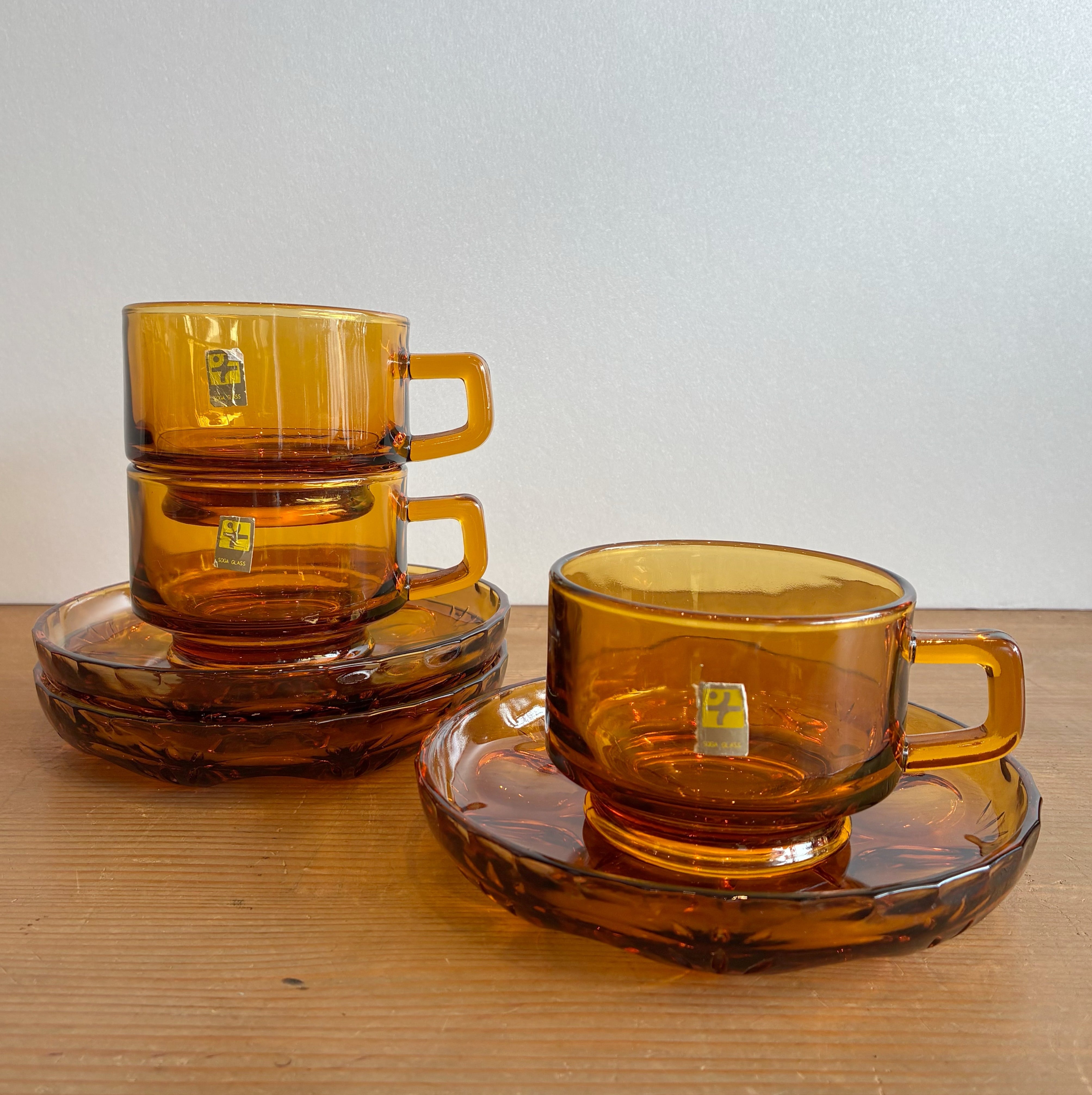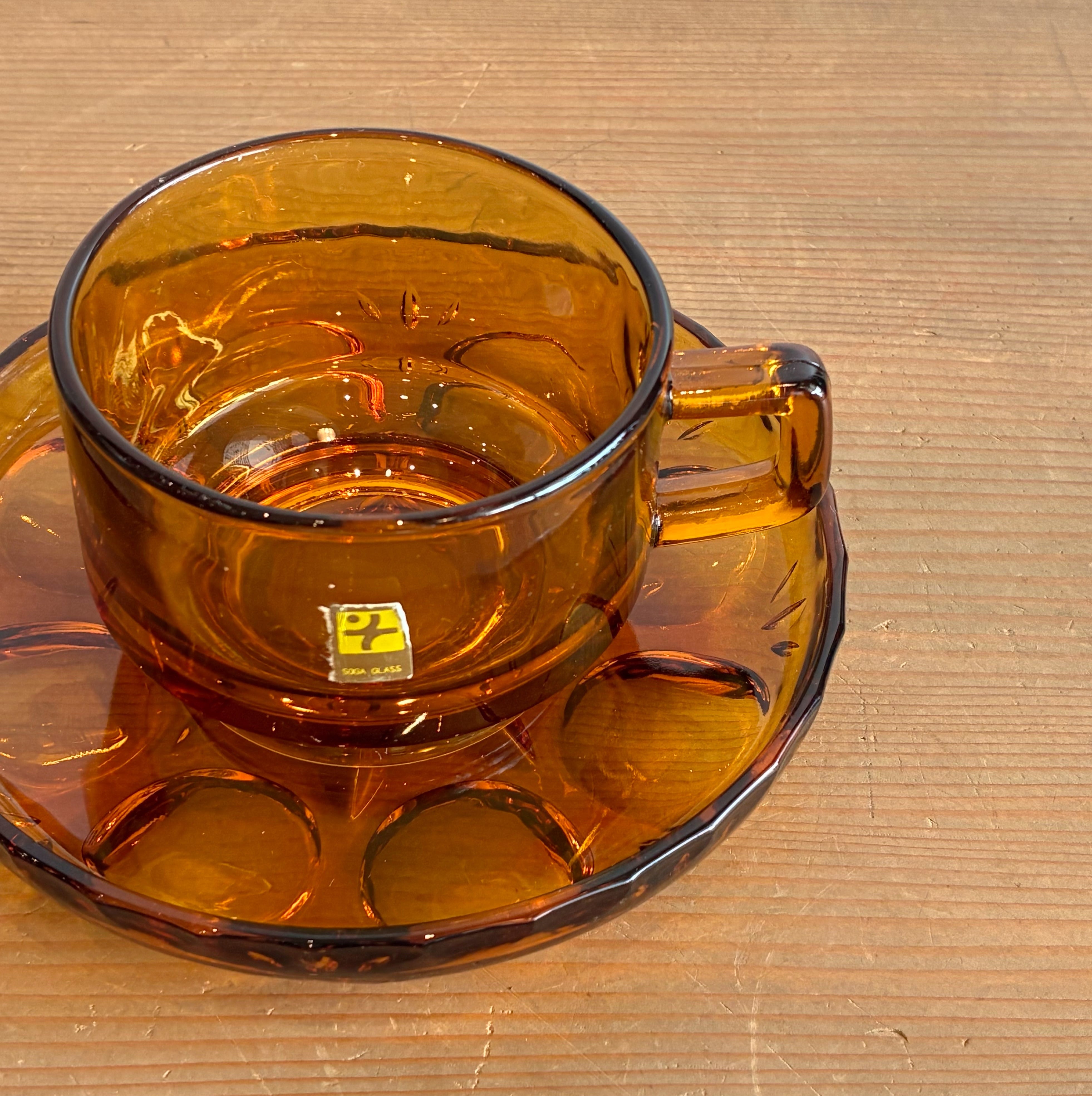 ガラス食器といえば透明色が一般的だった70年代に、ビール瓶の着色技術から新たに生まれたのがアンバー(琥珀)色のガラス食器です。