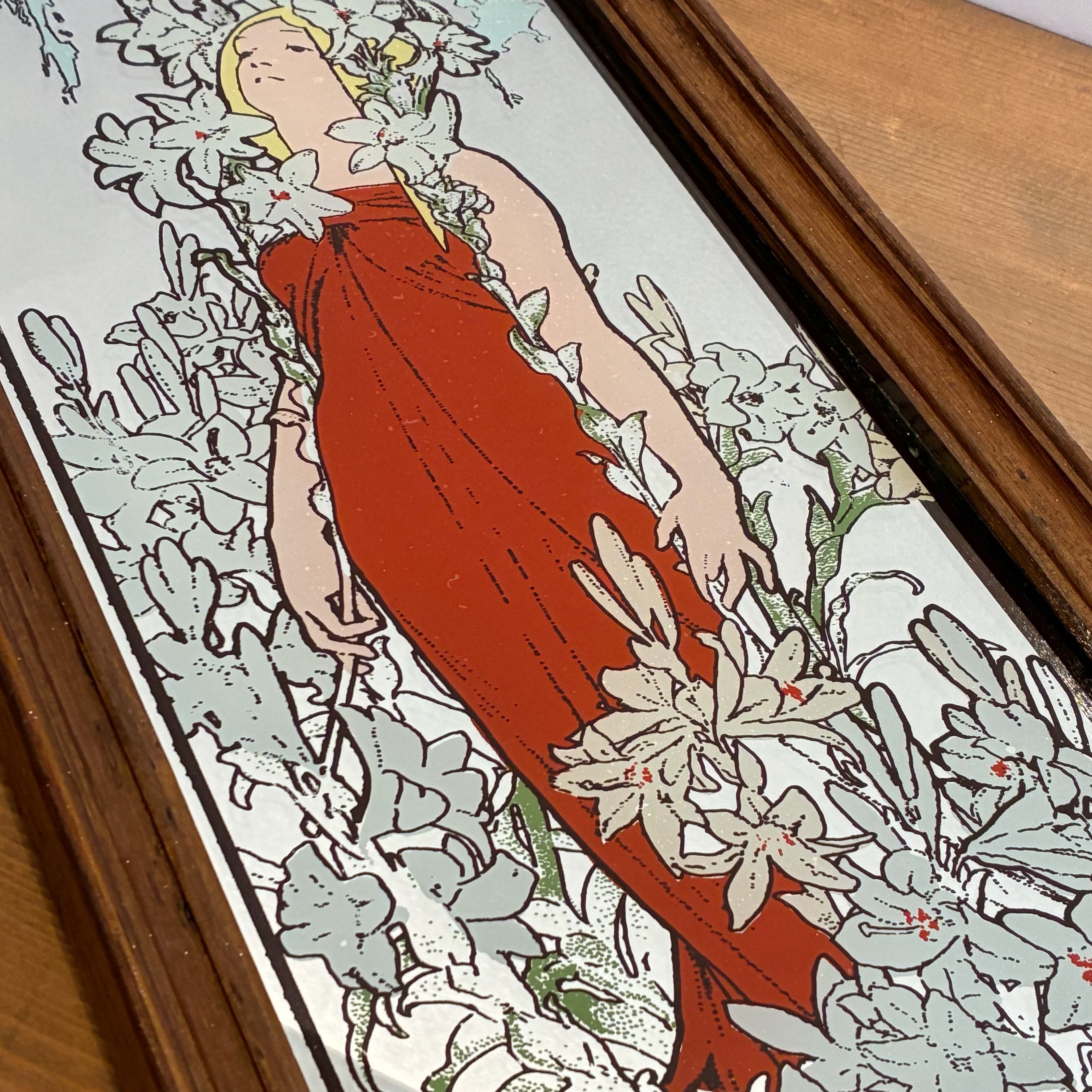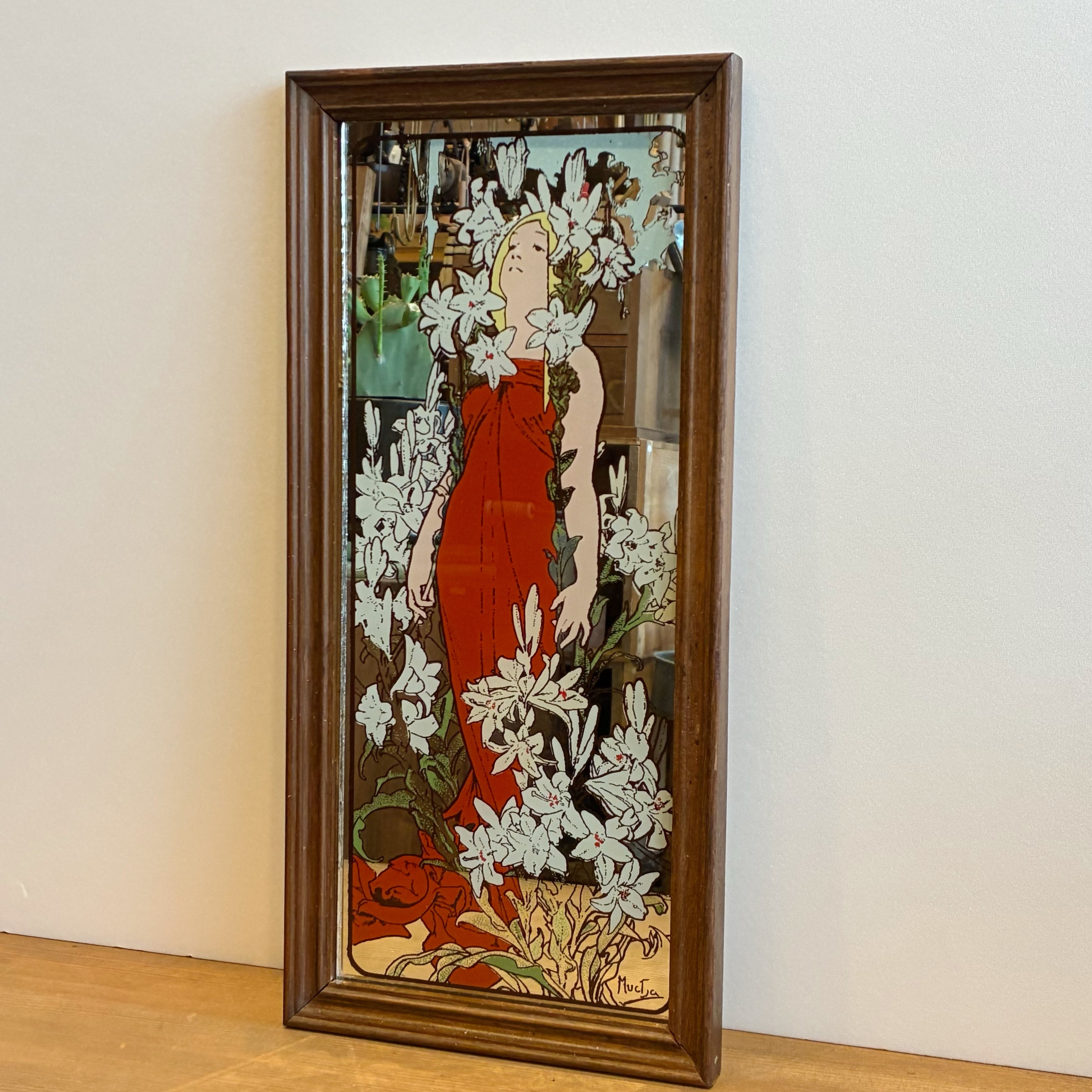 アルフォンス・ミュシャの「四つの花-ユリ」がモチーフになったデザインミラーです。