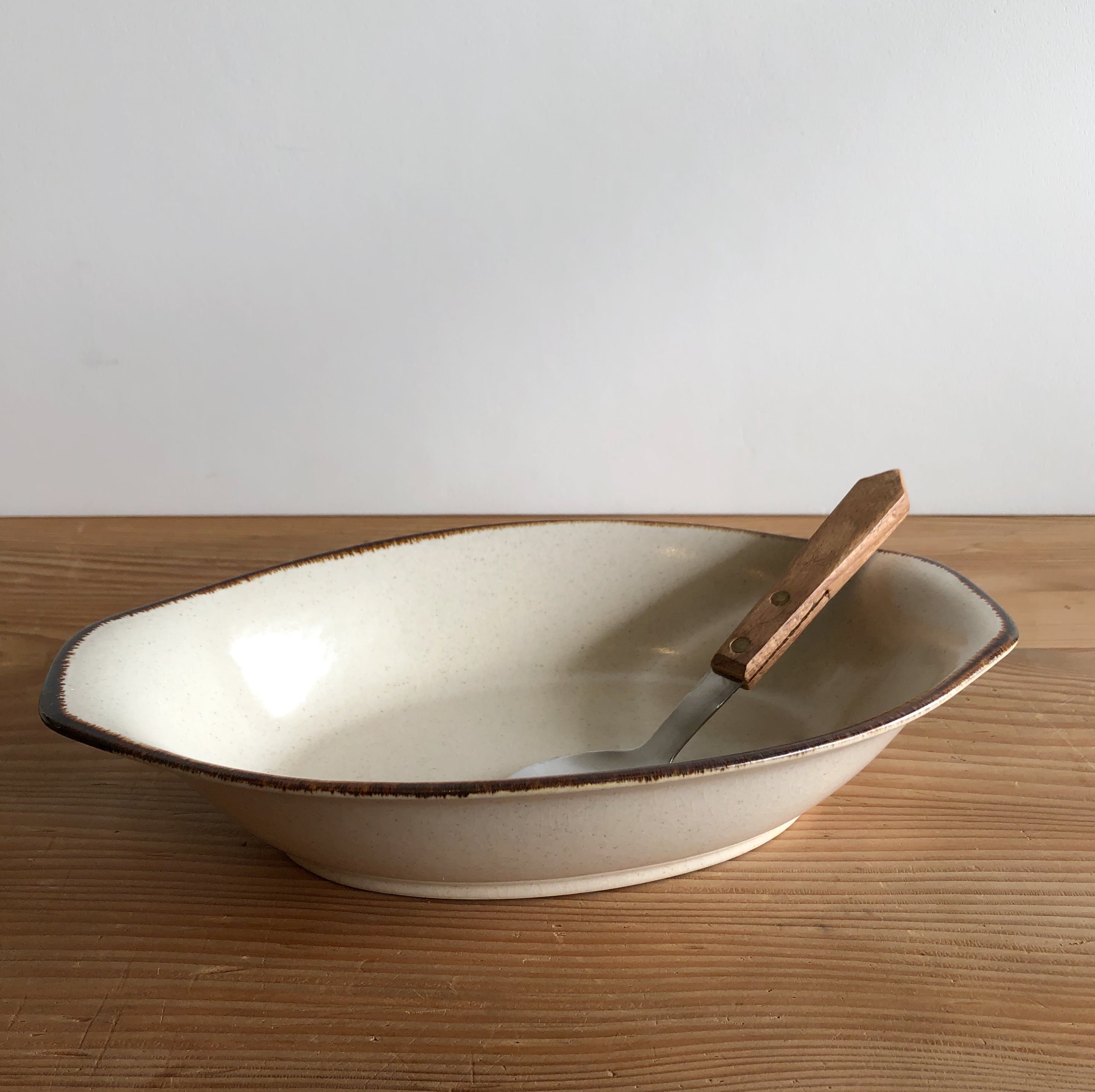 ブラウンのラインがシンプルで素敵なカレー皿です。