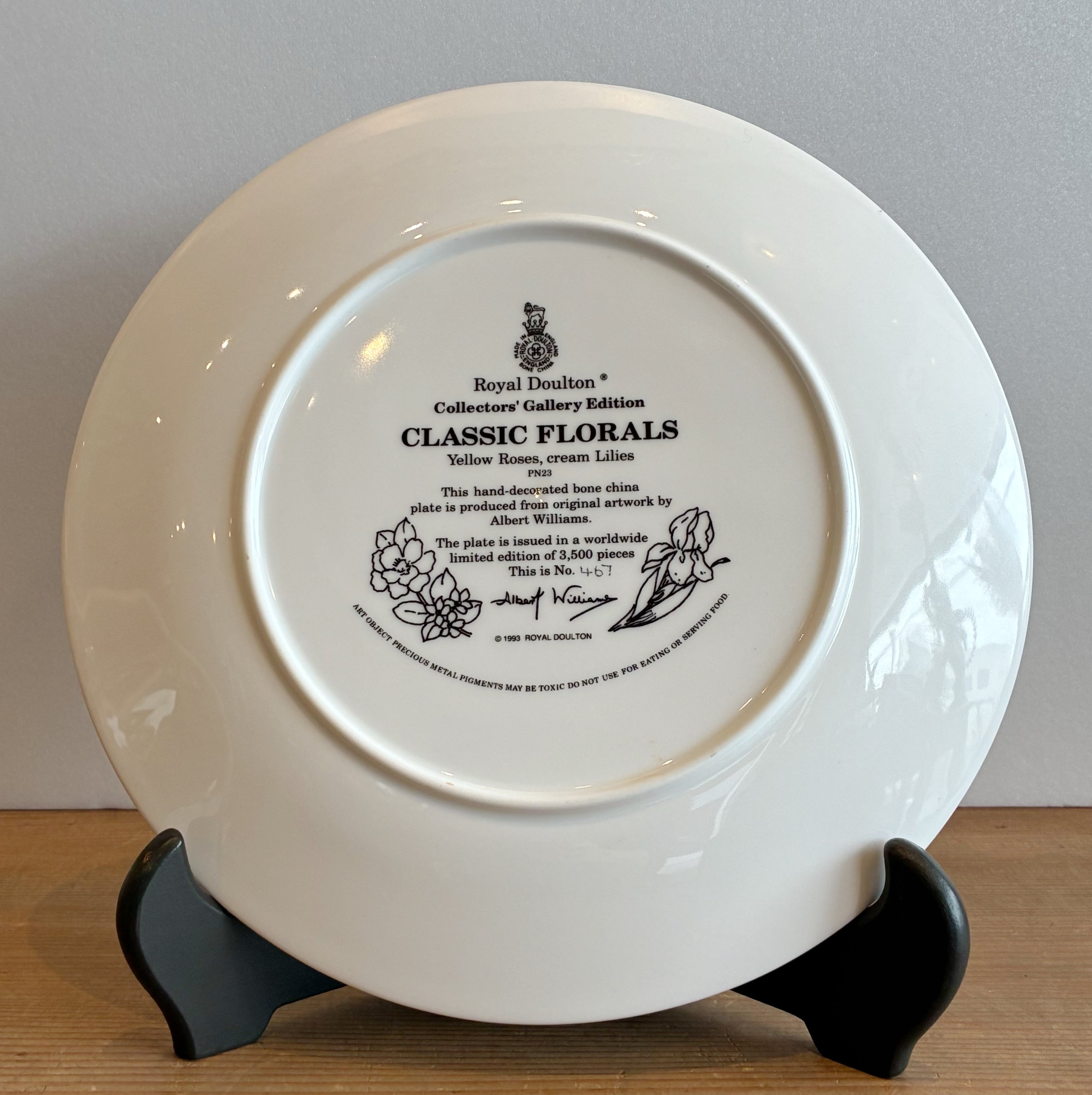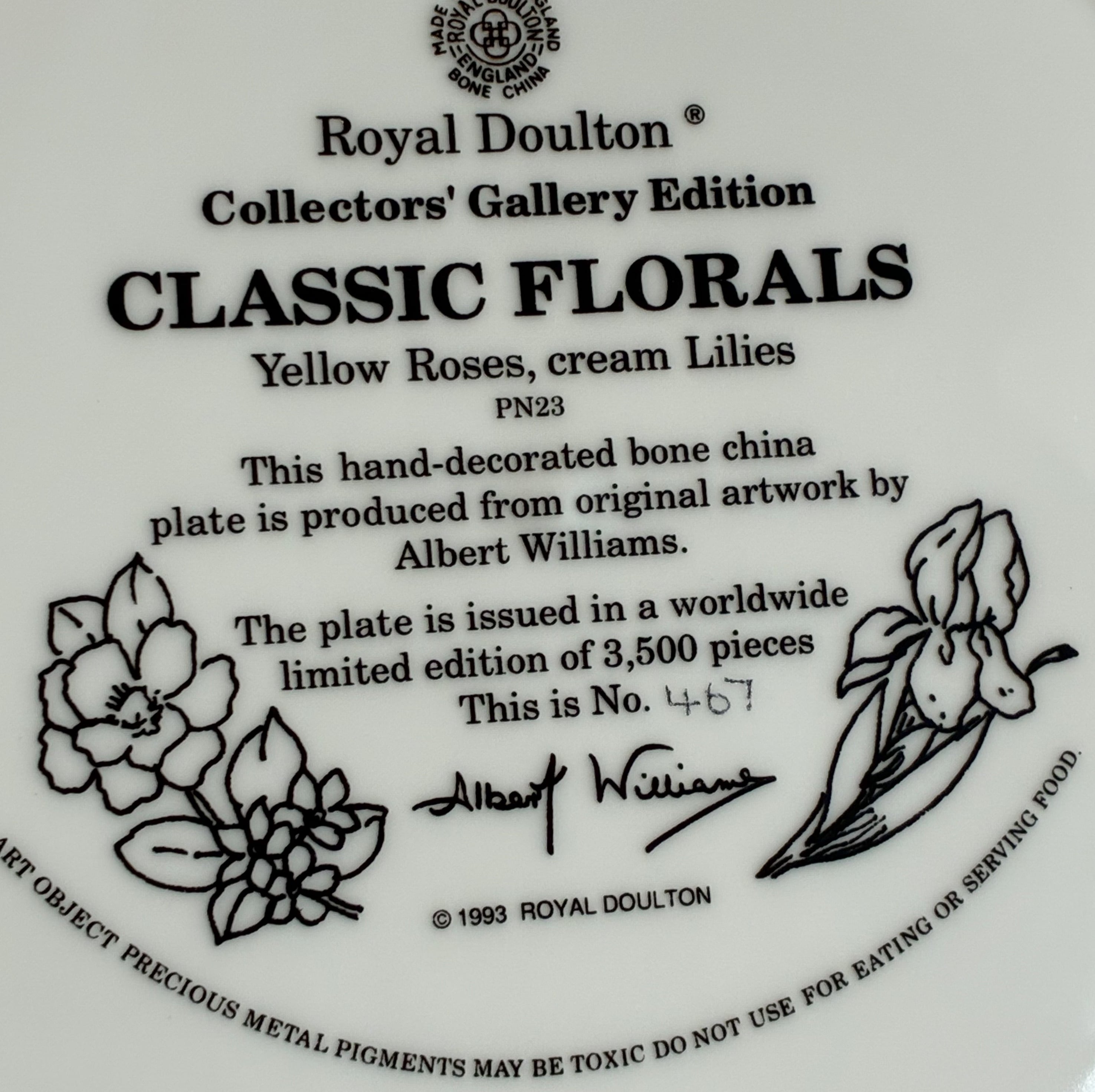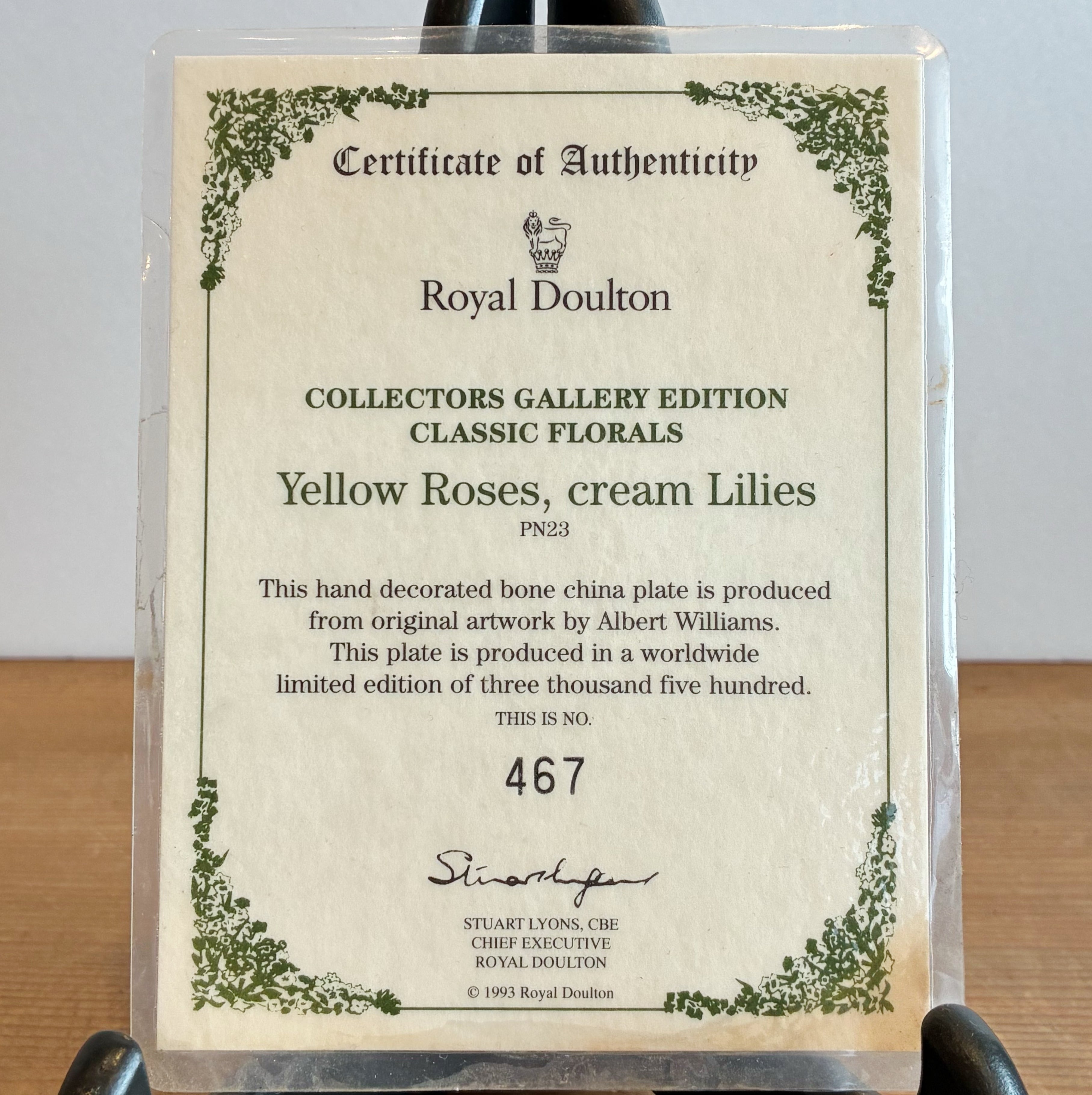 イギリスの画家アルバート・ウイリアムズの作品「Yellow Roses,cream Lilies」を絵皿にしたロイヤルドルトンの限定品です。