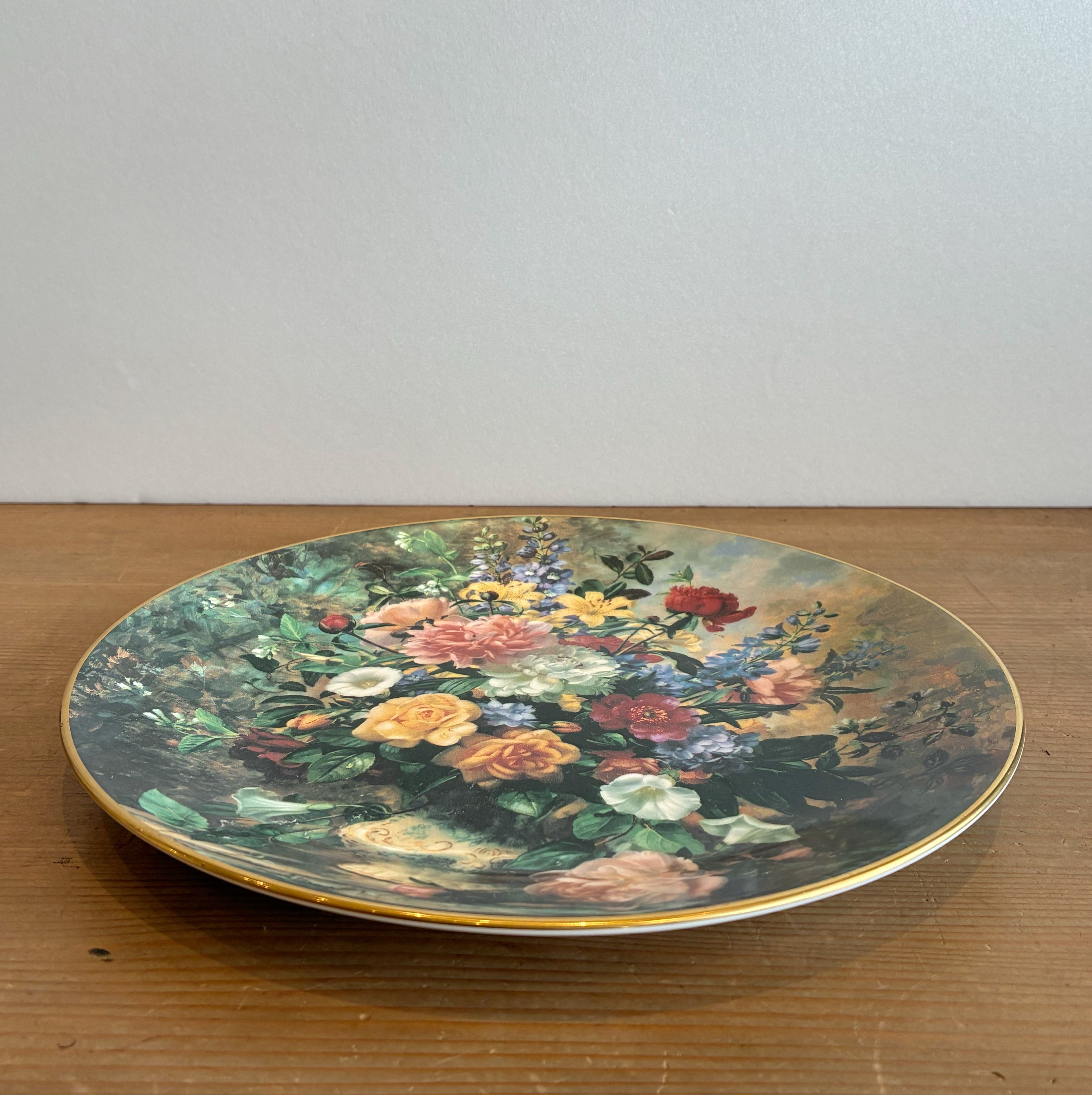 庭から摘んできたバラやユリなどの花々がプレートいっぱいに描かれた美しい一枚です。
