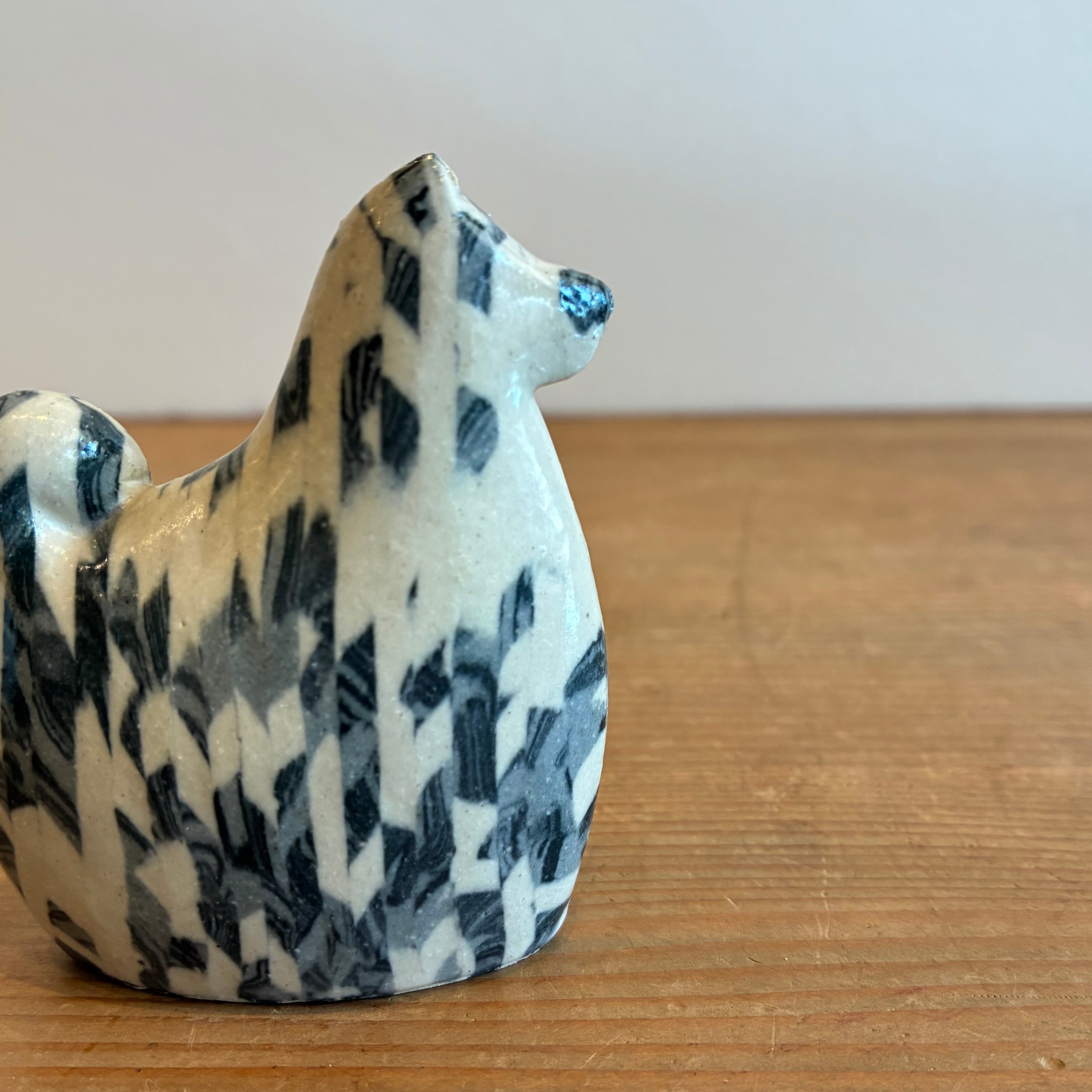 會田雄亮忍野窯で作られた練上干支シリーズの「戌(いぬ)」。