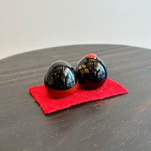 山口県に室町時代から続く伝統工芸、大内塗りの小さな小さな雛人形。