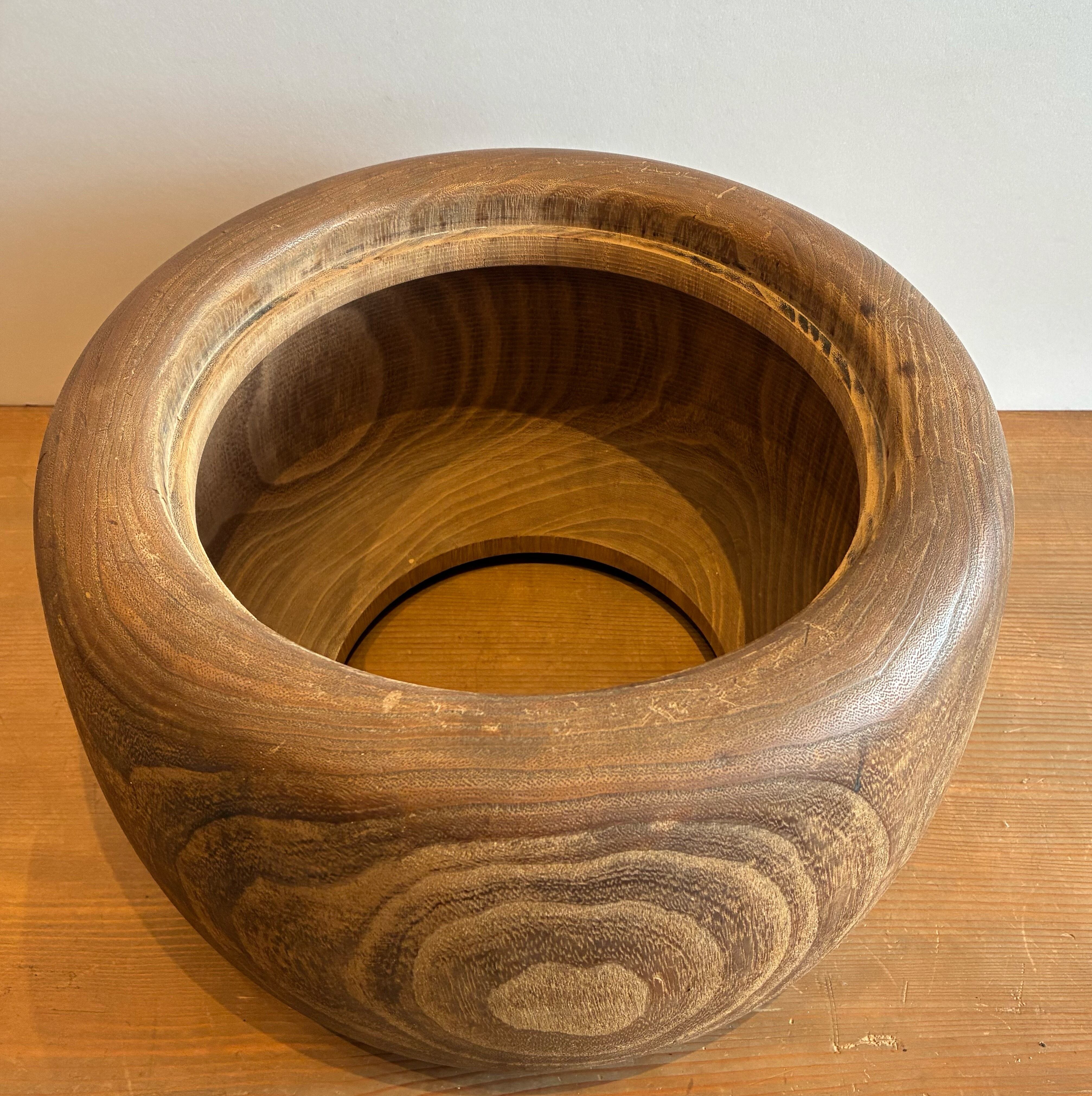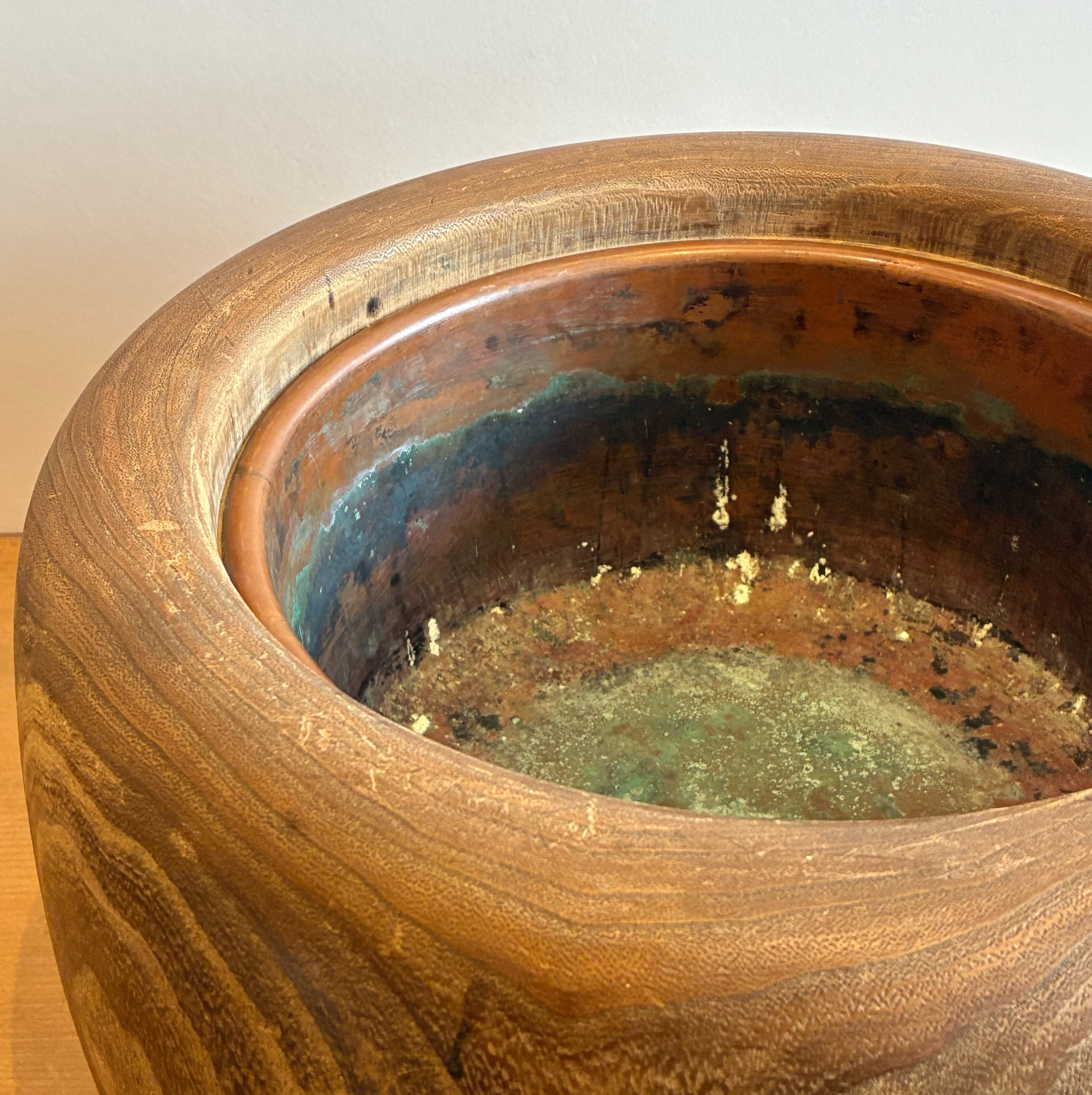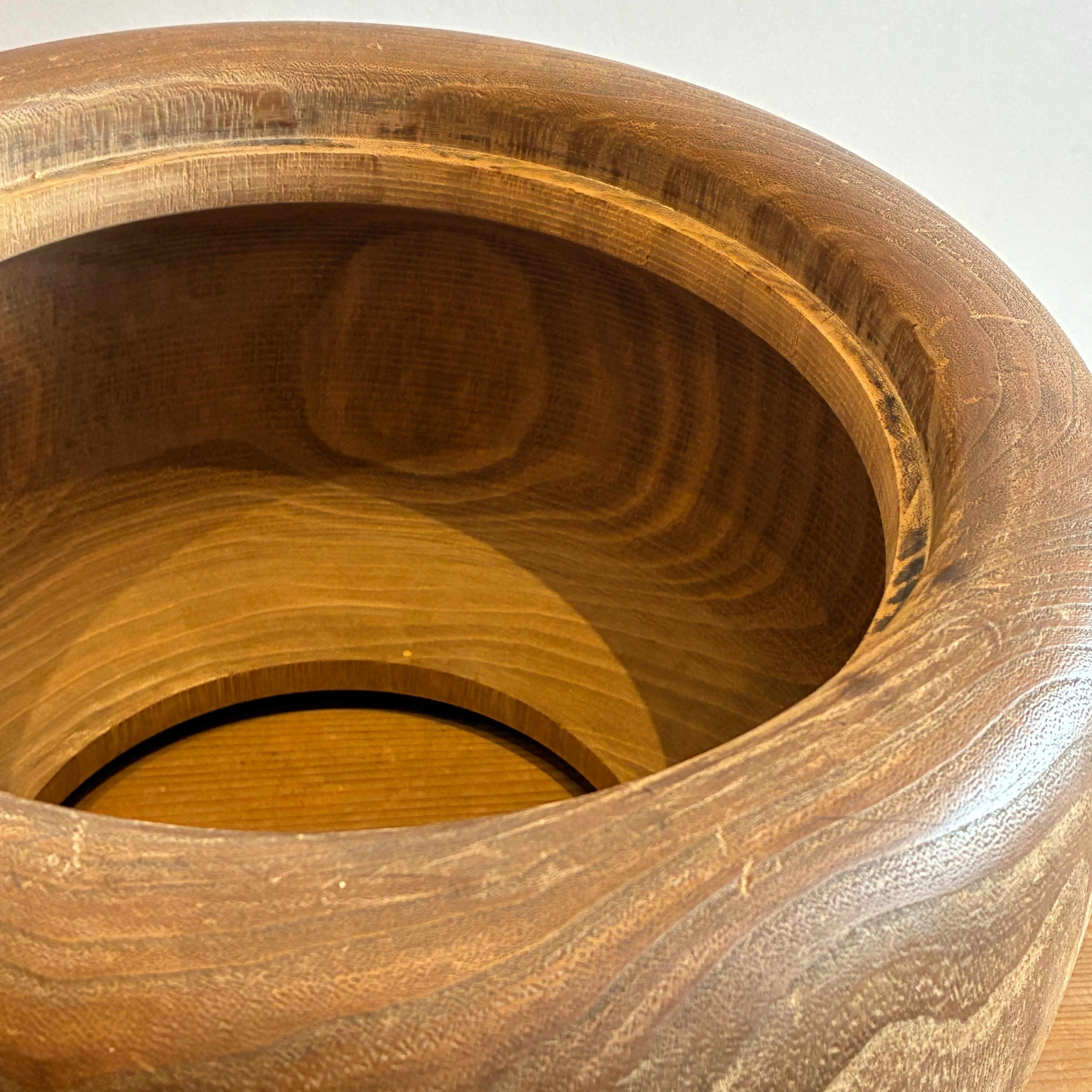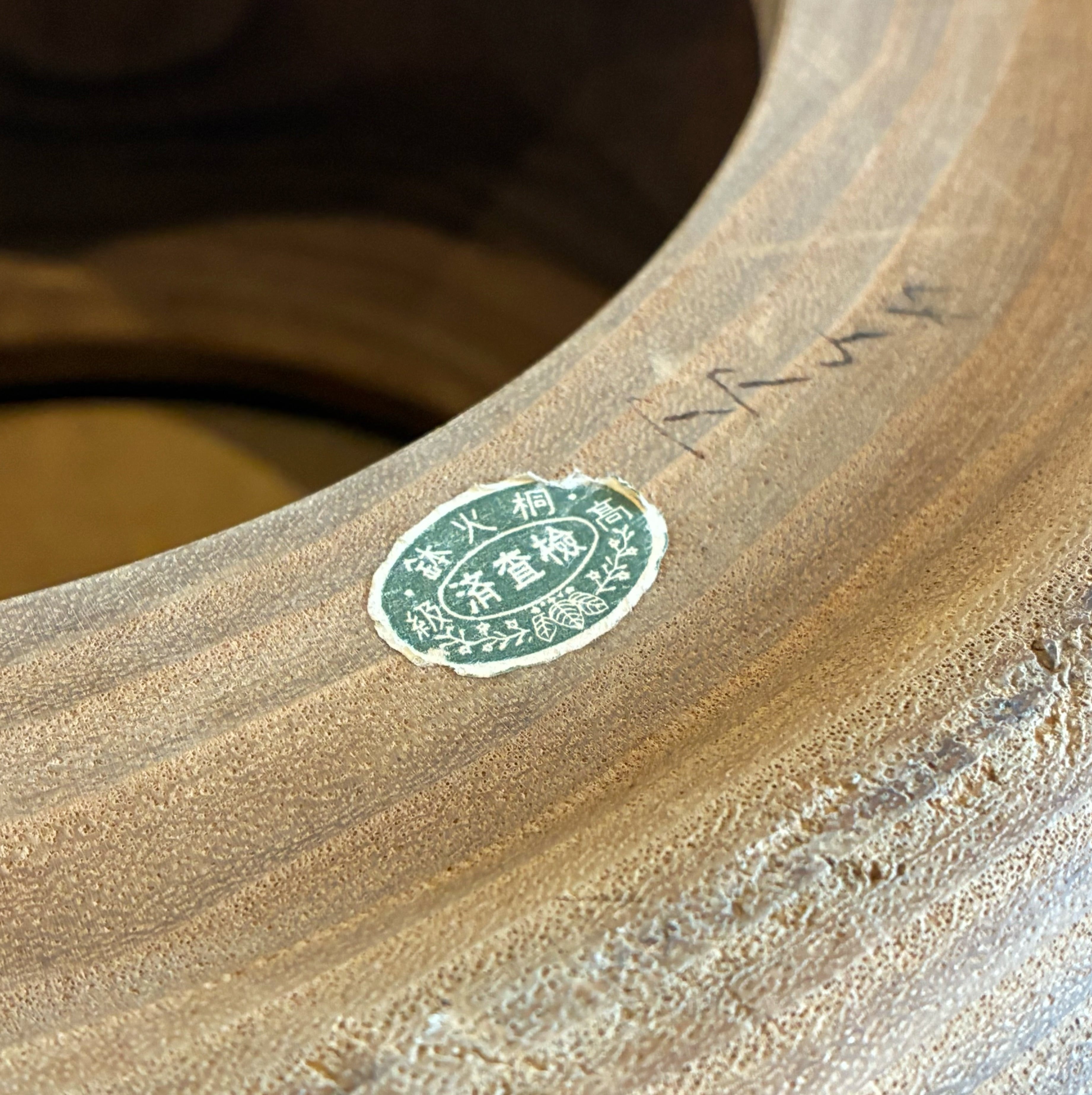 桐の木目が美しいくり抜きの火鉢。