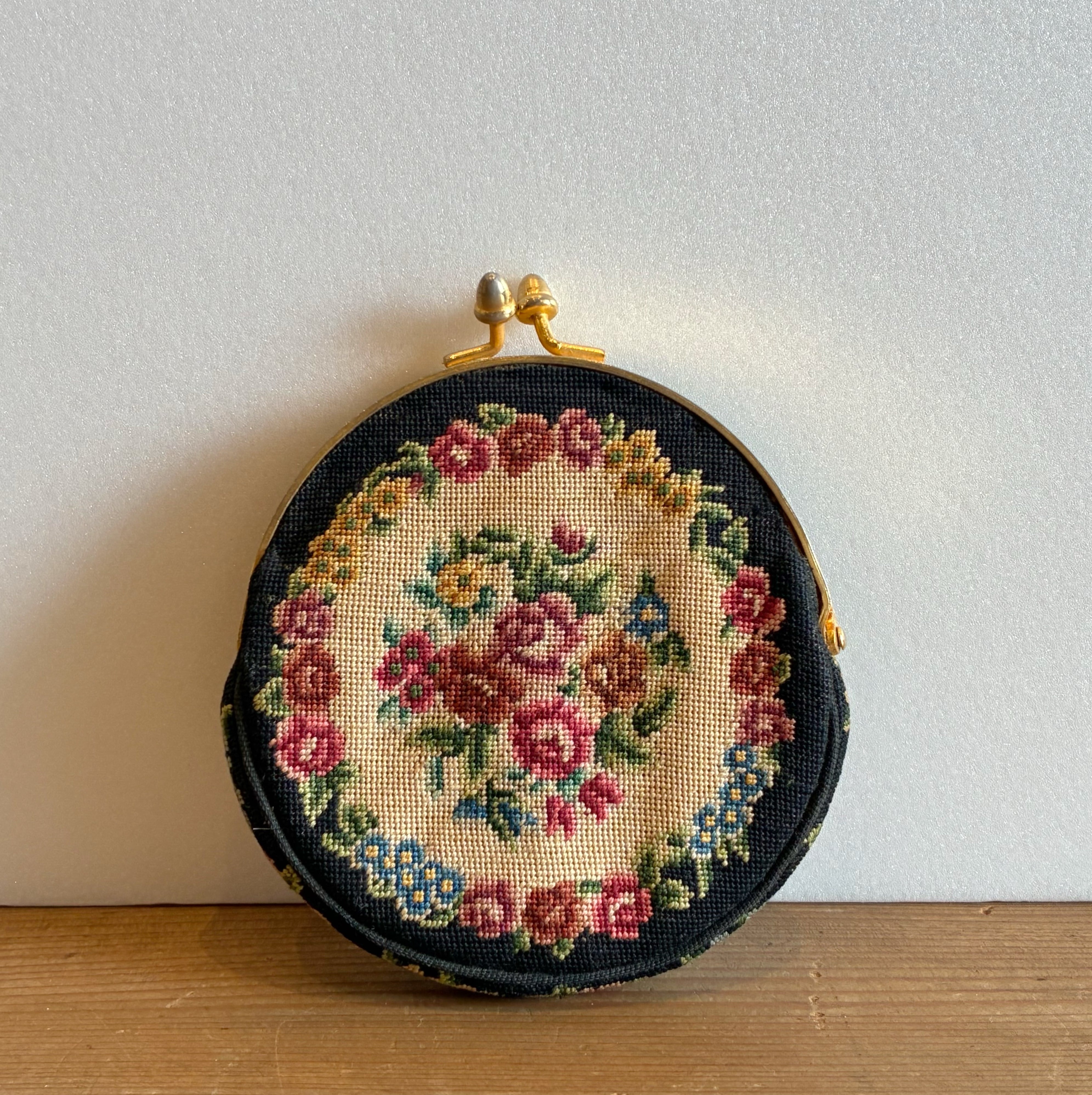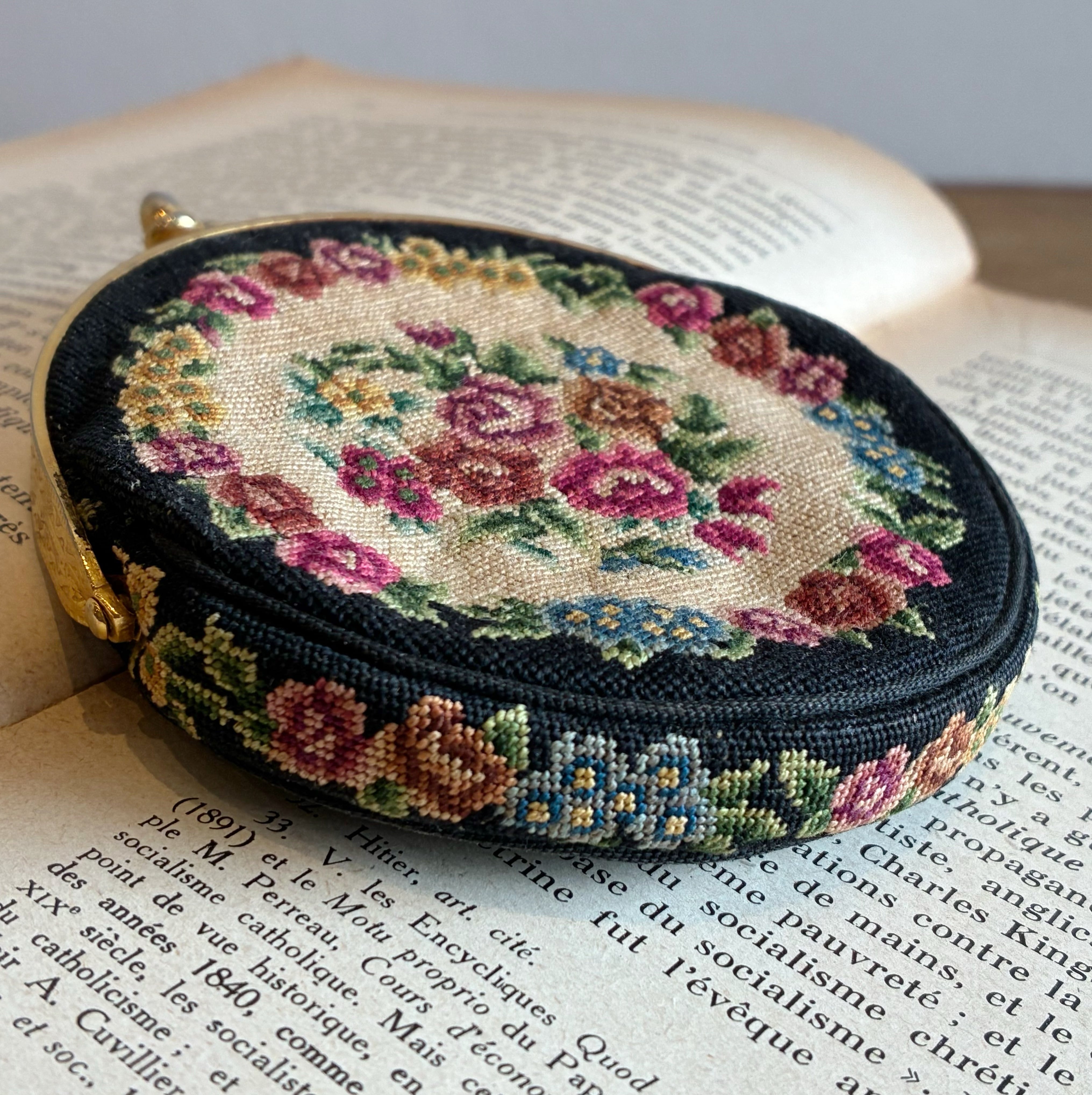 18世紀にウィーンで流行した伝統ある刺繍技術、プチポワン刺繍の小さながま口財布。