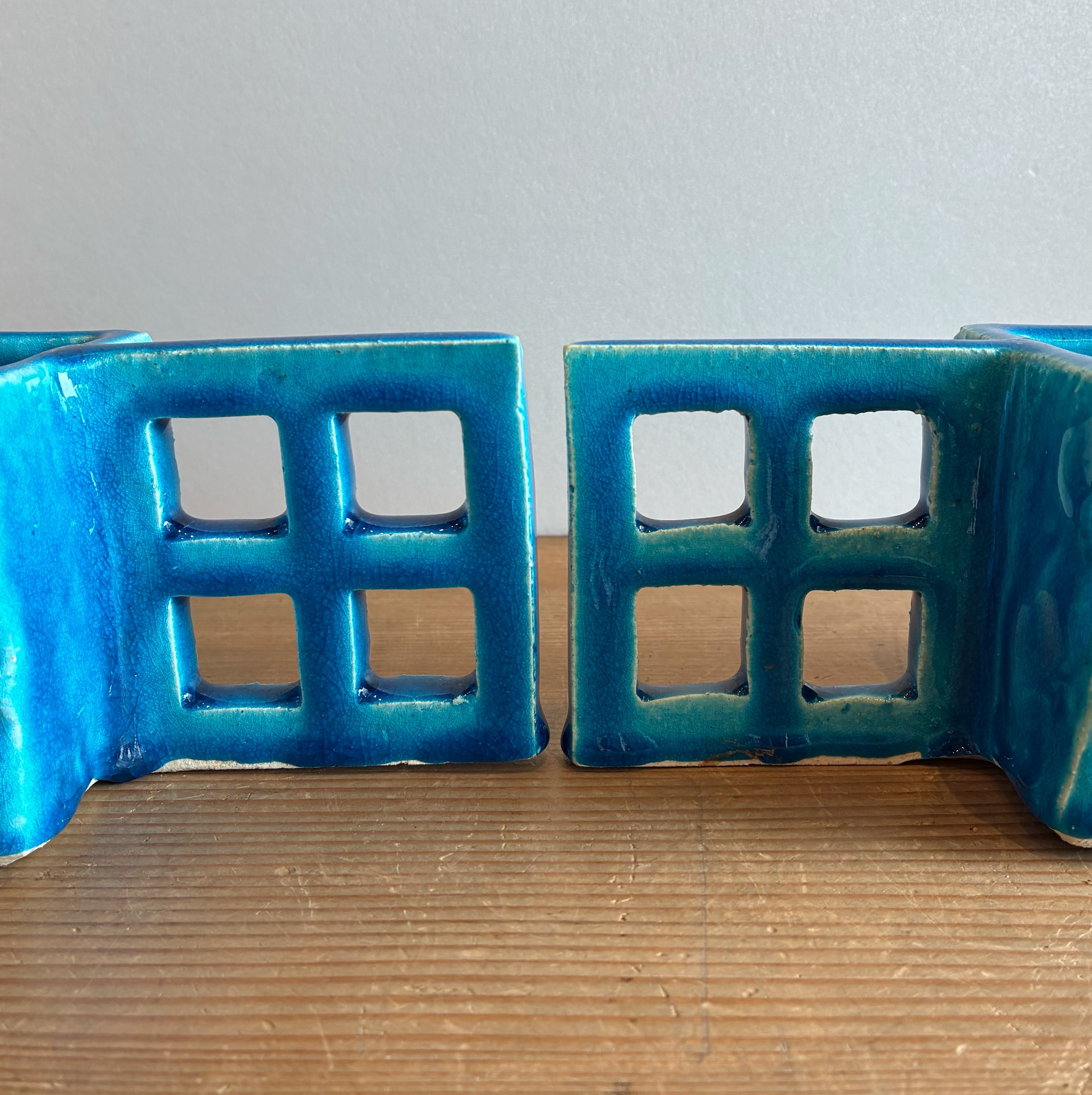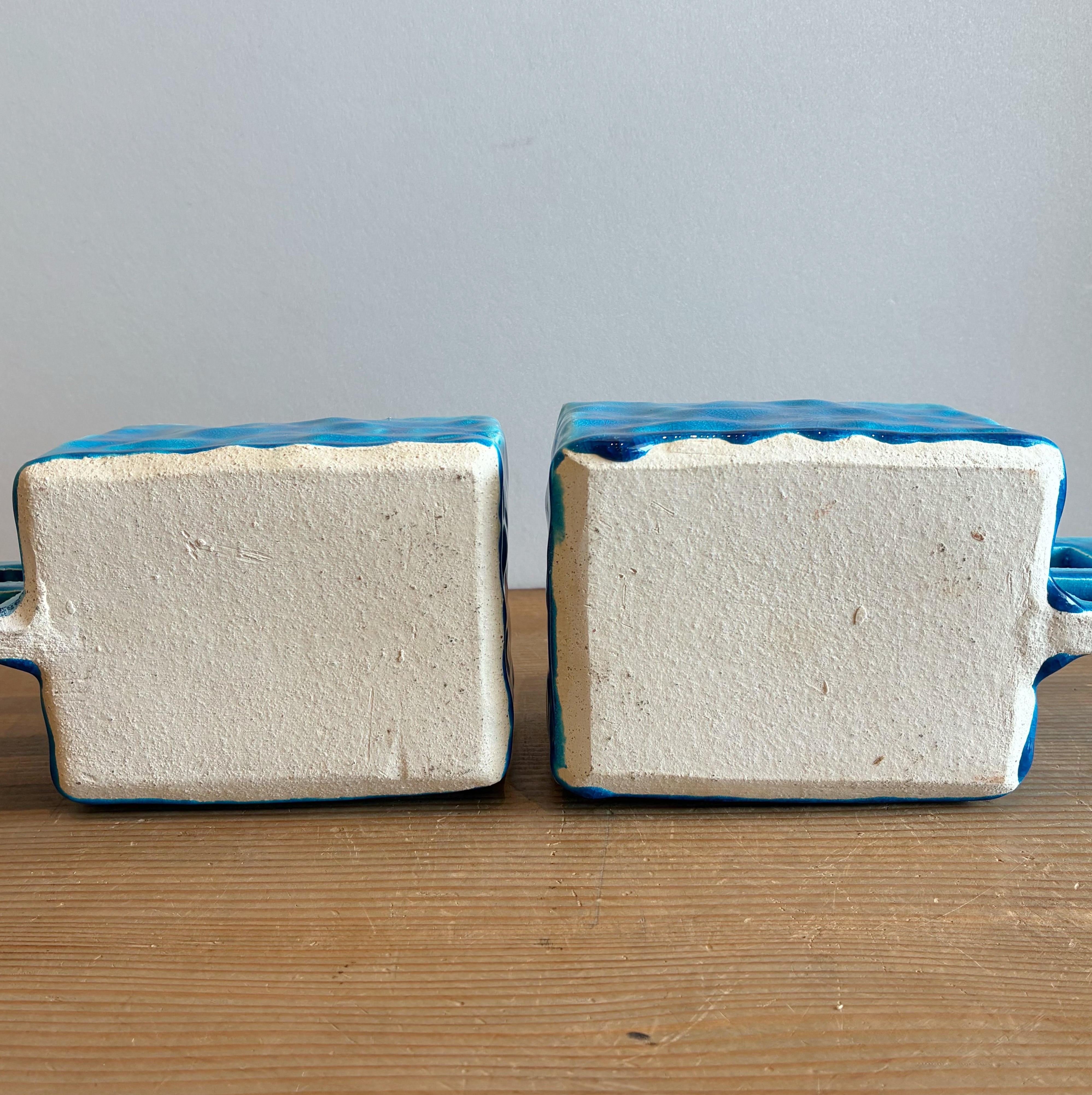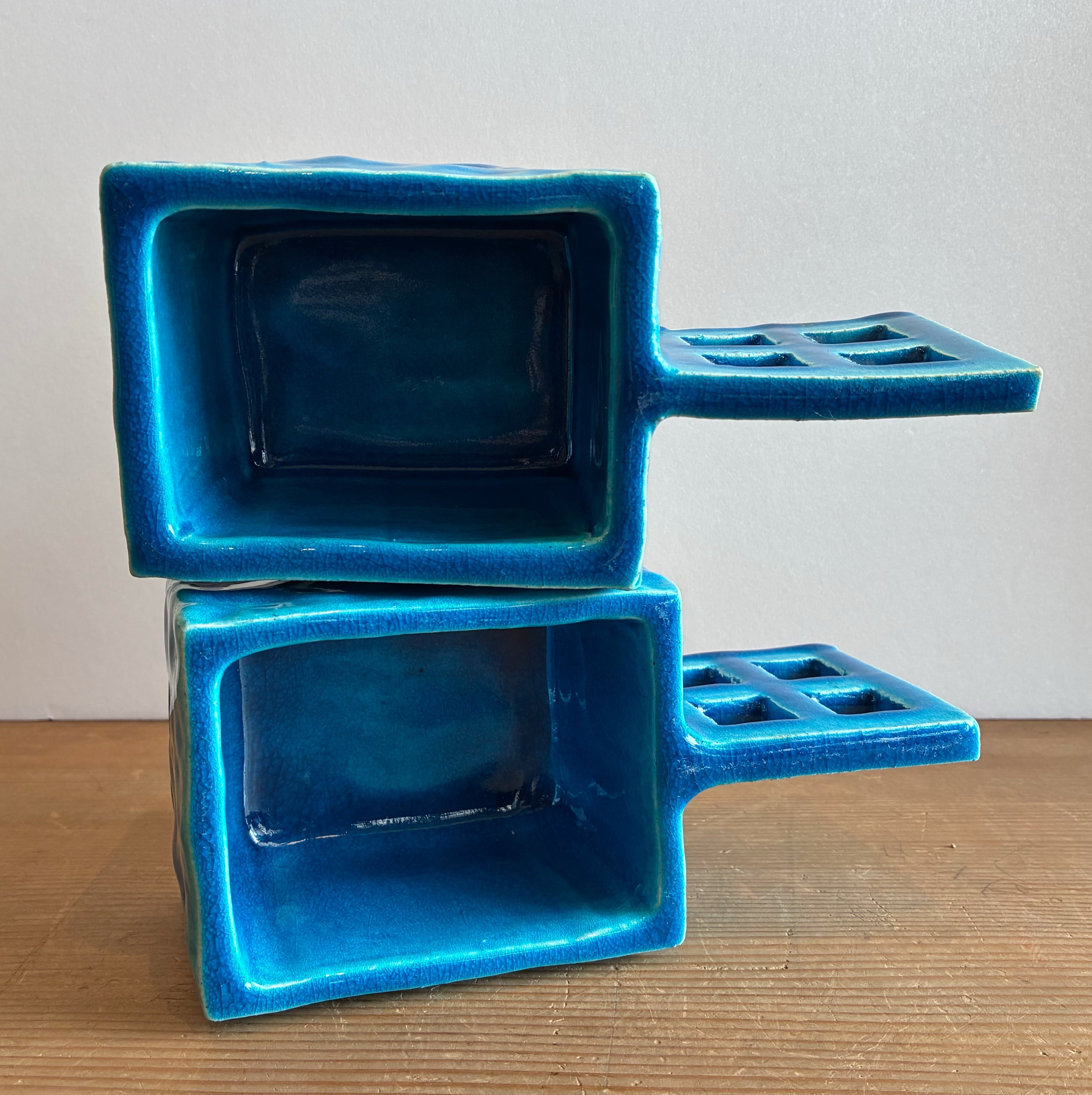 美しい海のような青釉と個性あるフォルムが目を惹くヴィンテージフラワーベース。