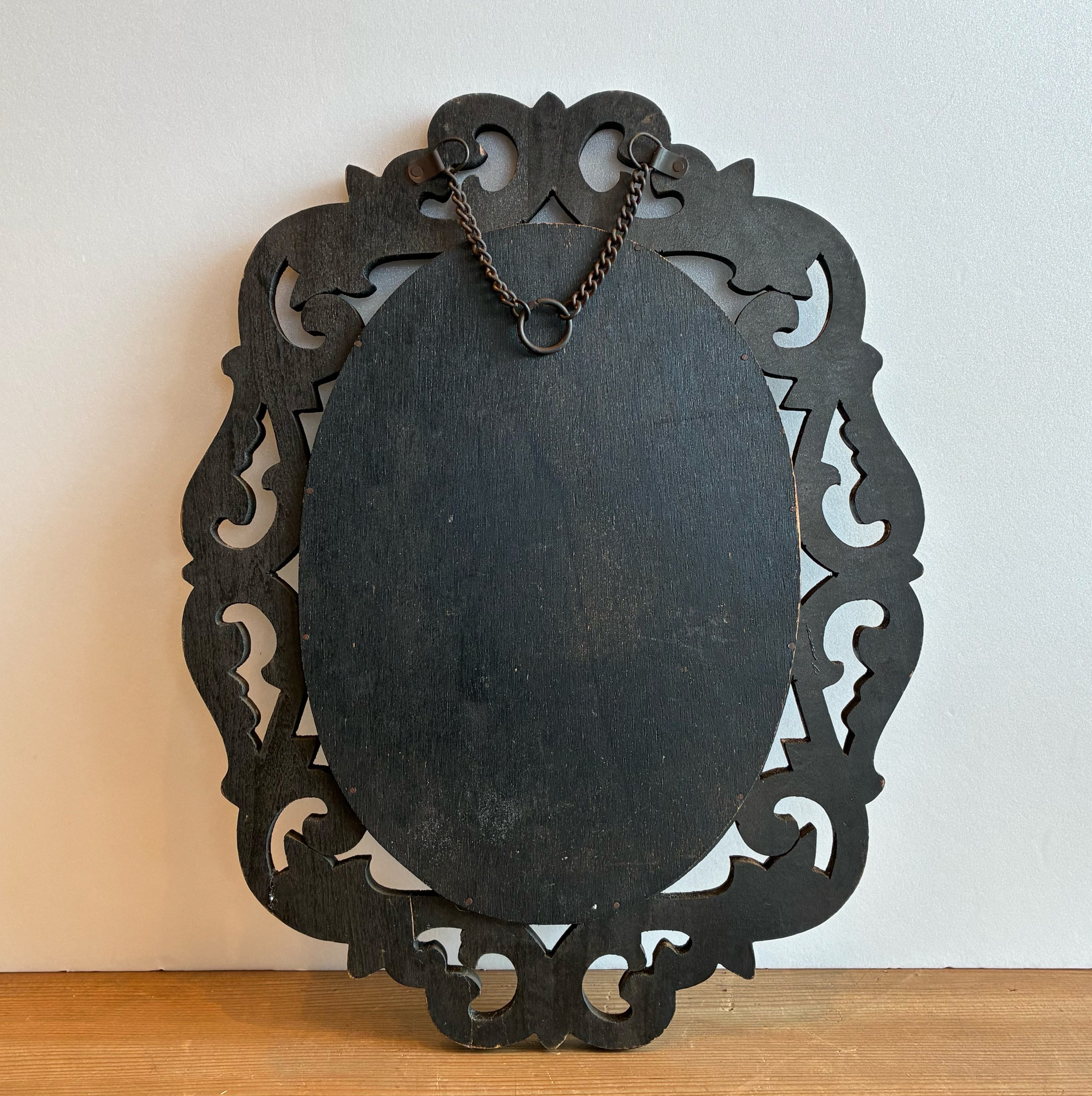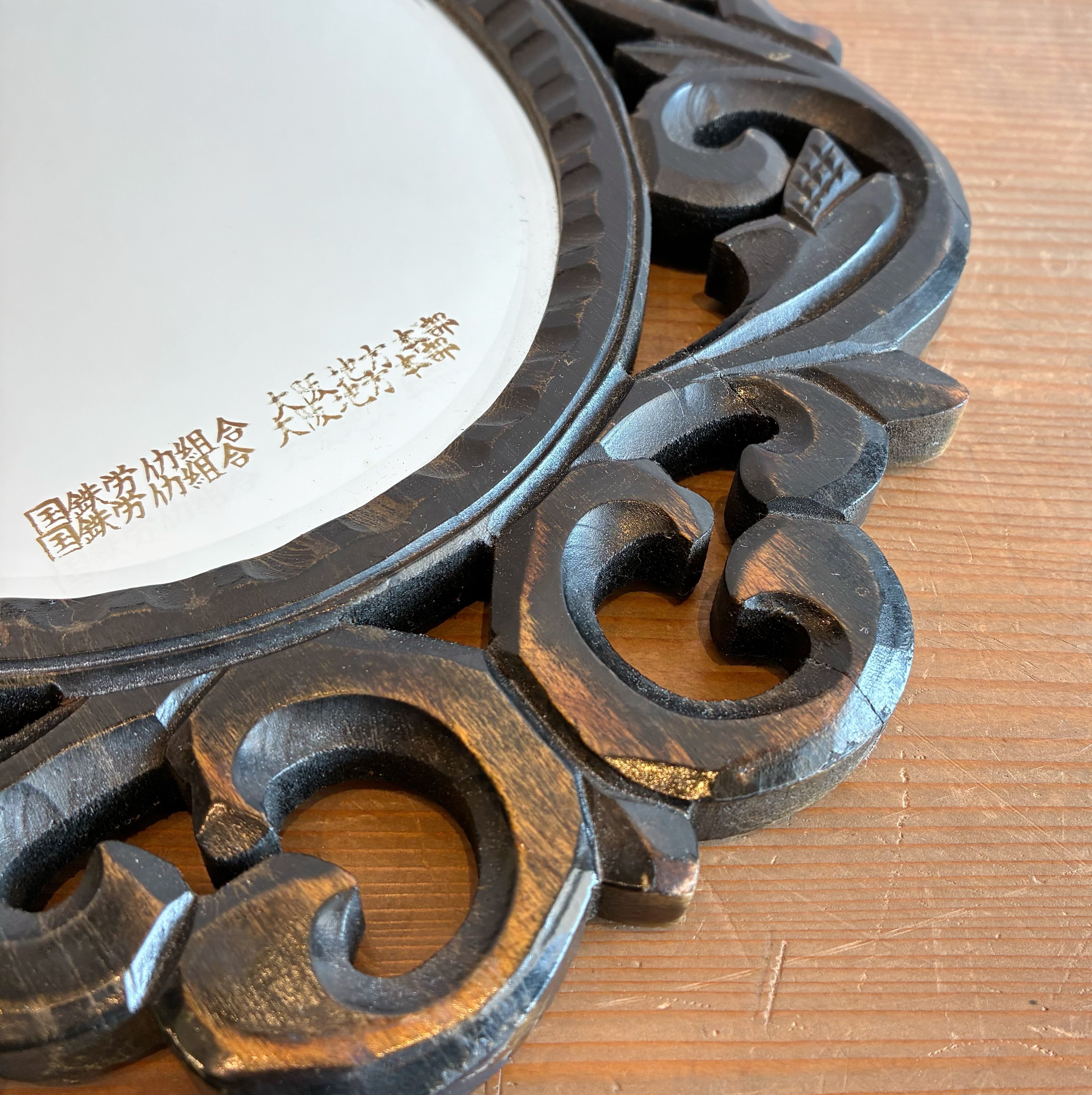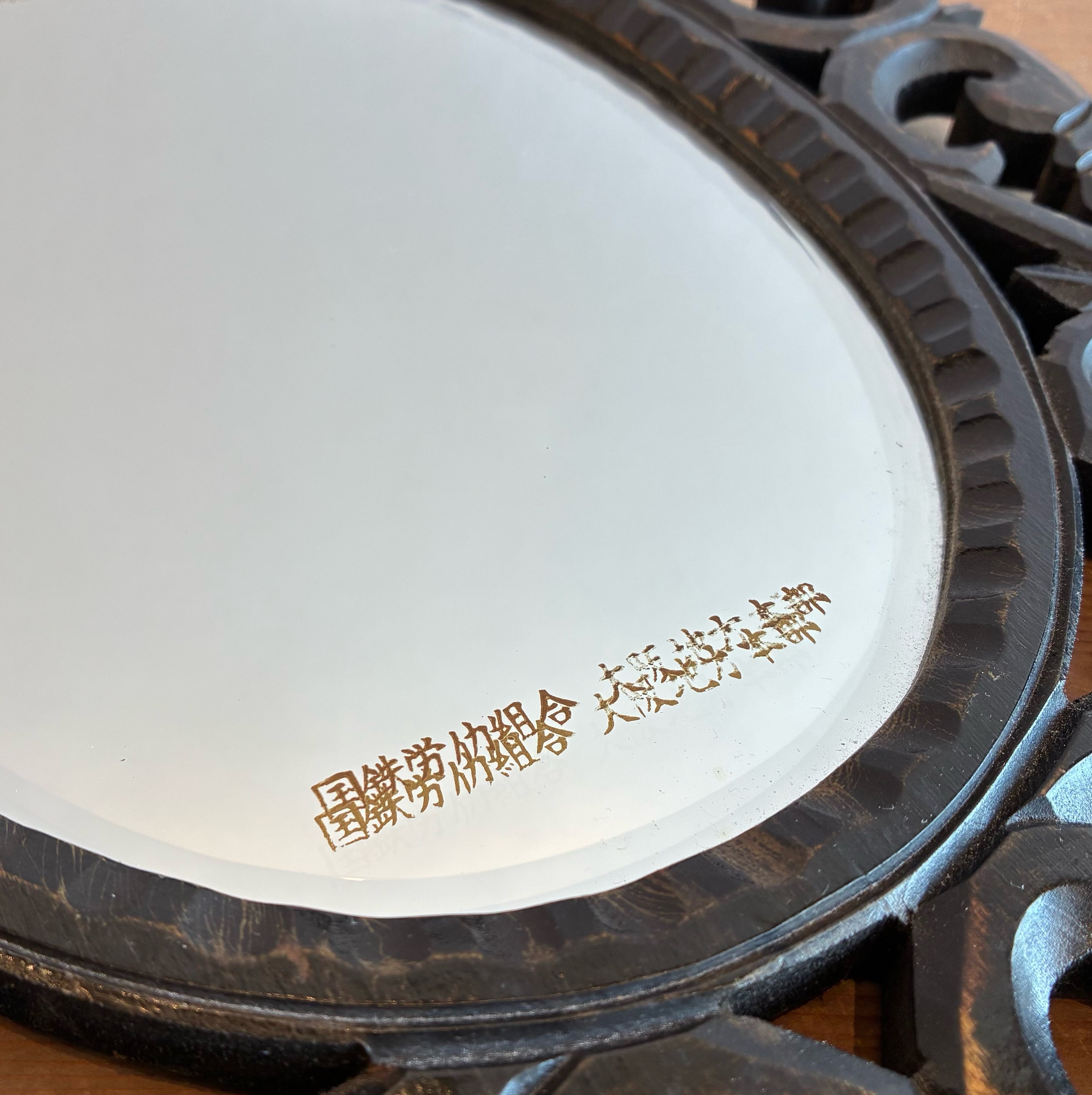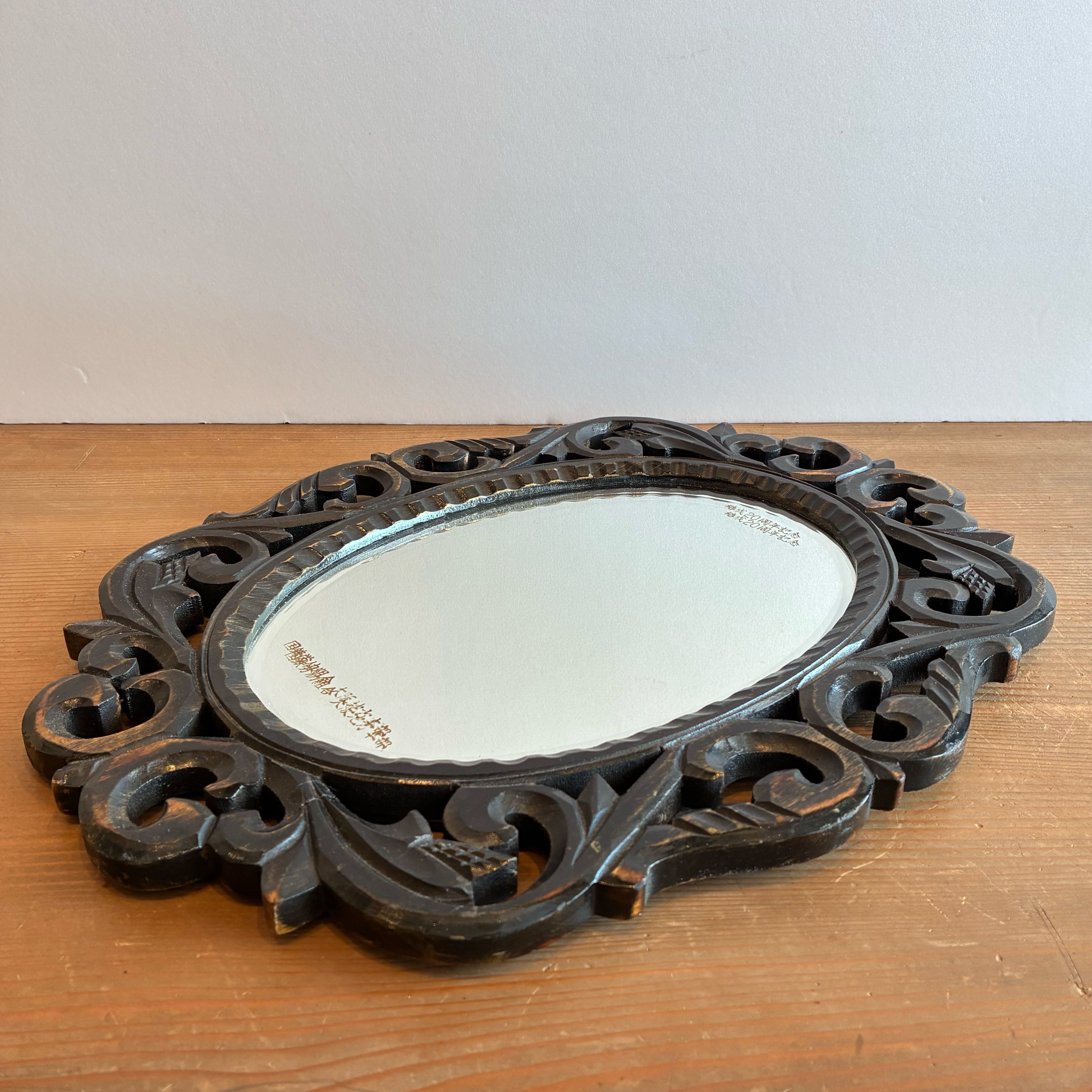 60年ほど前の木彫りフレームの壁掛けミラー。
