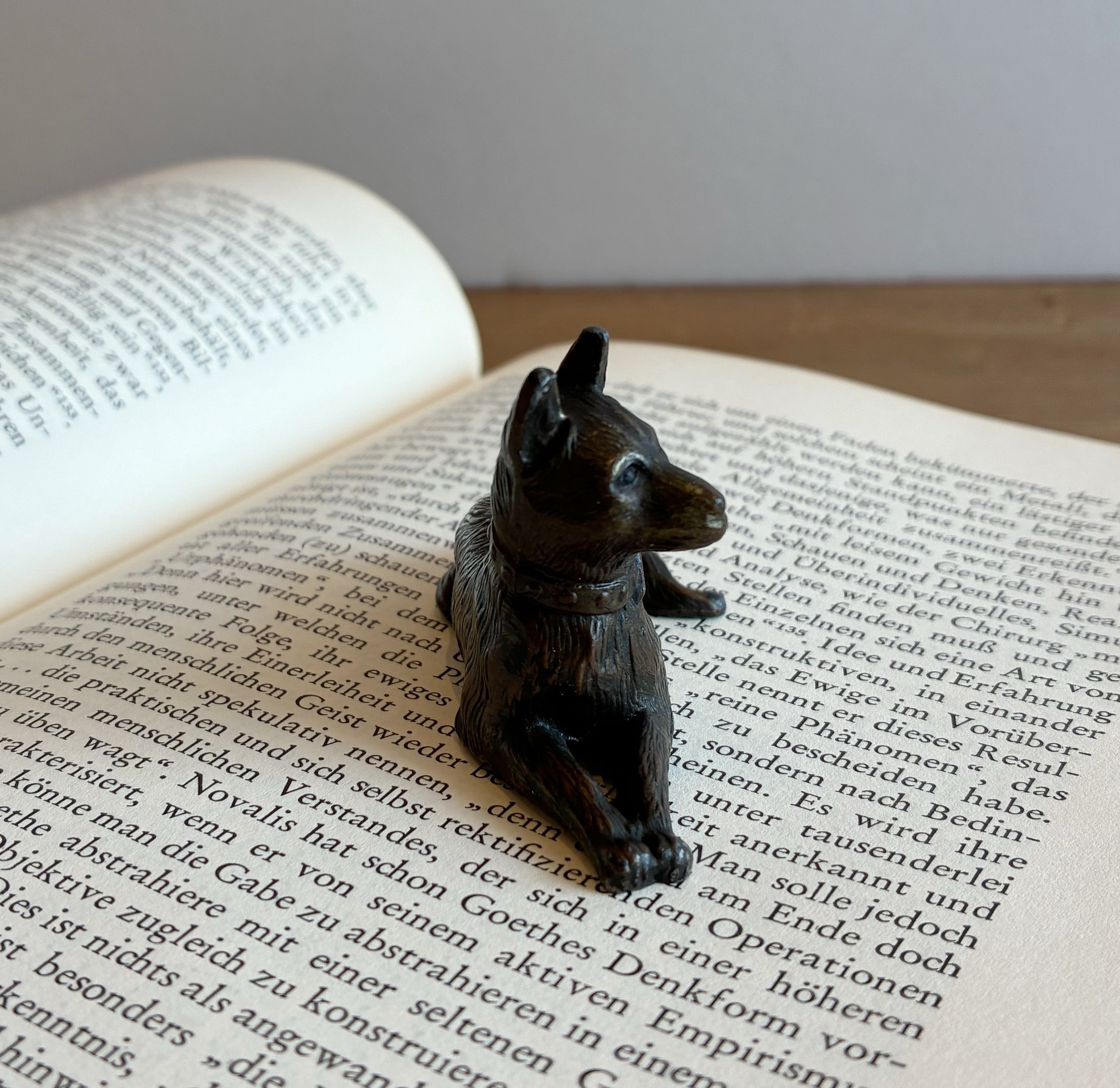 聡明そうな雰囲気漂うシェパードの小さなフィギュリン。
