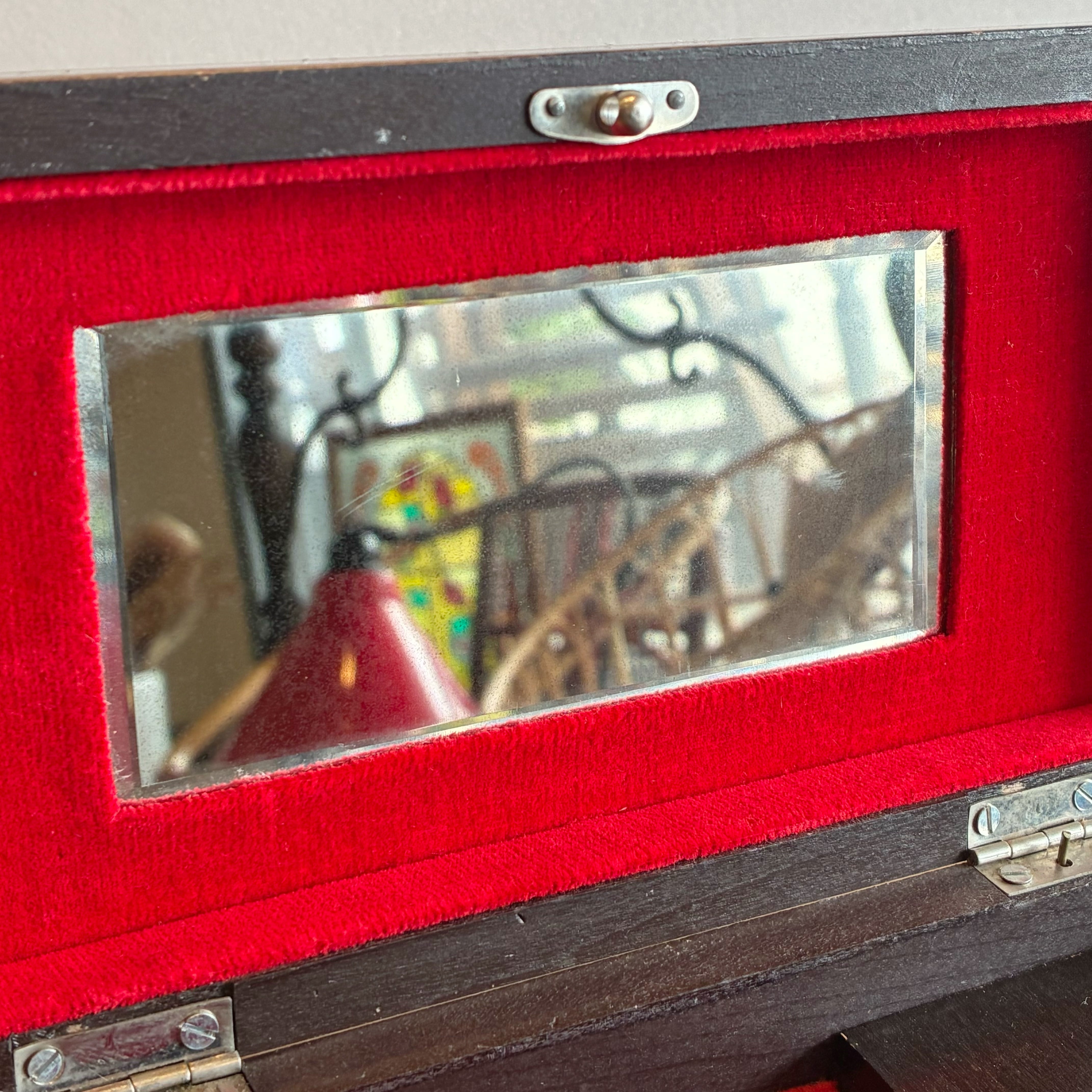 古いもののため多少こすれ感や鏡にくすみなどございます。オルゴールは動作確認済みですが、古いもののため補償はございません。