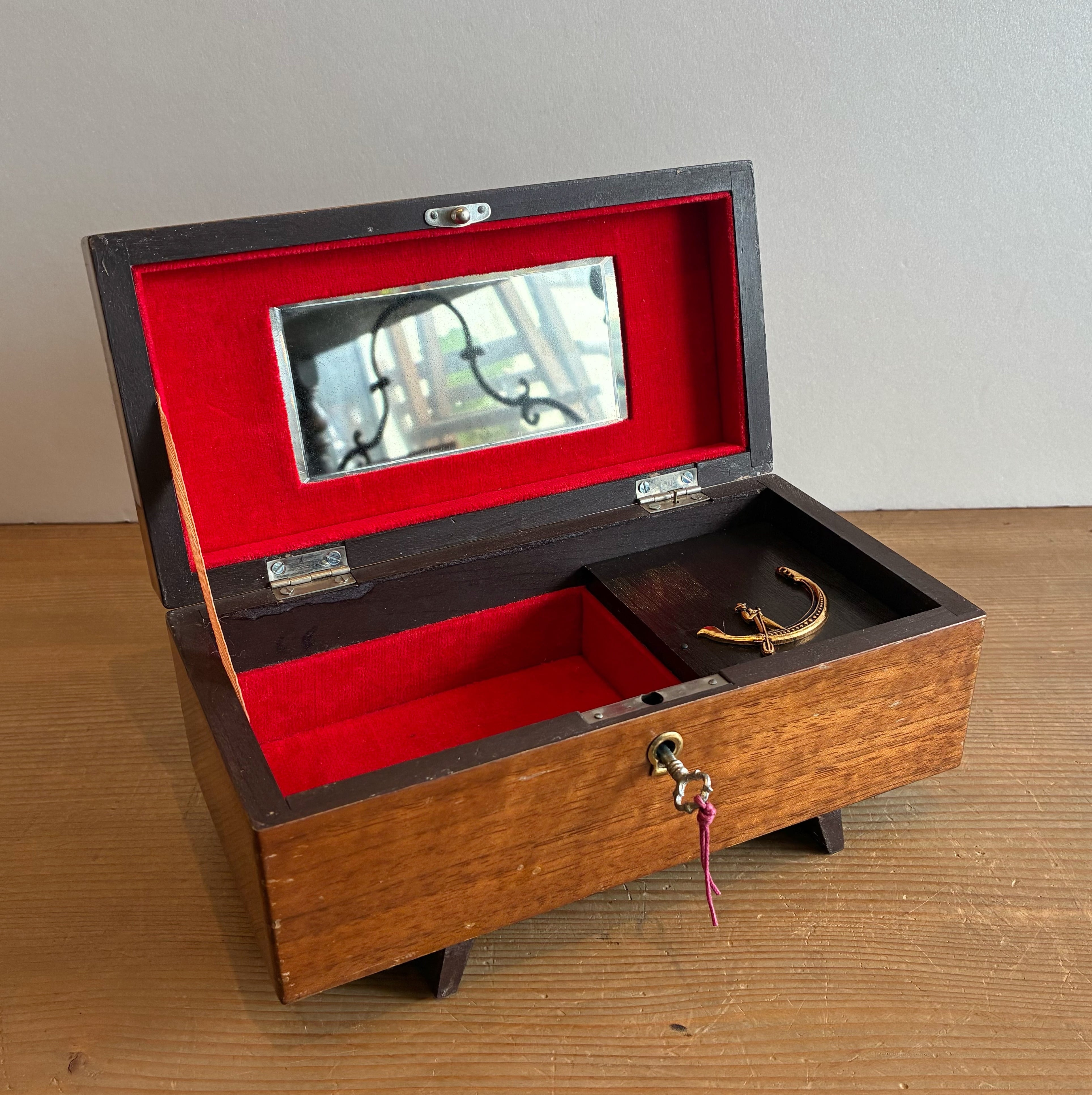 オルゴール付きの木製小物入れ。