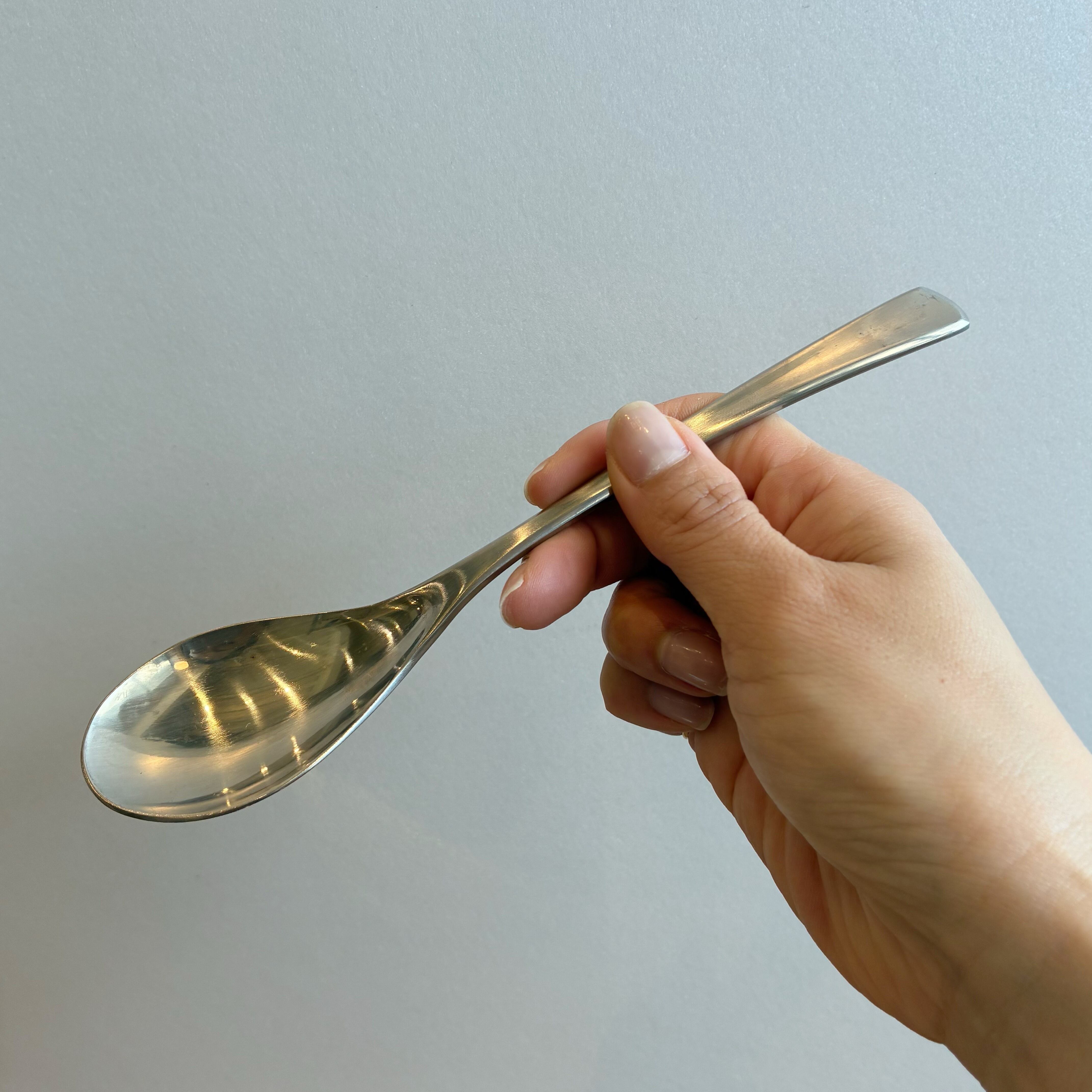 手にフィットするカーブが持ちやすいスプーンはカトラリー製造でも有名なAZUMAのものです。