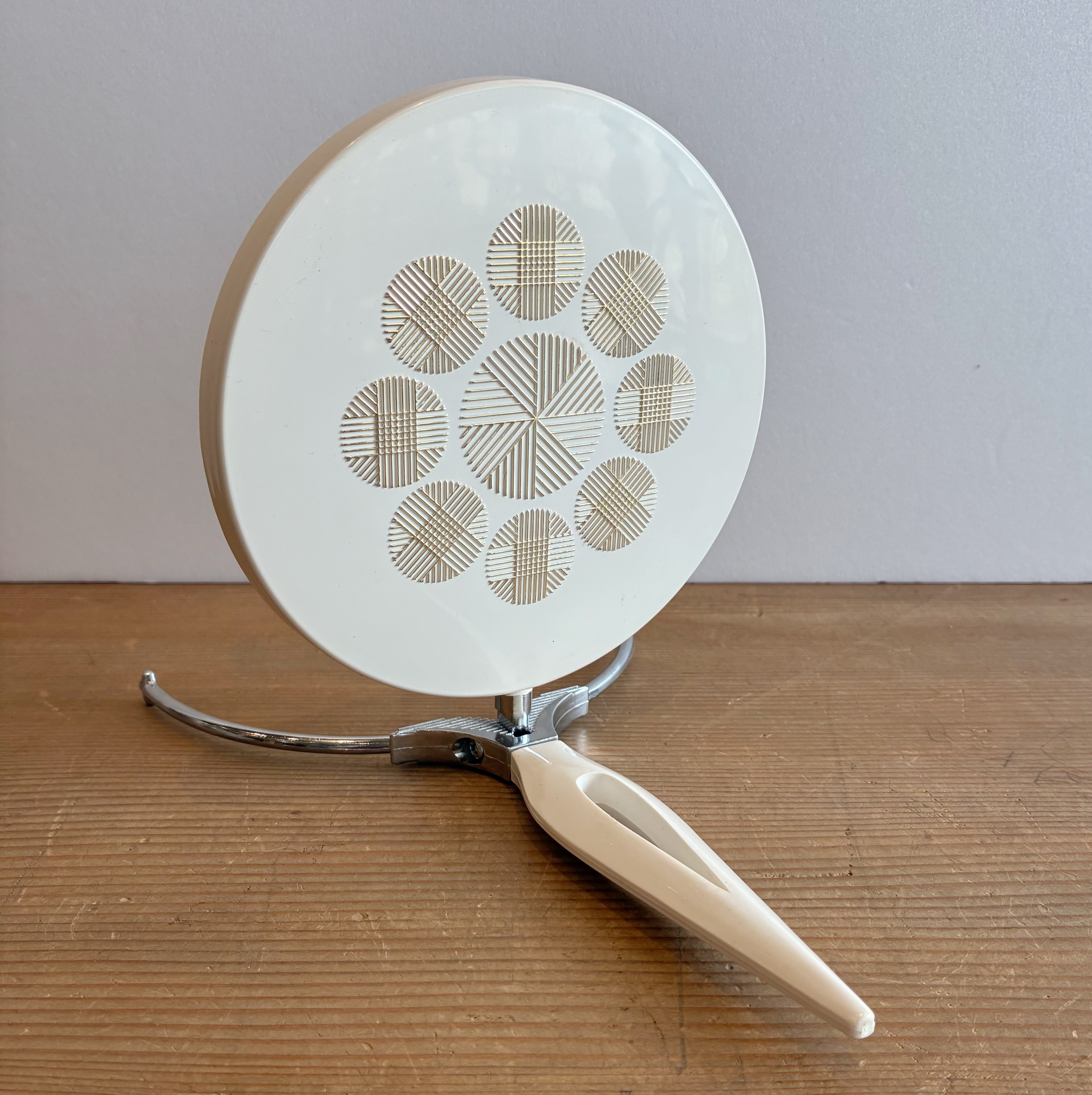 お花のようなレトロなデザインが可愛い白い手鏡。