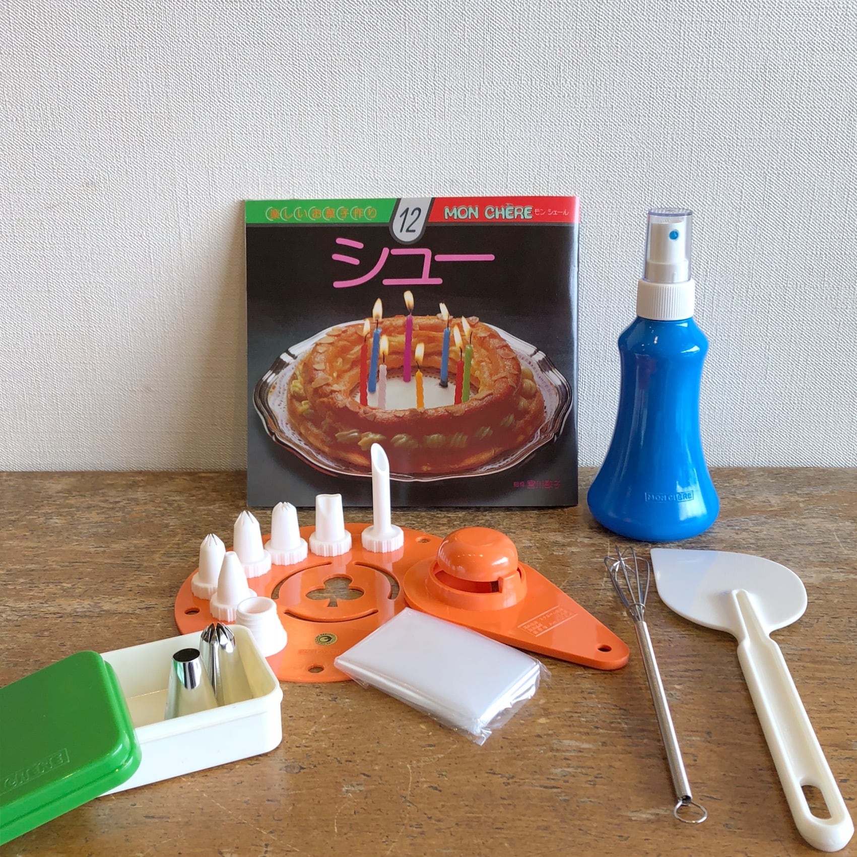 1977年に千趣会より販売されていたお菓子道具とレシピ本がセットになった『モンシェール』。12号目のこちらは、「シュー」です。