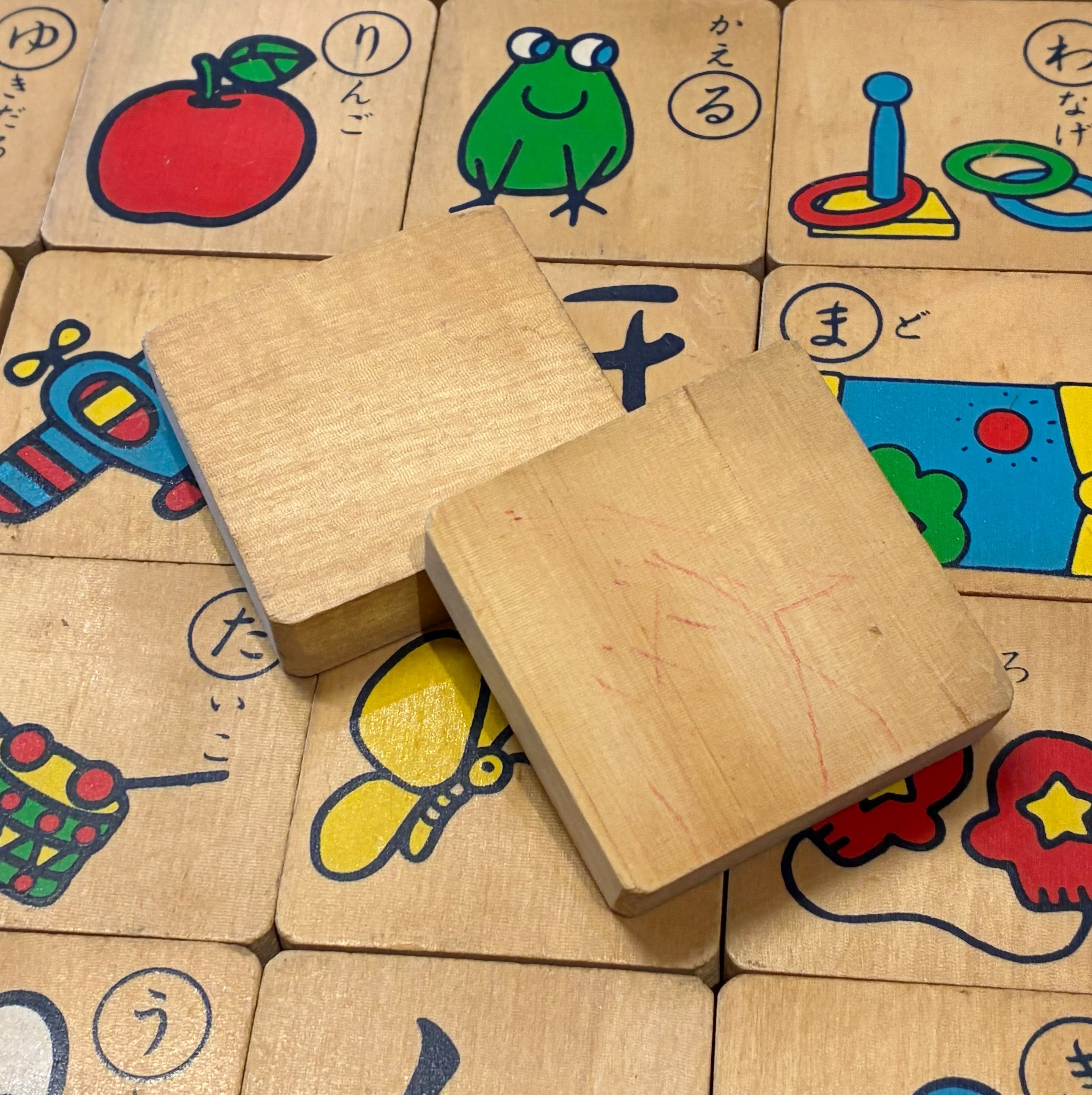 積み木パーツには1つ1つ裏表にかわいいイラストや文字が描かれています。