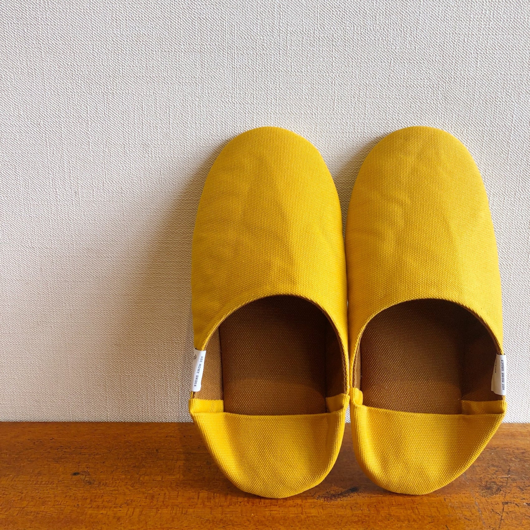 日本一のスリッパ産地、山形県河北町(かほくちょう)で大正8年創業の老舗履物メーカーによって作られている帆布バブーシュ。
