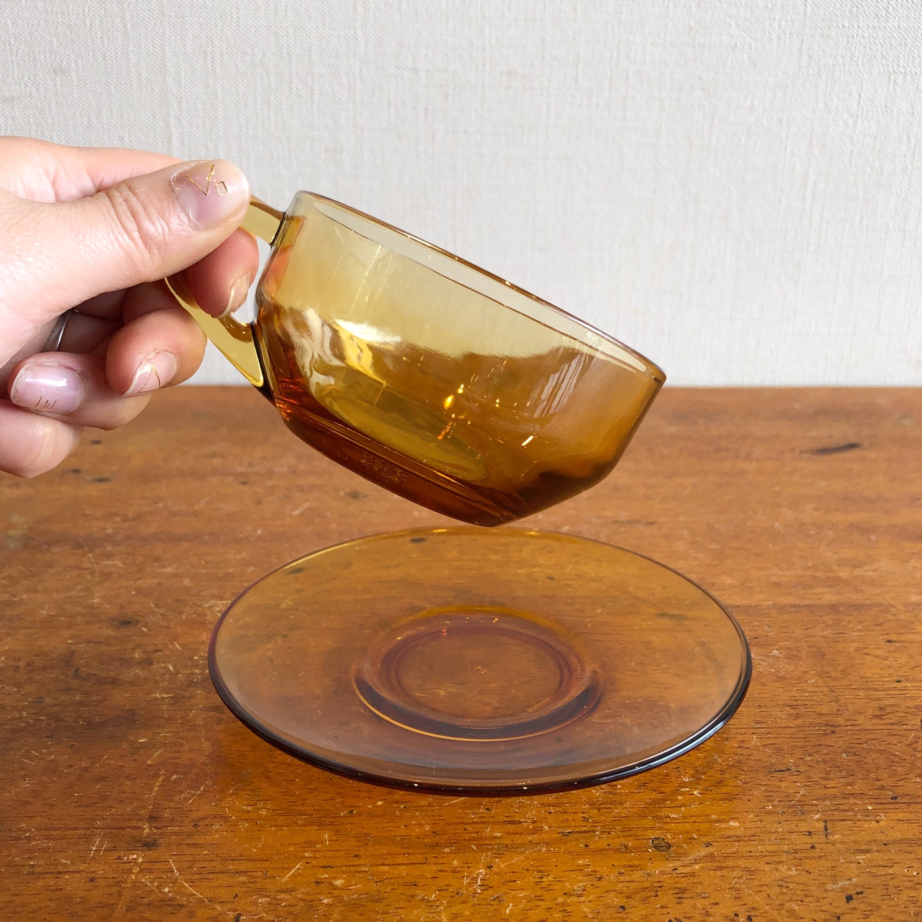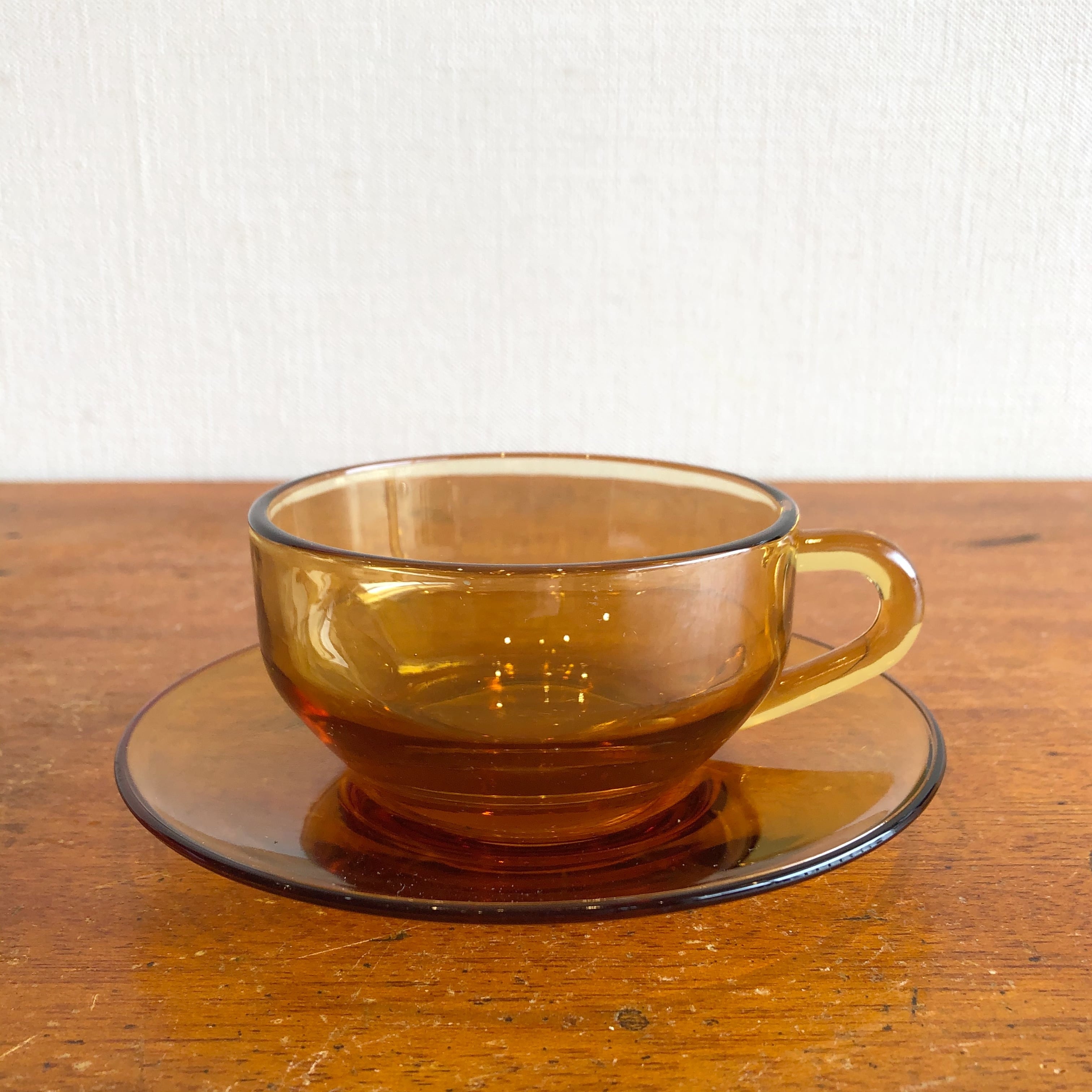 1970年~1978年まで製造販売され、当時は陶器製のカップが主流な中、国内で初めてガラス製品に琥珀色を用い、製造されたガラス製のカップ&ソーサーは大変人気のあるシリーズでした。