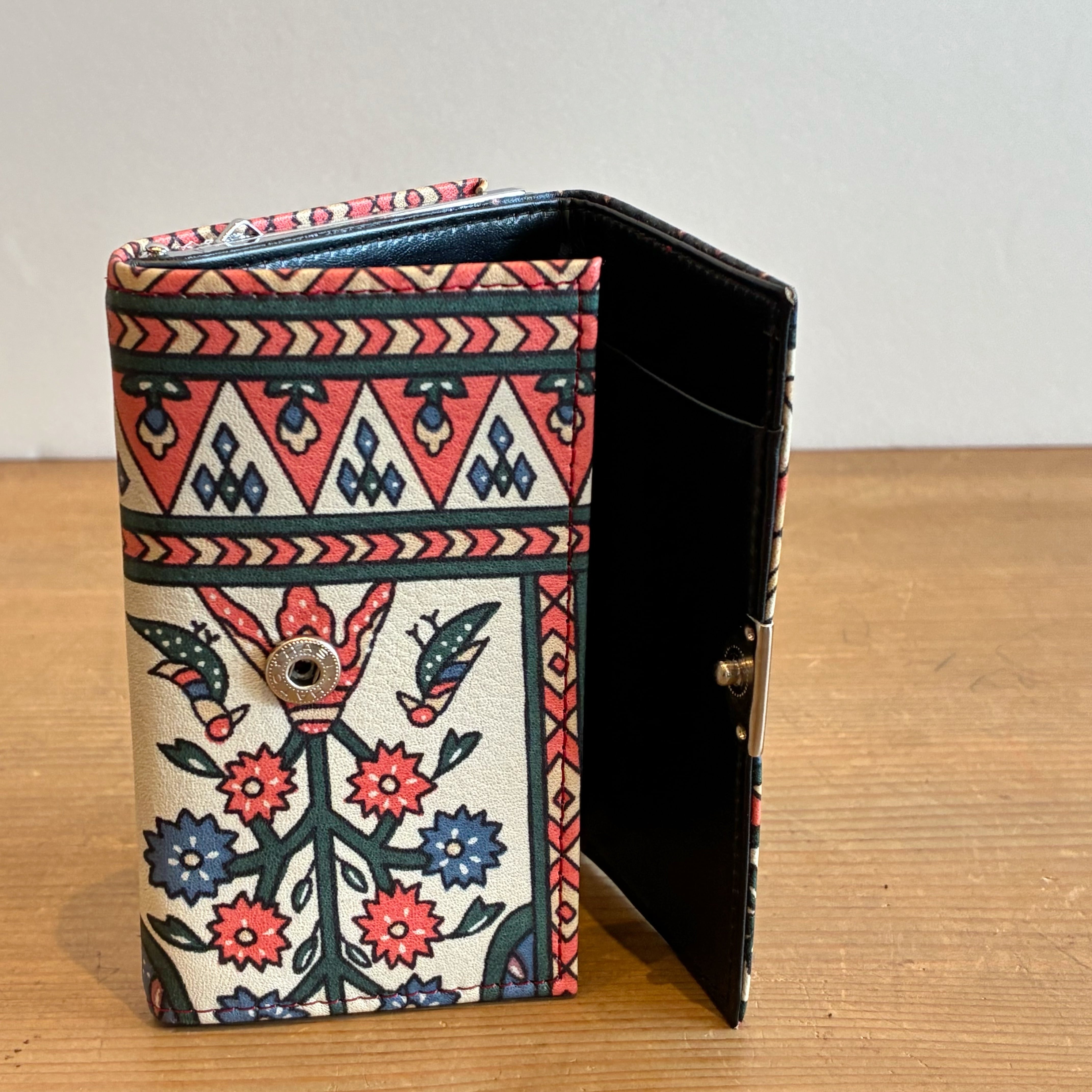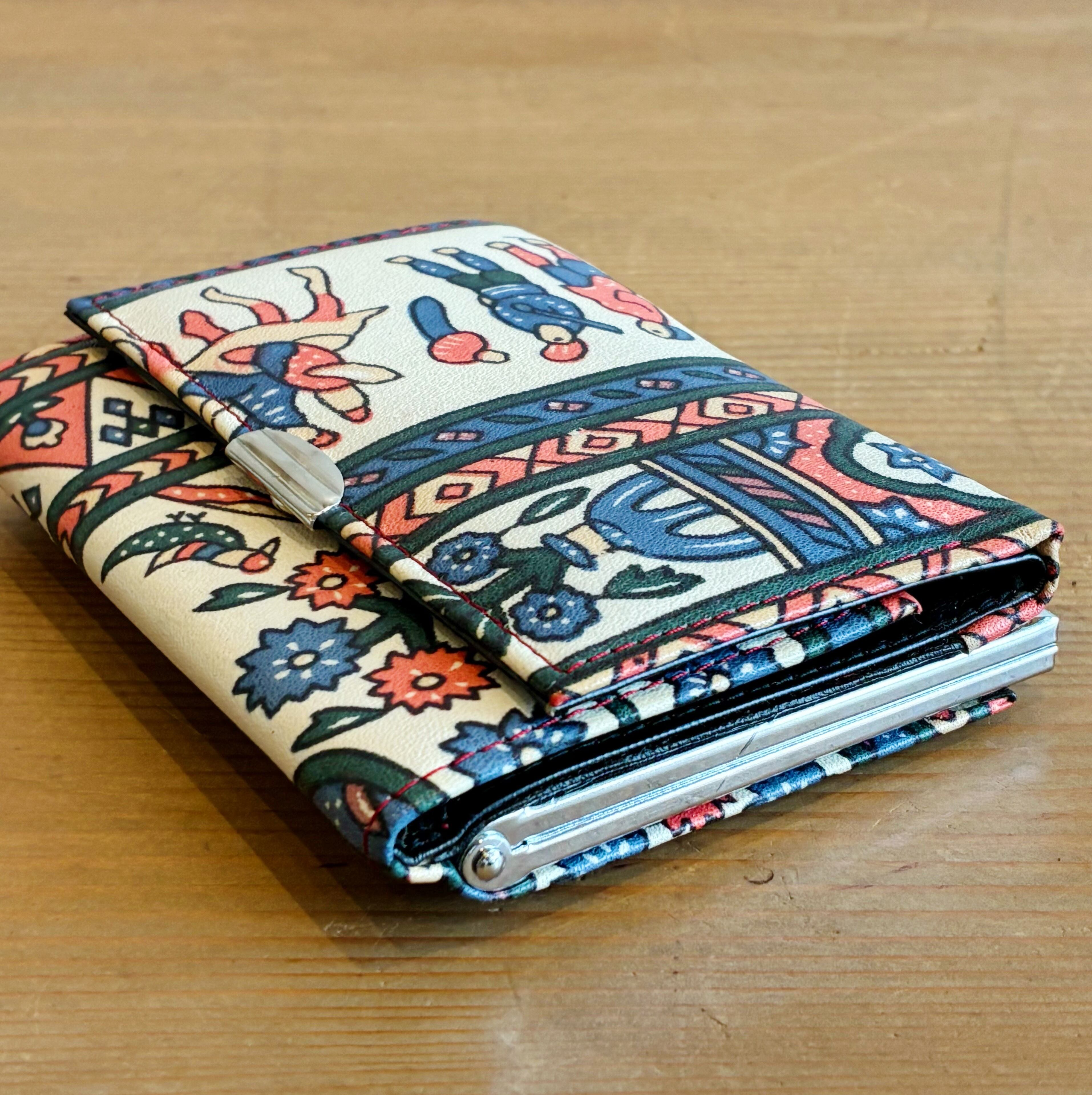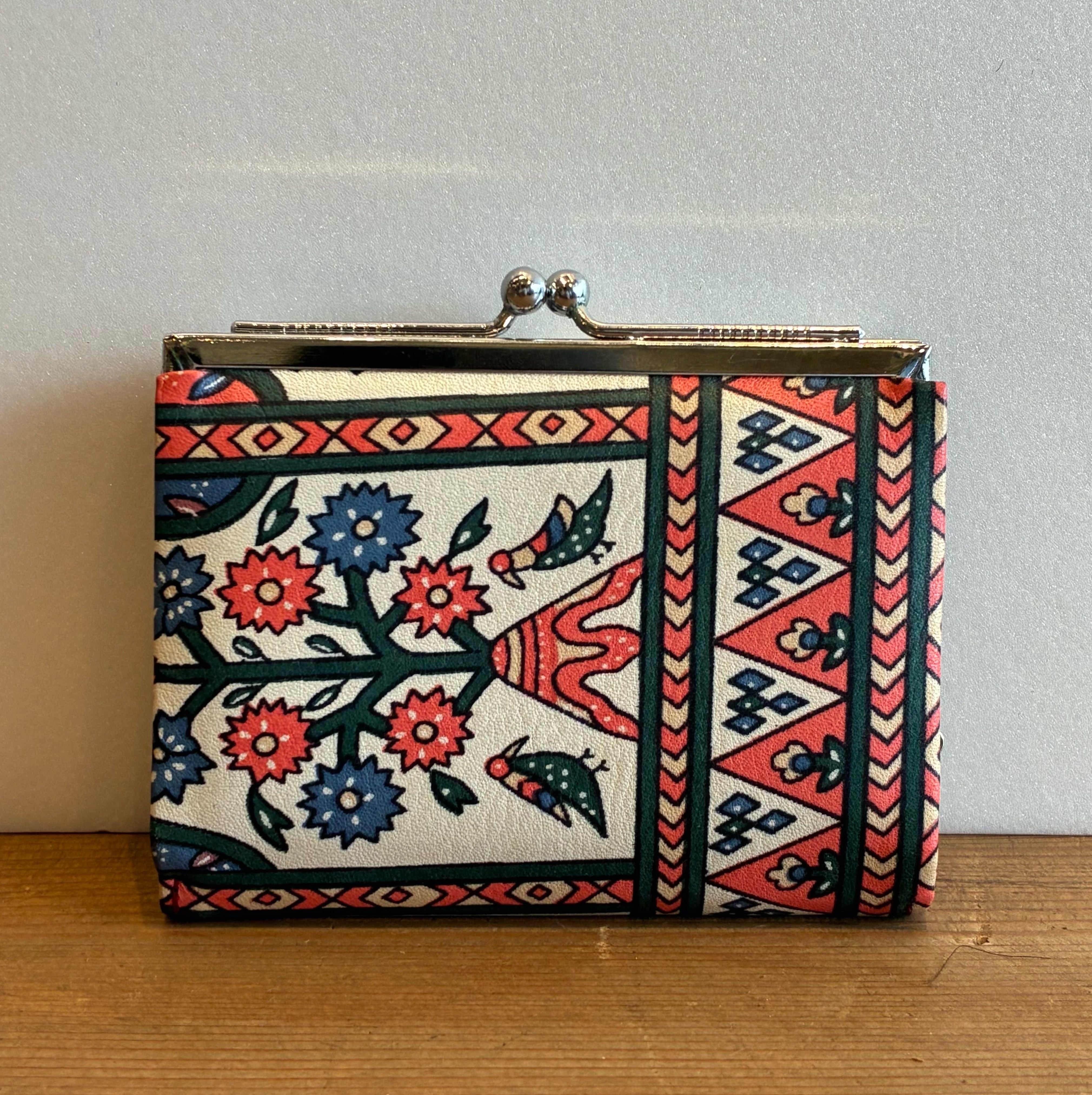 江戸時代、長崎に渡来した南蛮文化を学び、天草で作られた「天草更紗(さらさ)」模様の三つ折り財布。