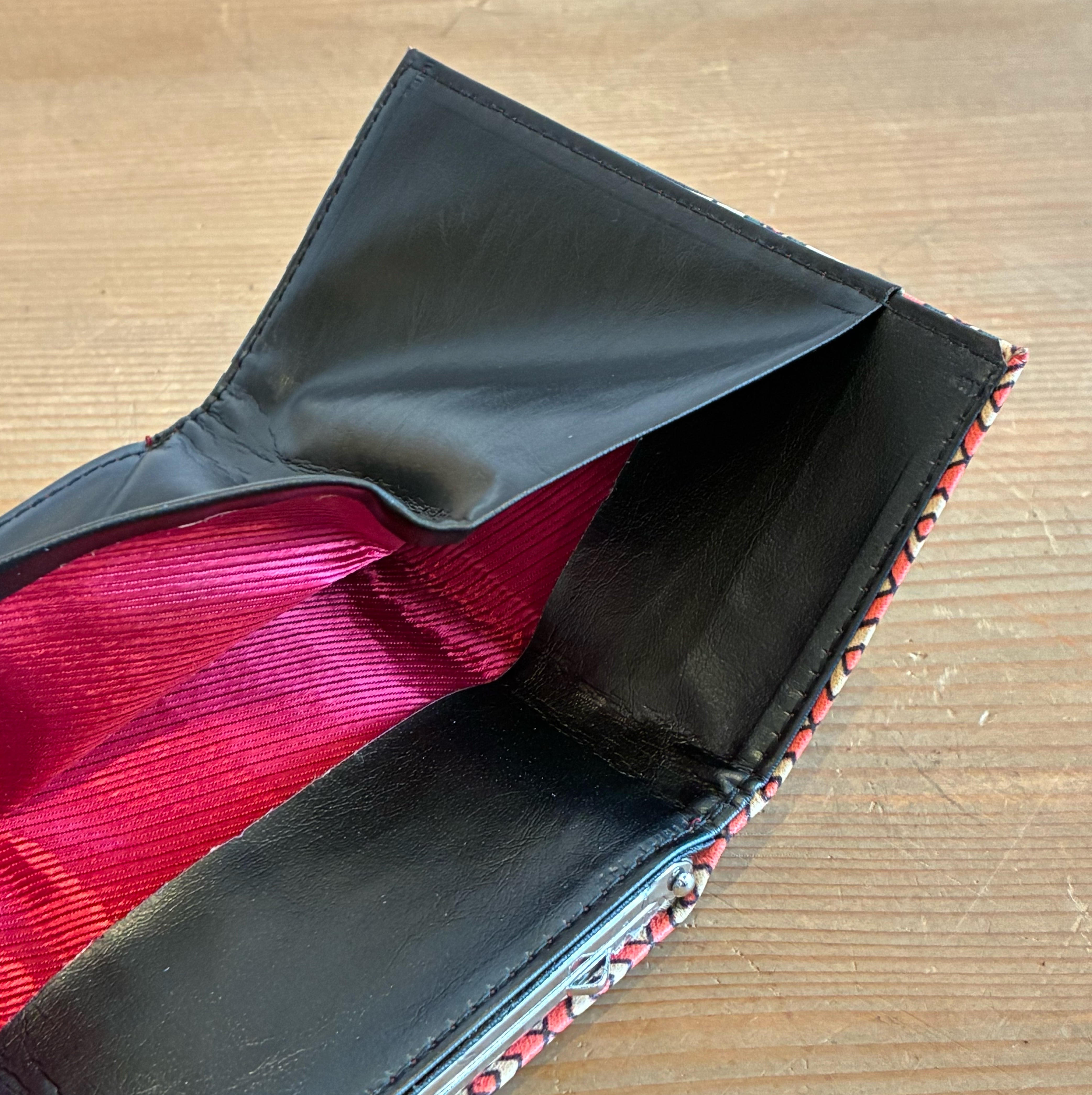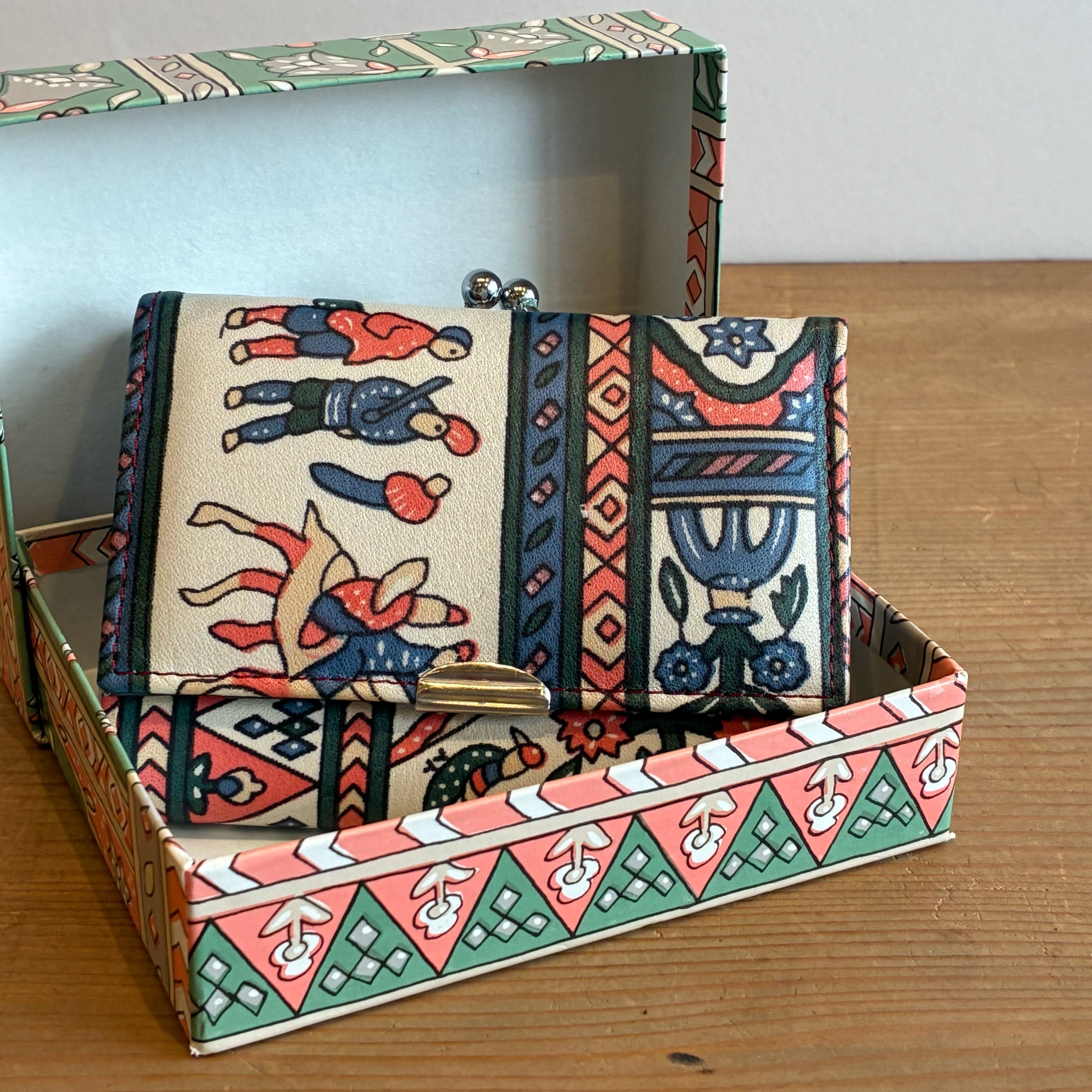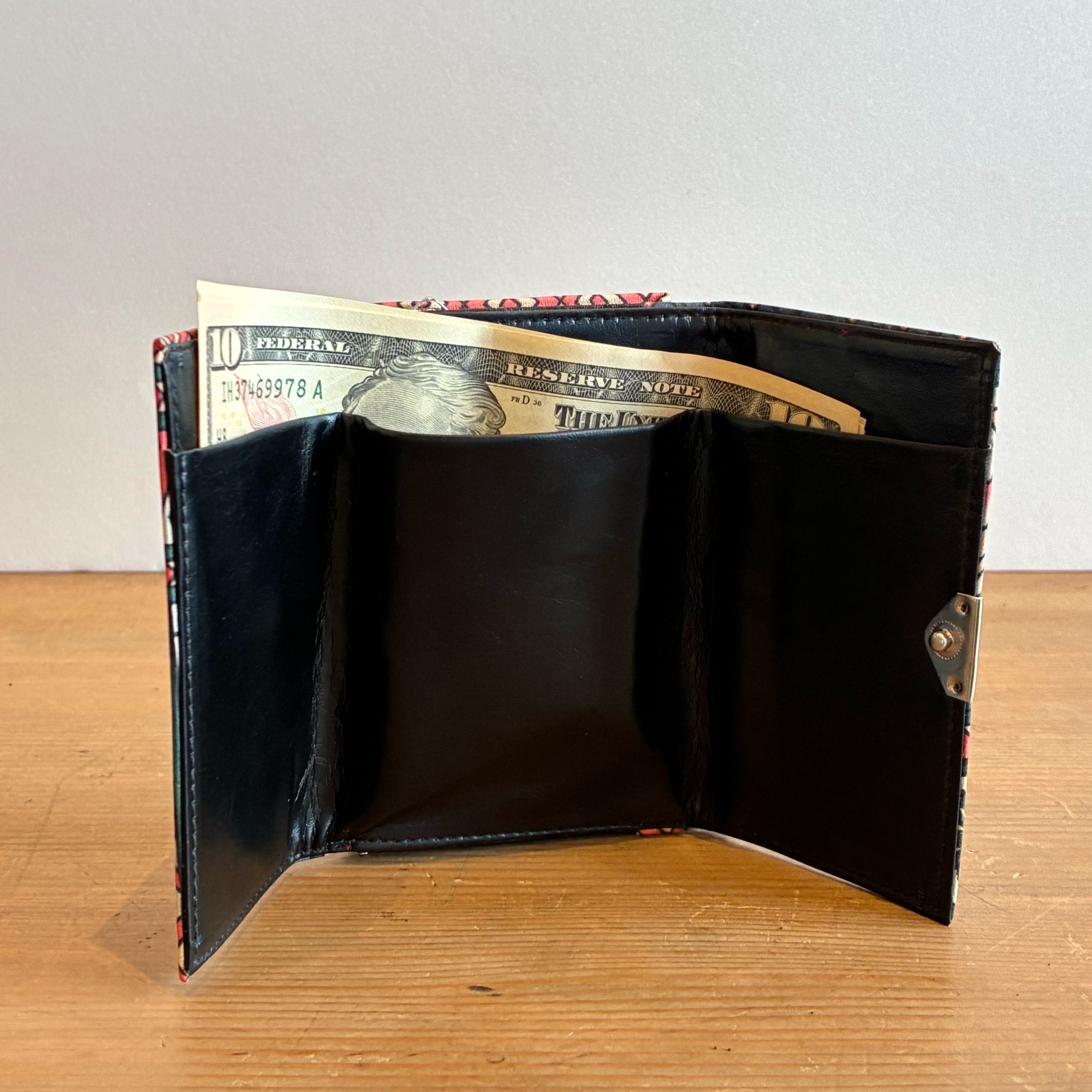 江戸時代、長崎に渡来した南蛮文化を学び、天草で作られた「天草更紗(さらさ)」模様の三つ折り財布。