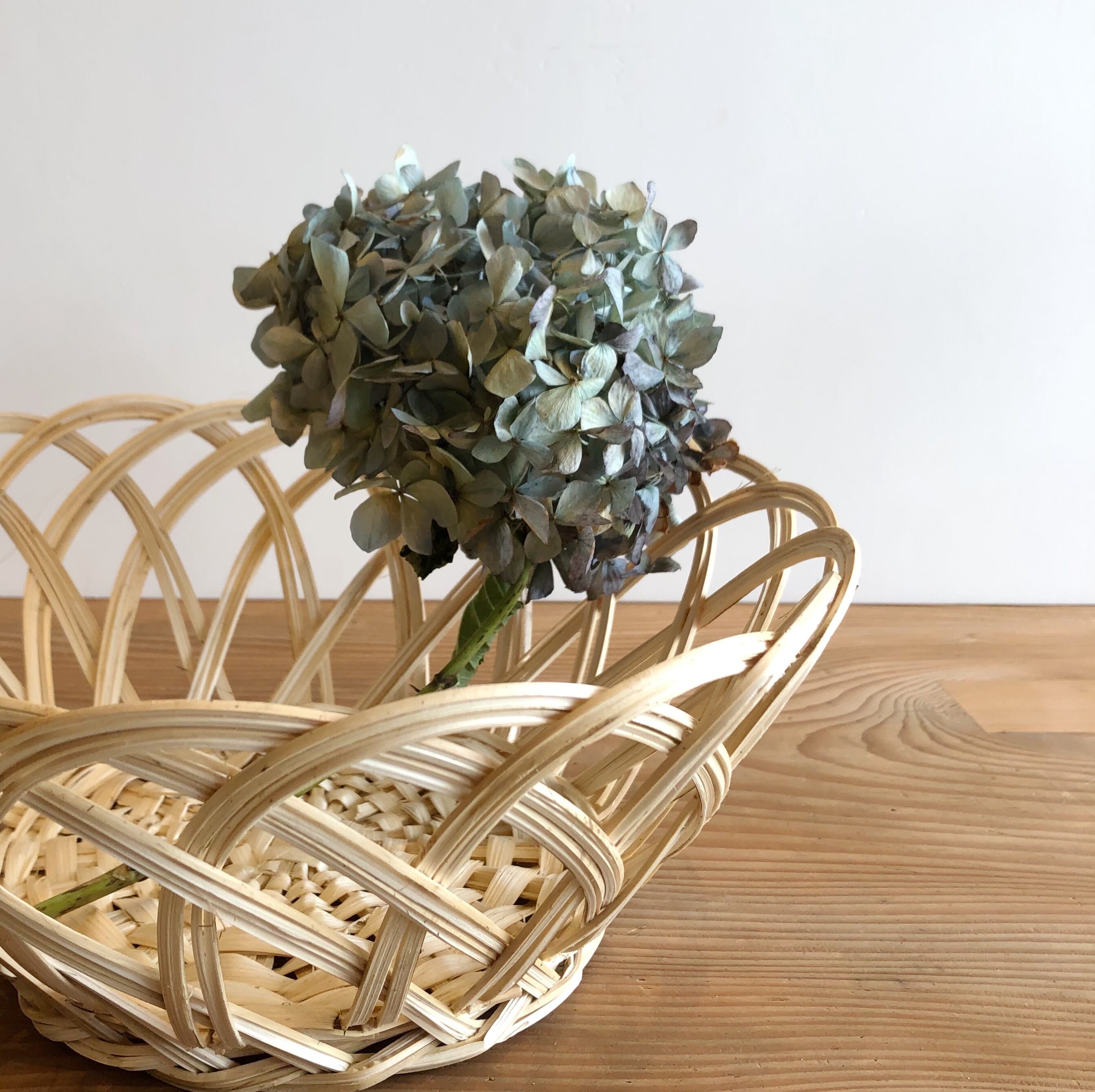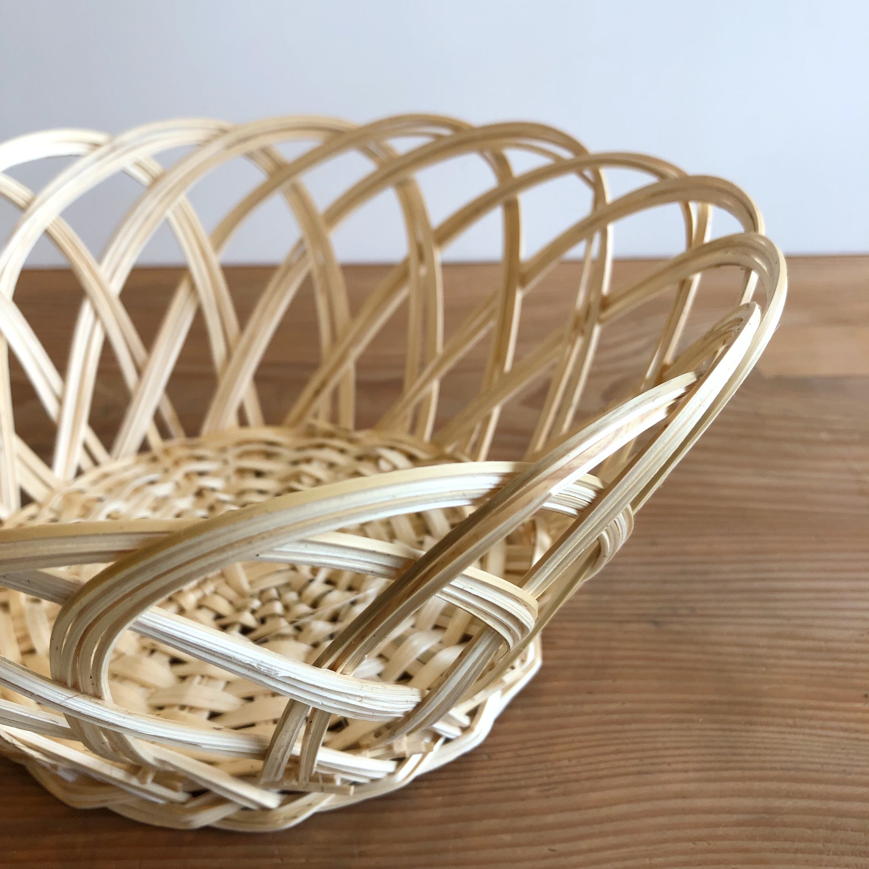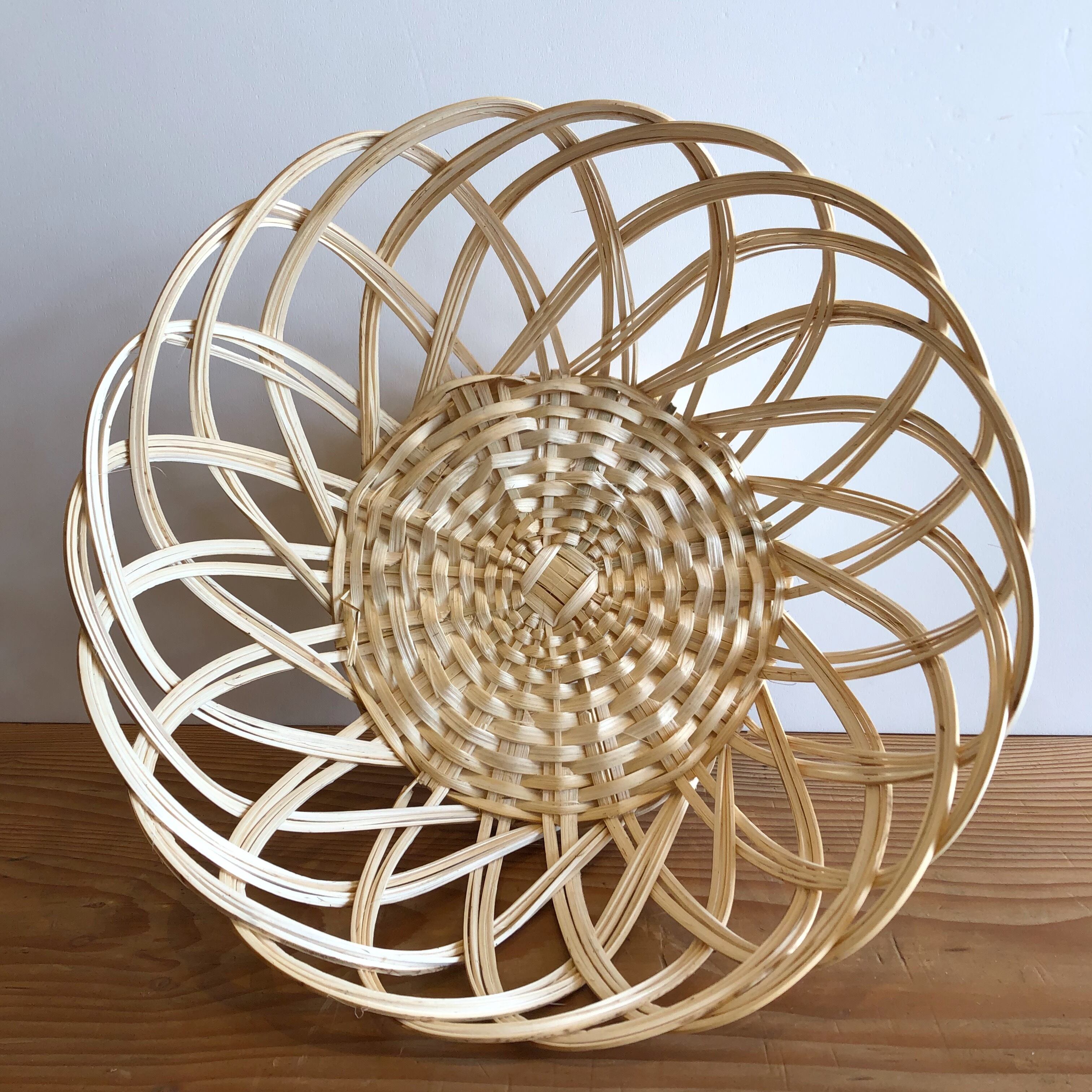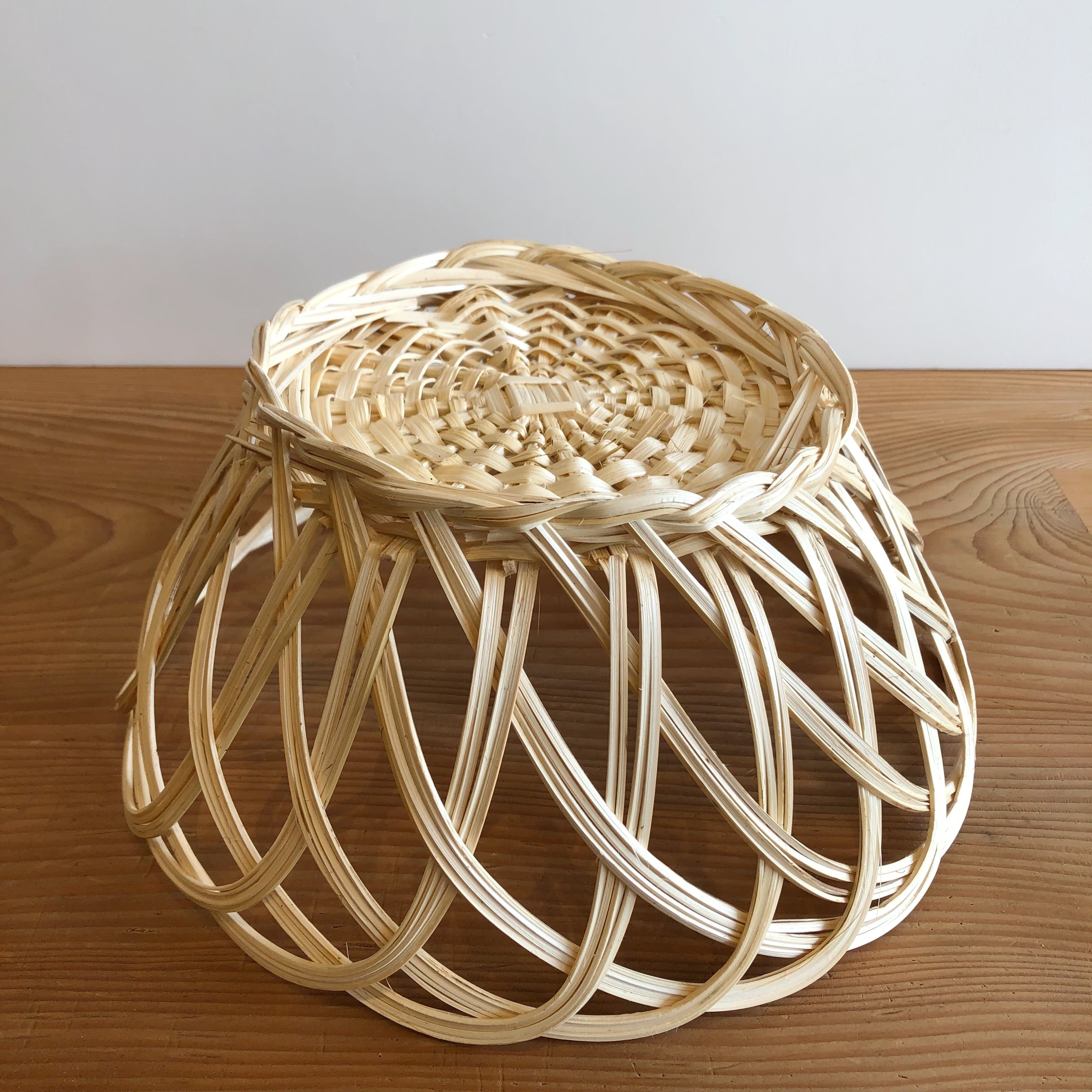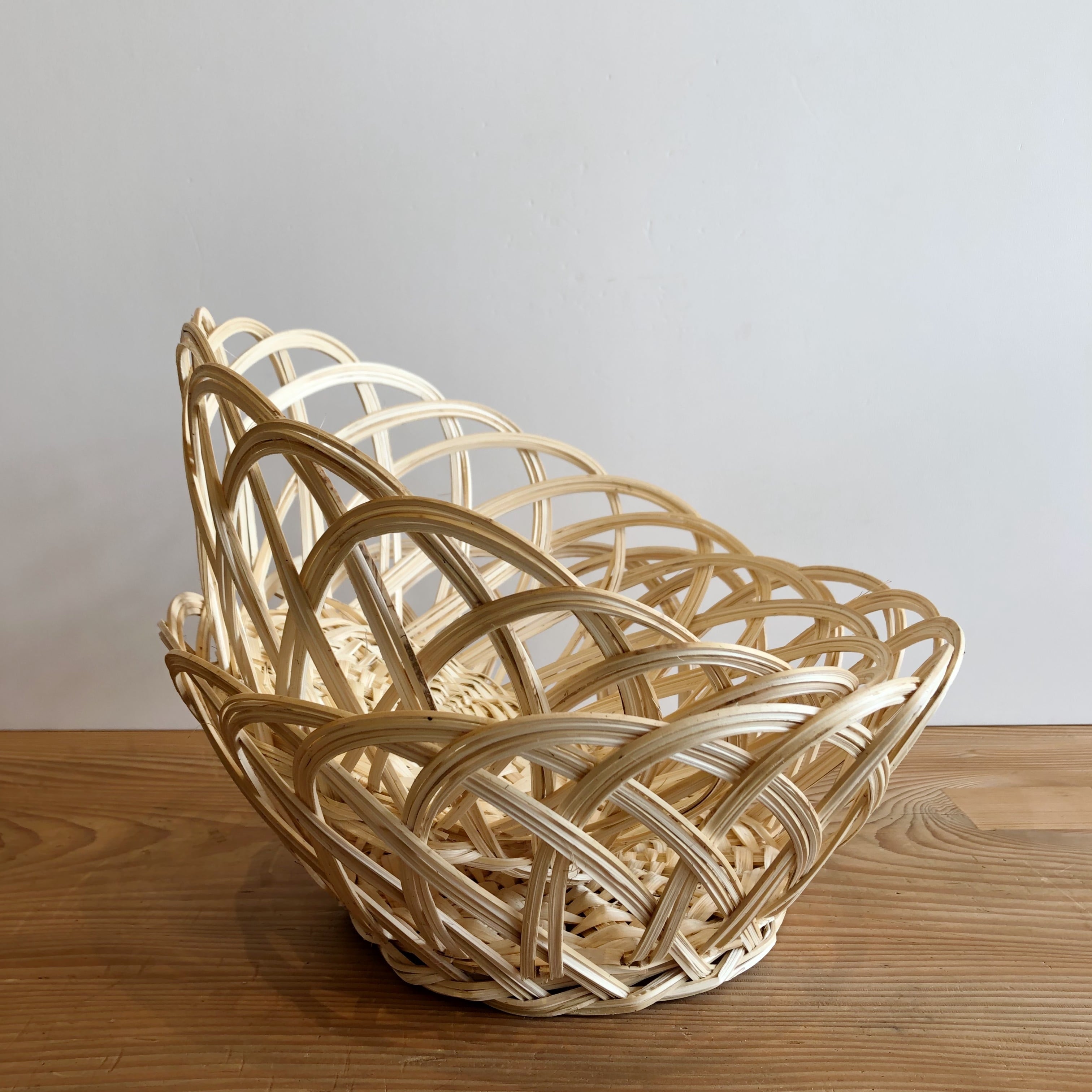 竹で編まれた透かし編みが美しいラウンドバスケット。