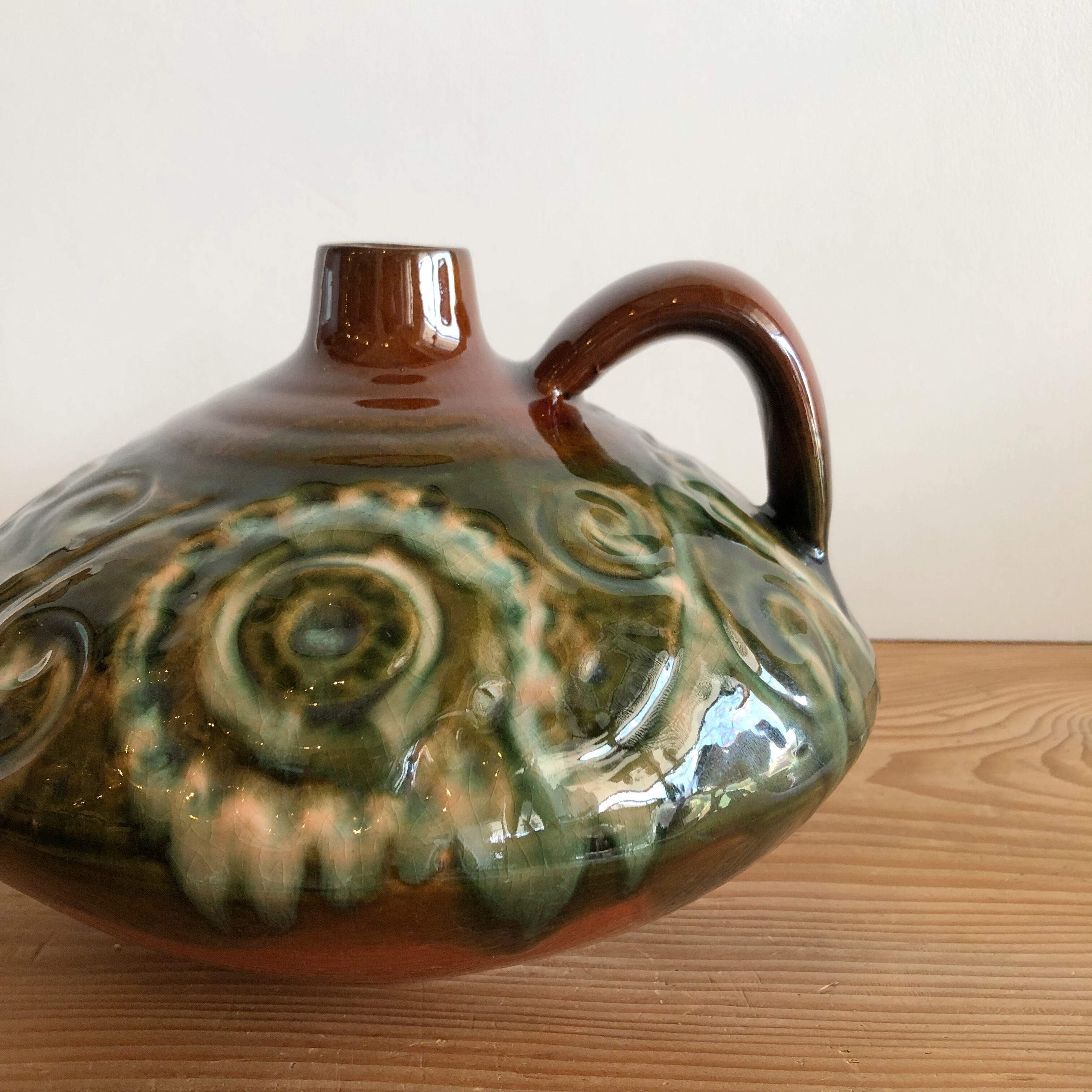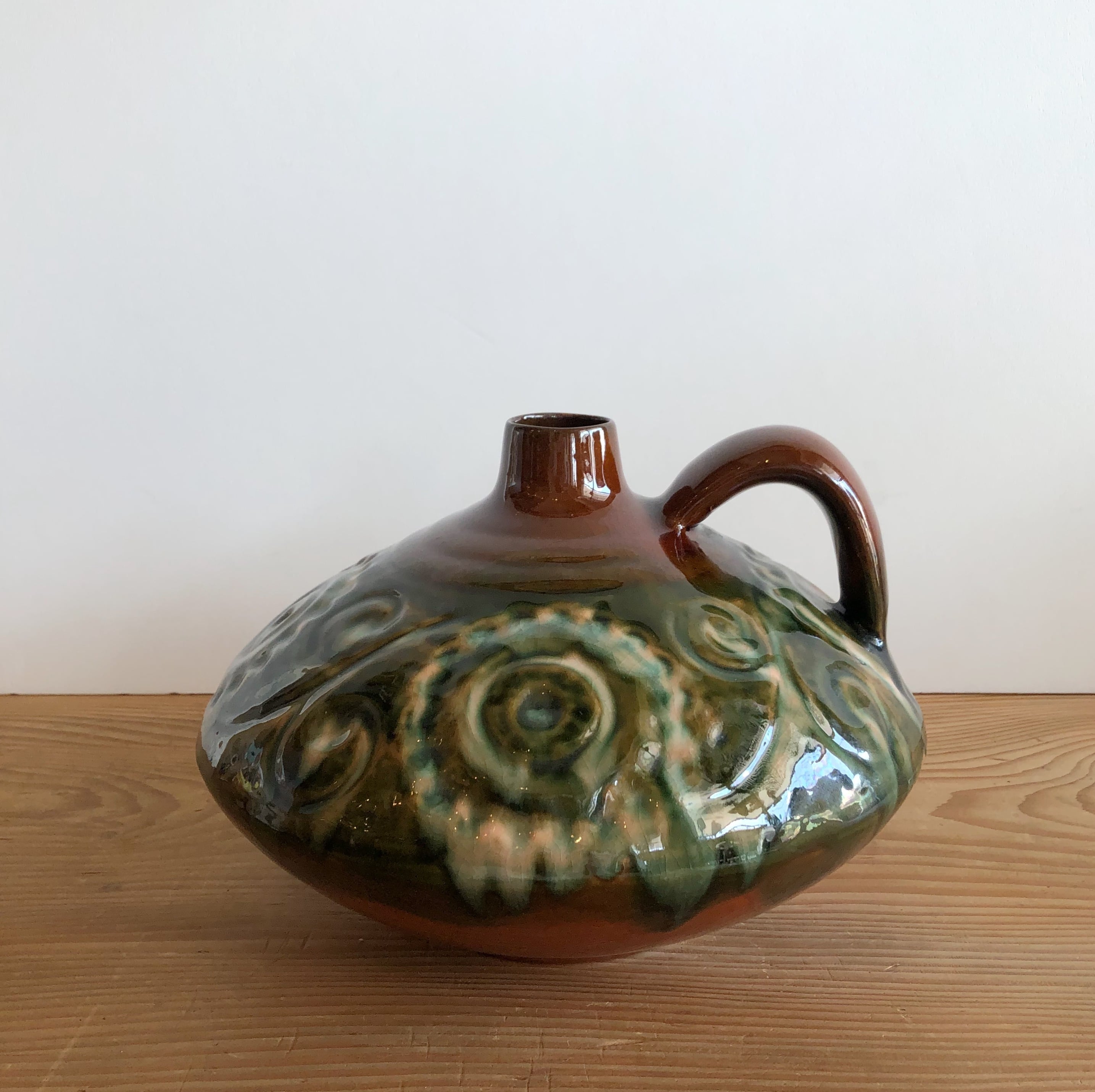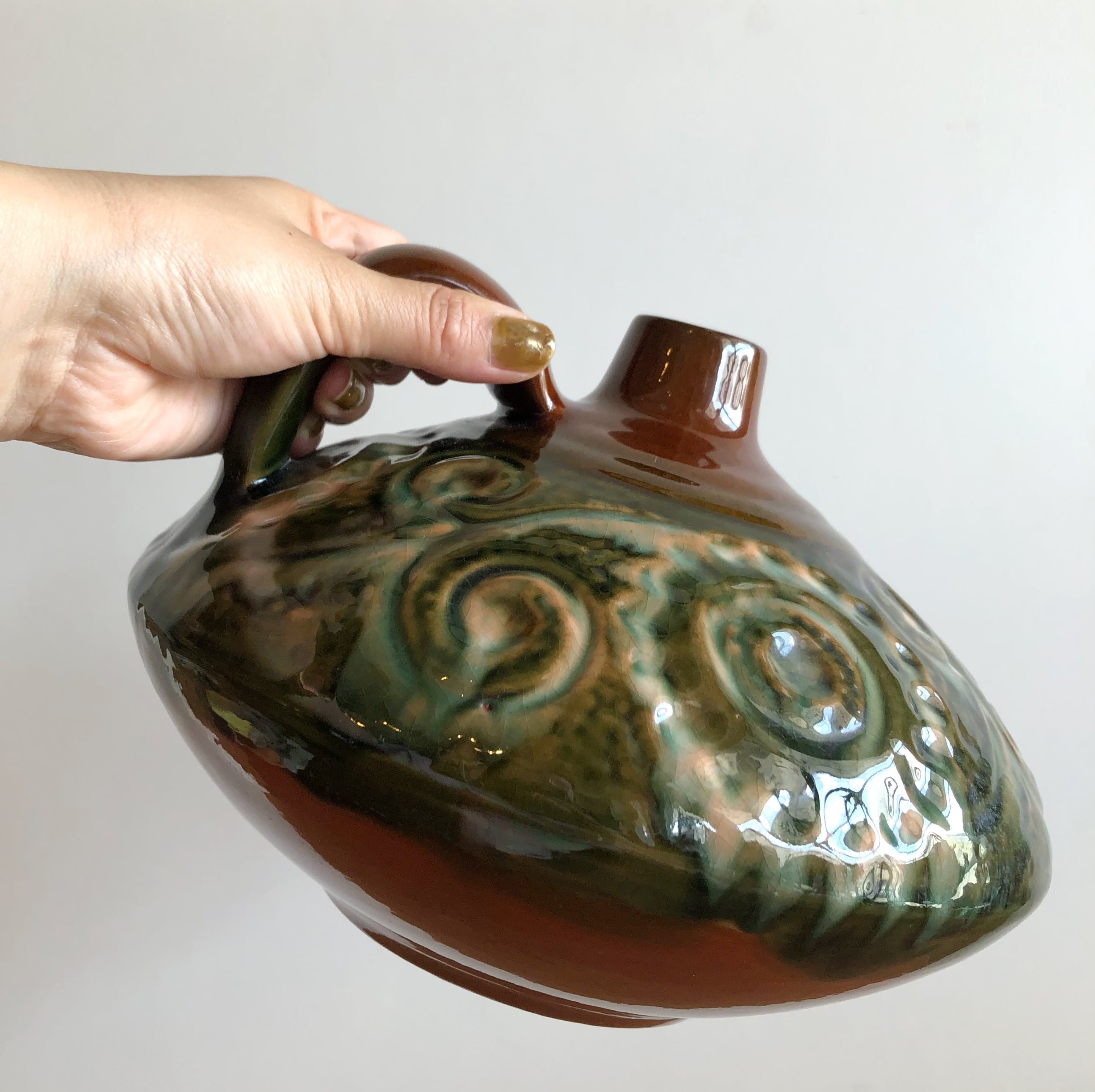 目を惹くフォルムと凹凸ある渦巻模様、ブラウンやグリーンがグラデーションになった美しい色合いが素敵な逸品です。