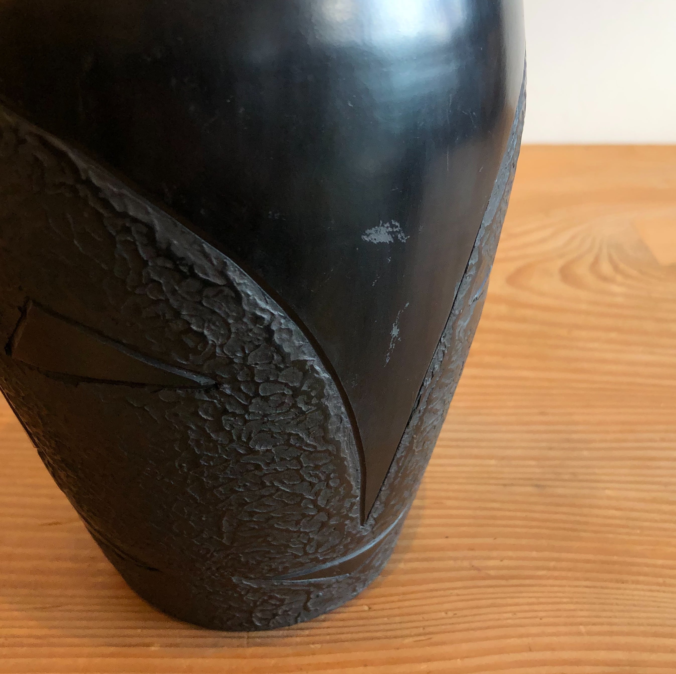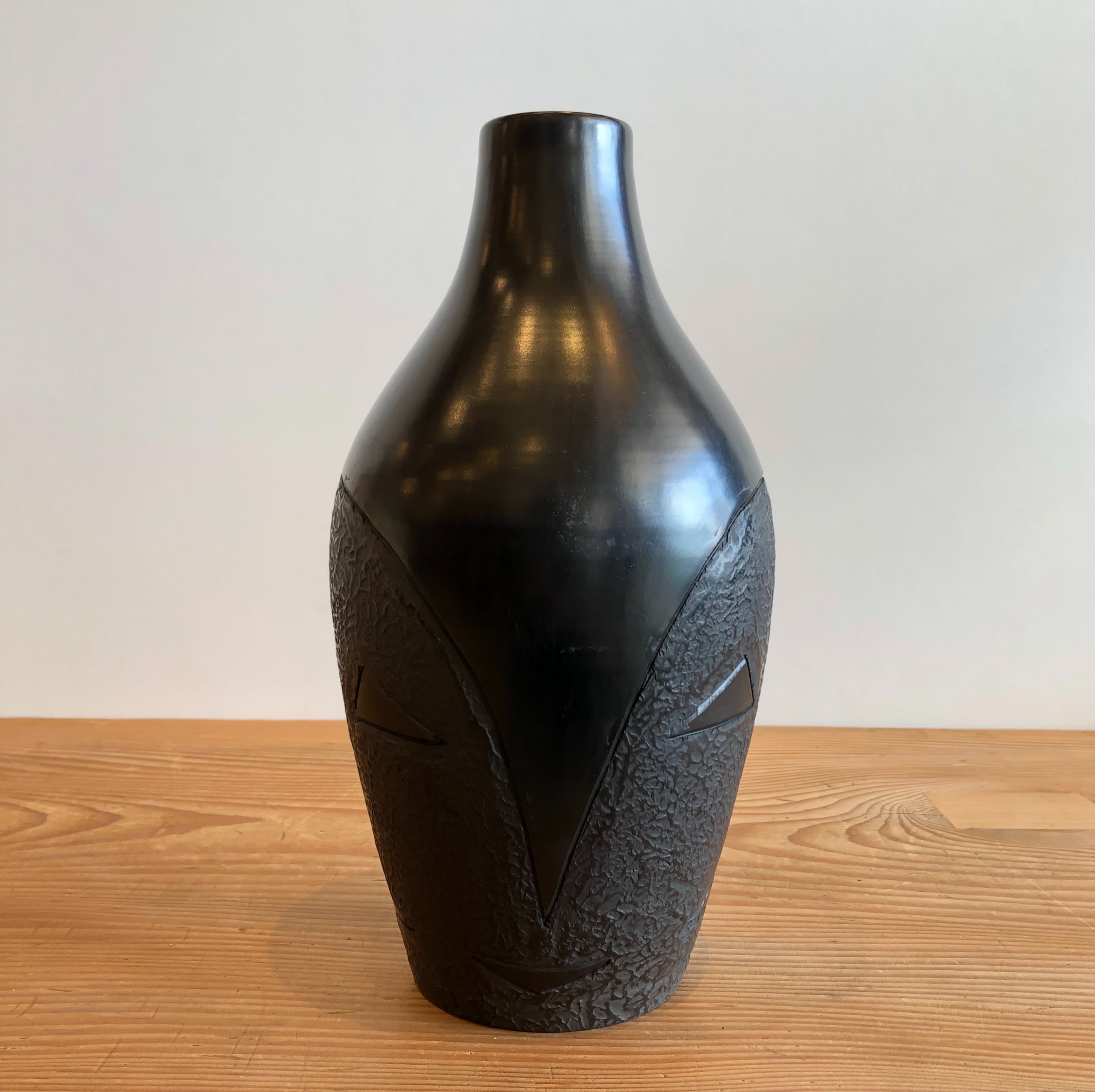 黒一色が特徴のマルジネア陶器の色は、着色されたわけではなく、焼く時のススで黒くなる、めずらしい技術で作られています。
