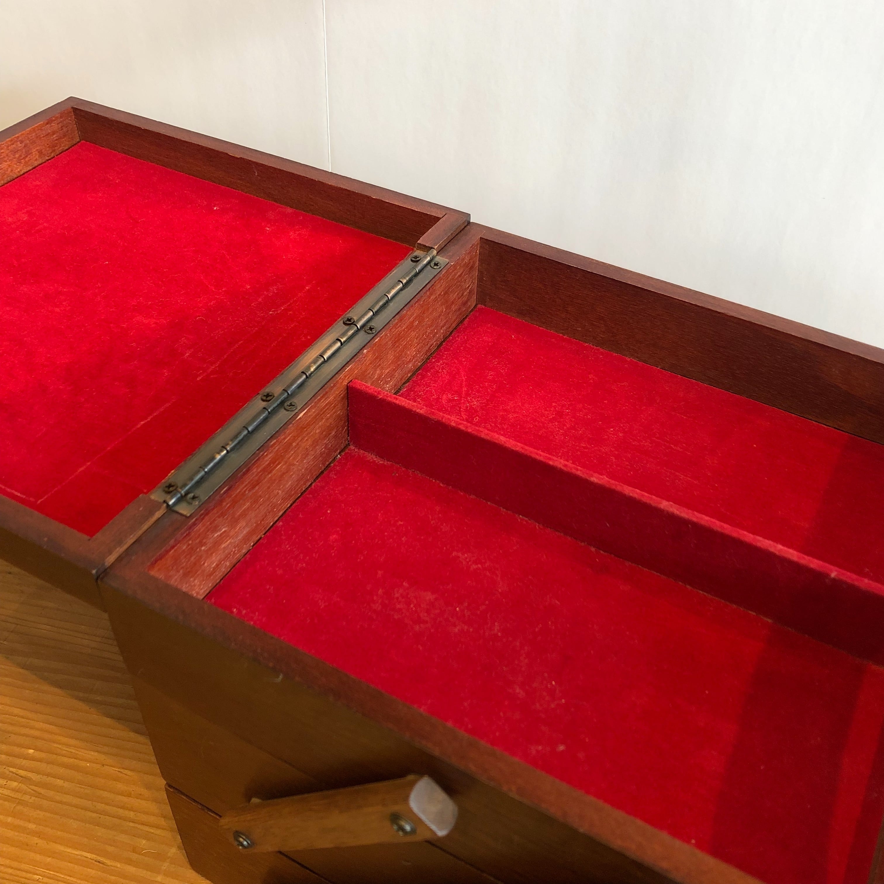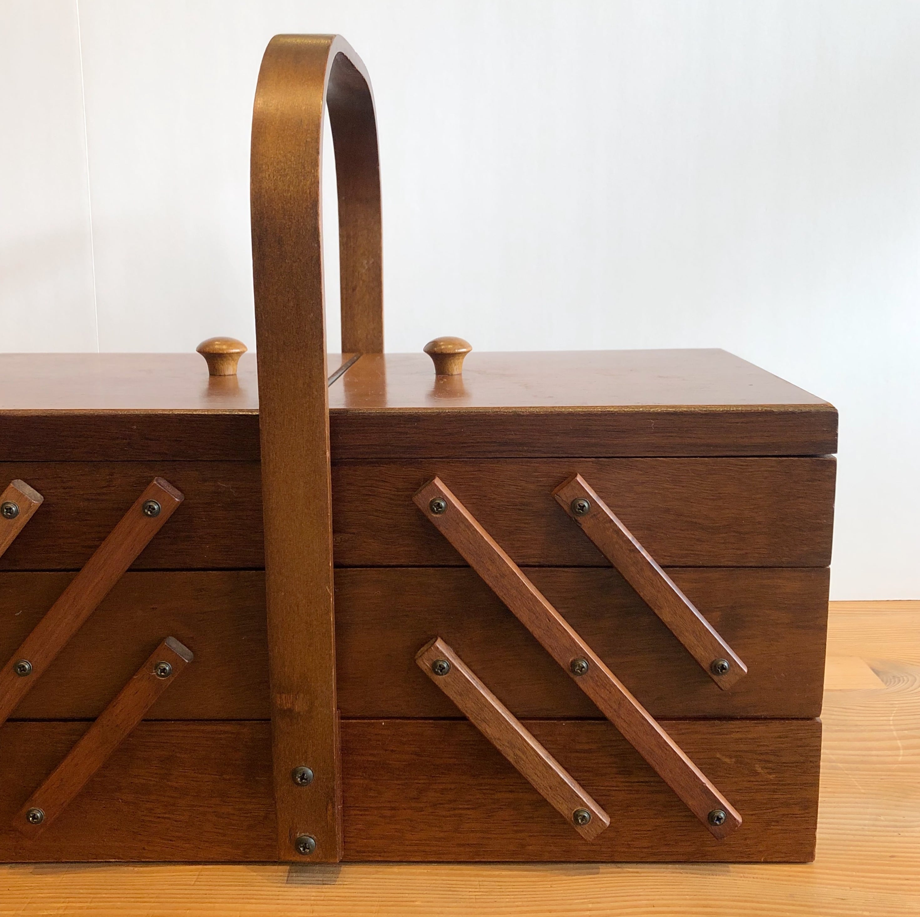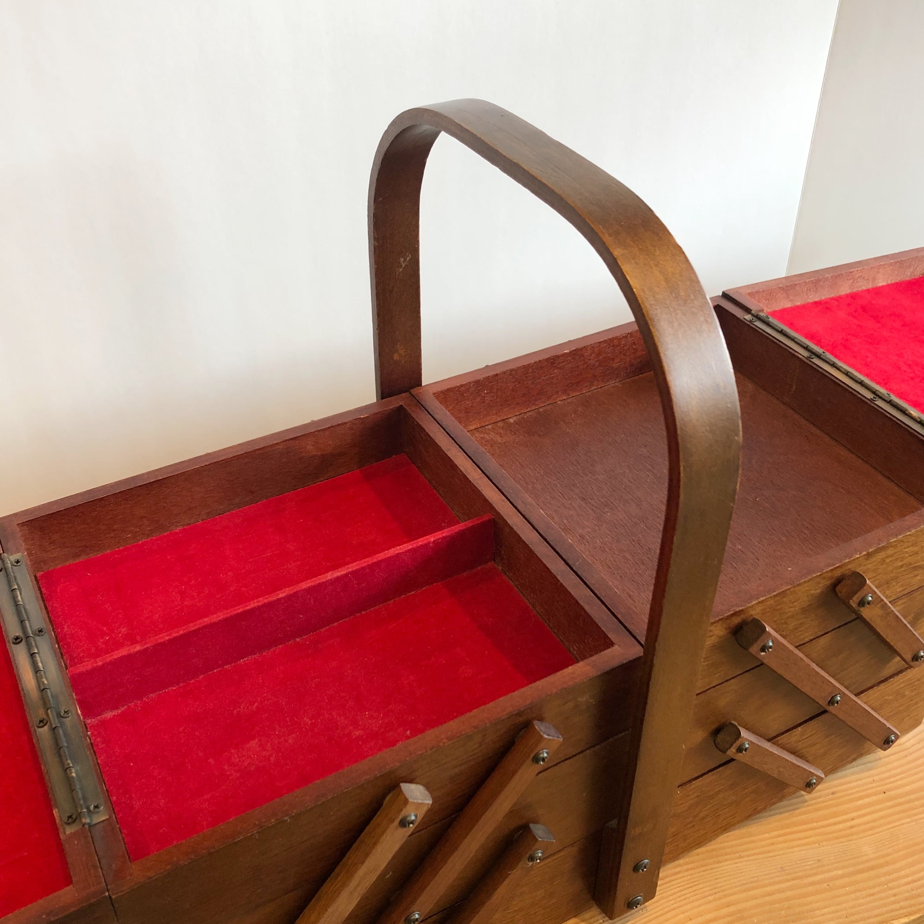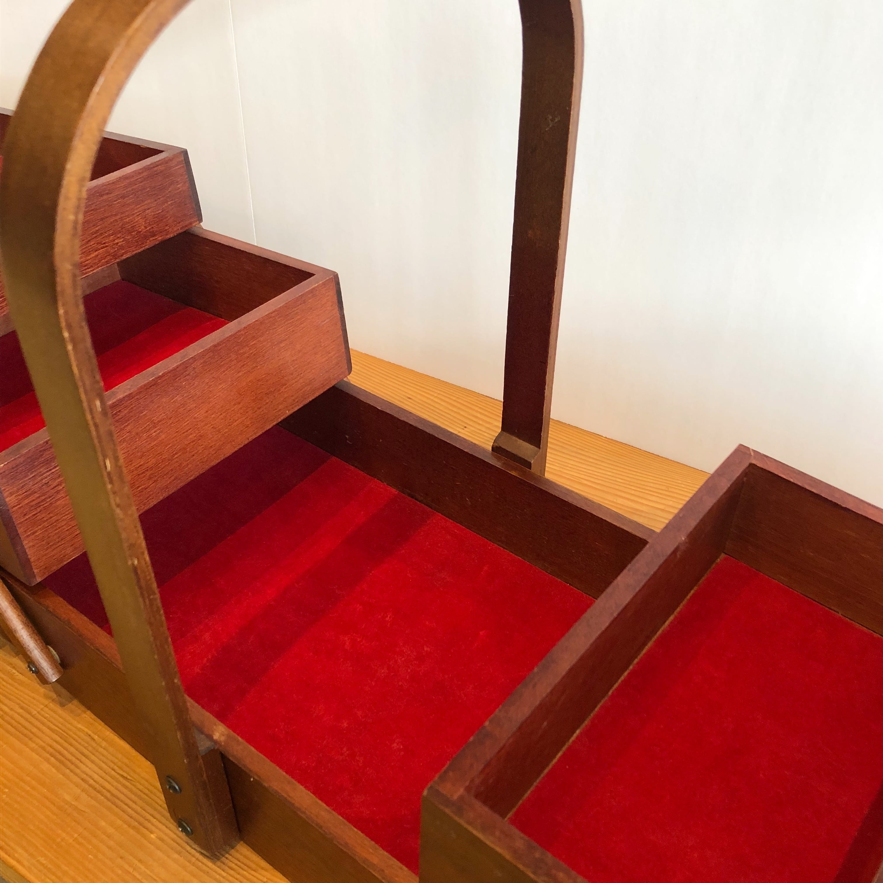 アーチした取っ手など、デザインも美しく、見える場所に置いておきたくなるお裁縫箱です。