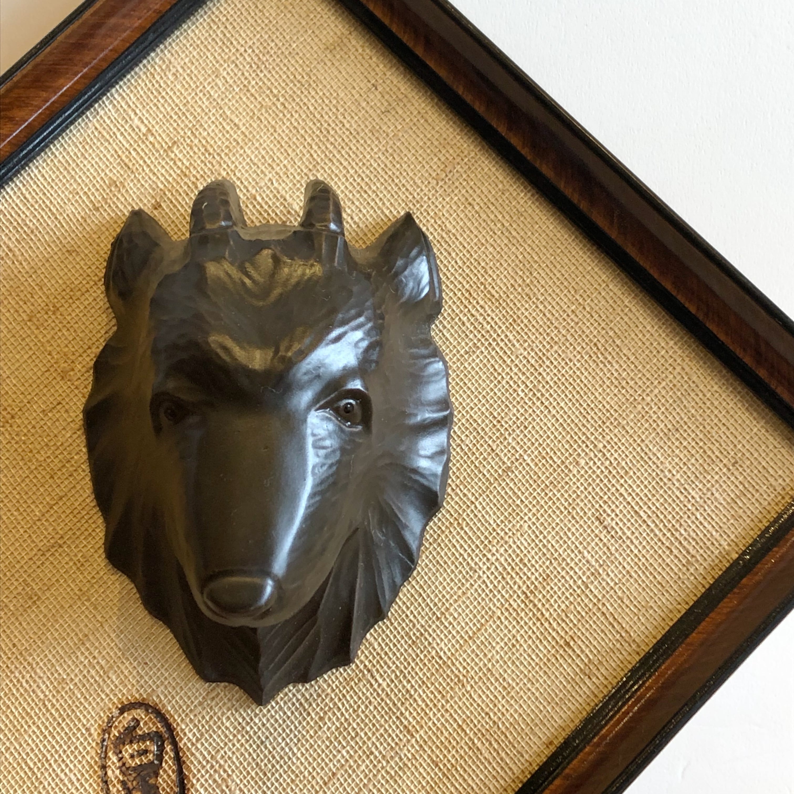 日本の特別天然記念物、ニホンカモシカの木彫りの壁飾り。