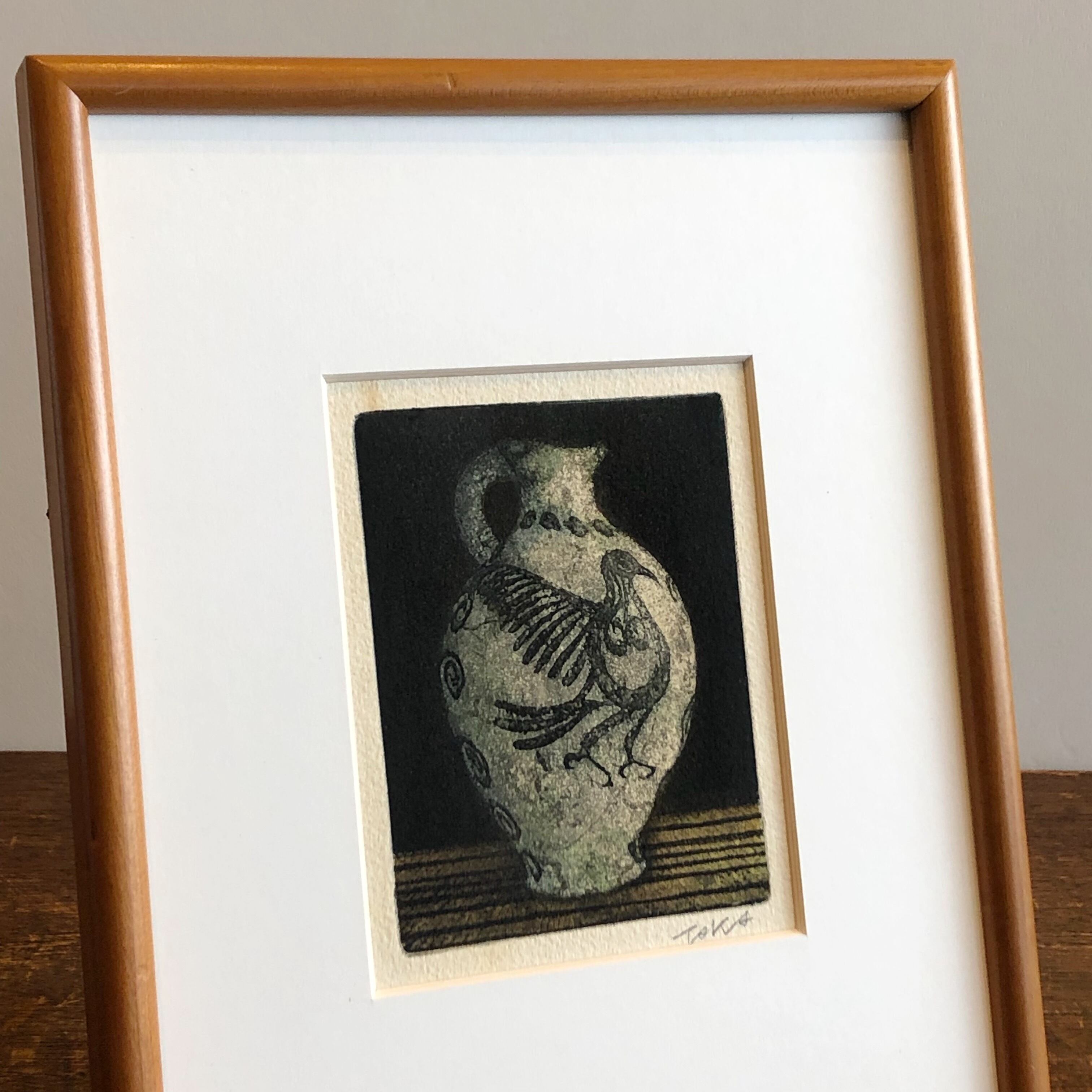 古代ギリシャを感じさせるモチーフの水差しが落ち着いた色使いで描かれた、とても雰囲気ある素敵な作品です。