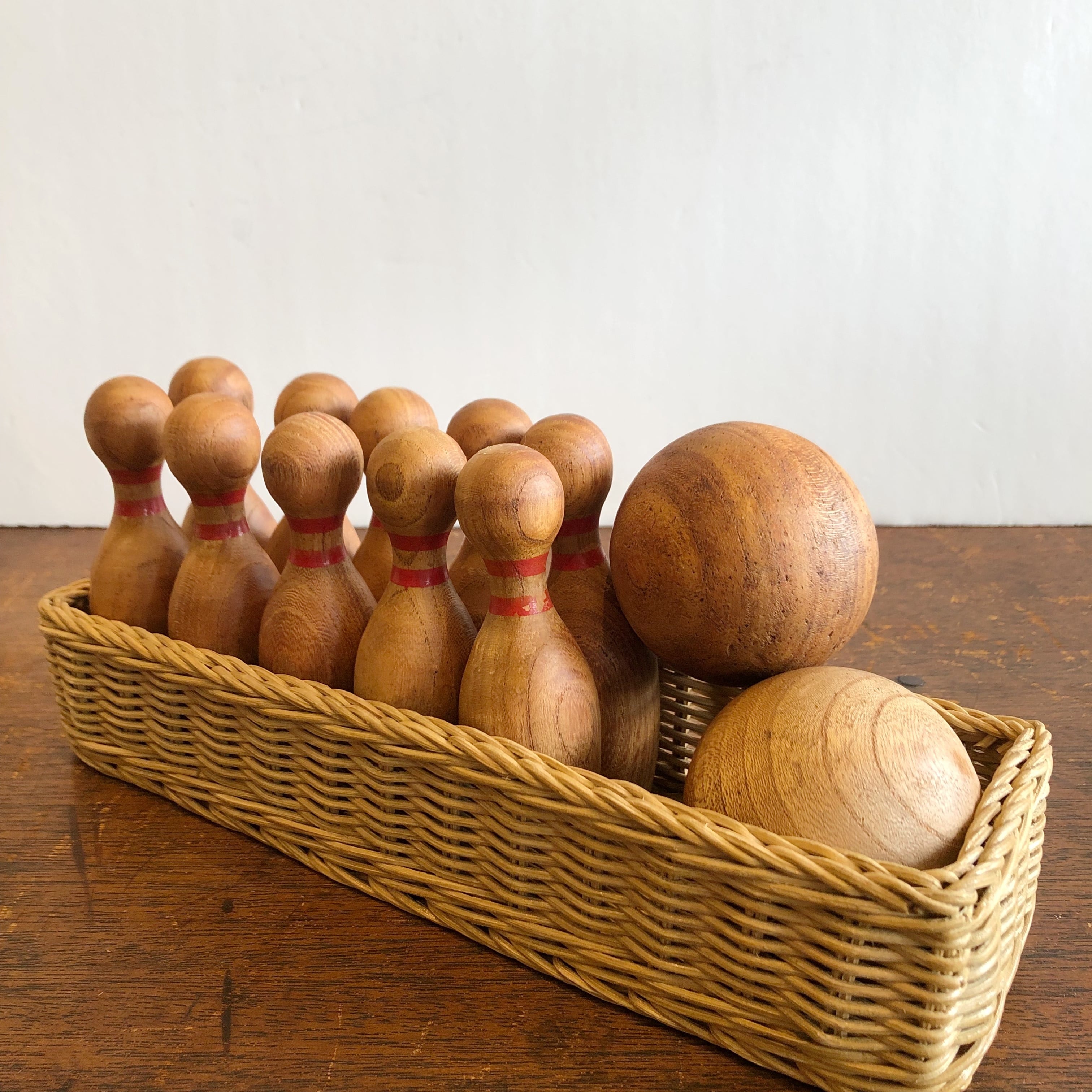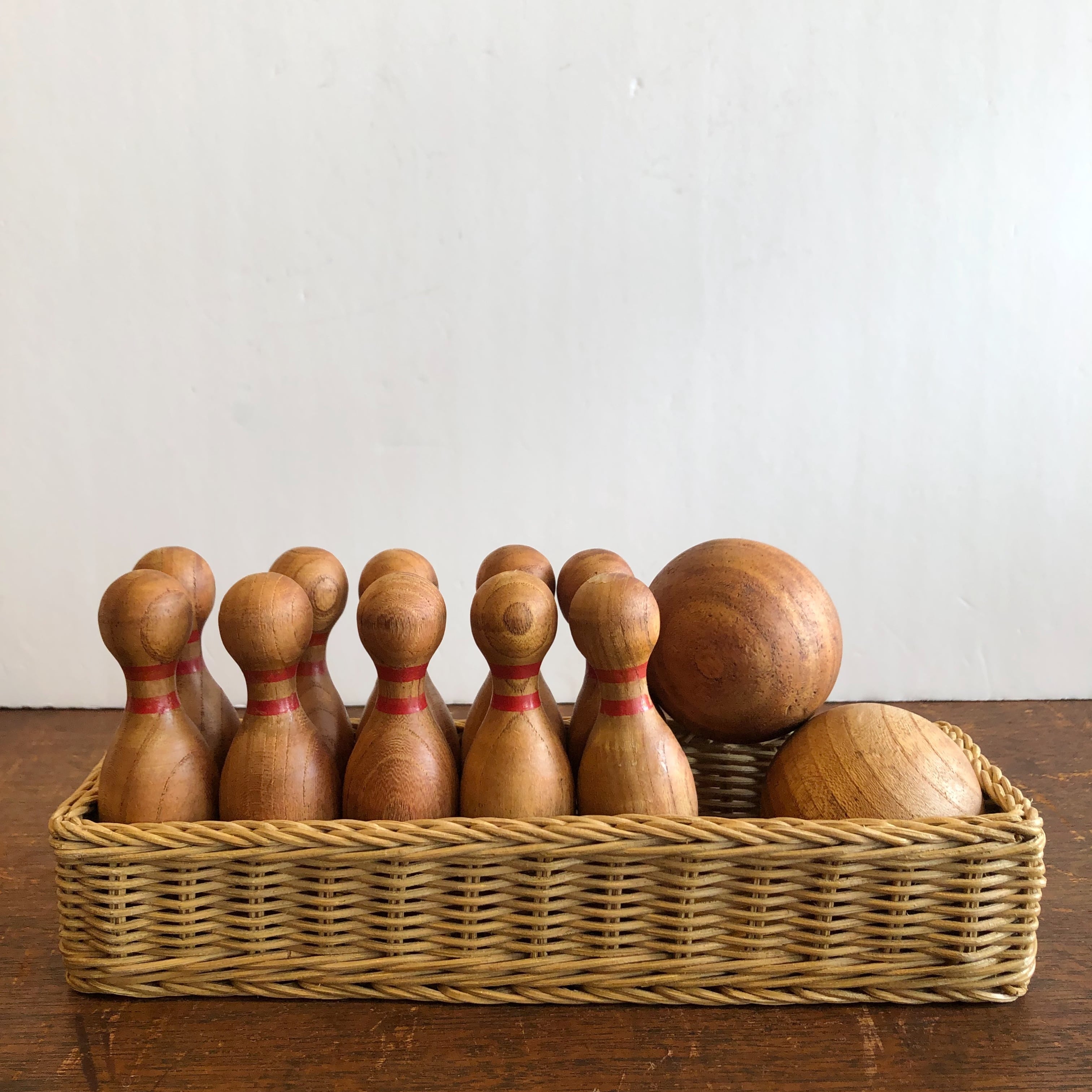 セット内容:ピン10本 ボール2個 ラタンかご
