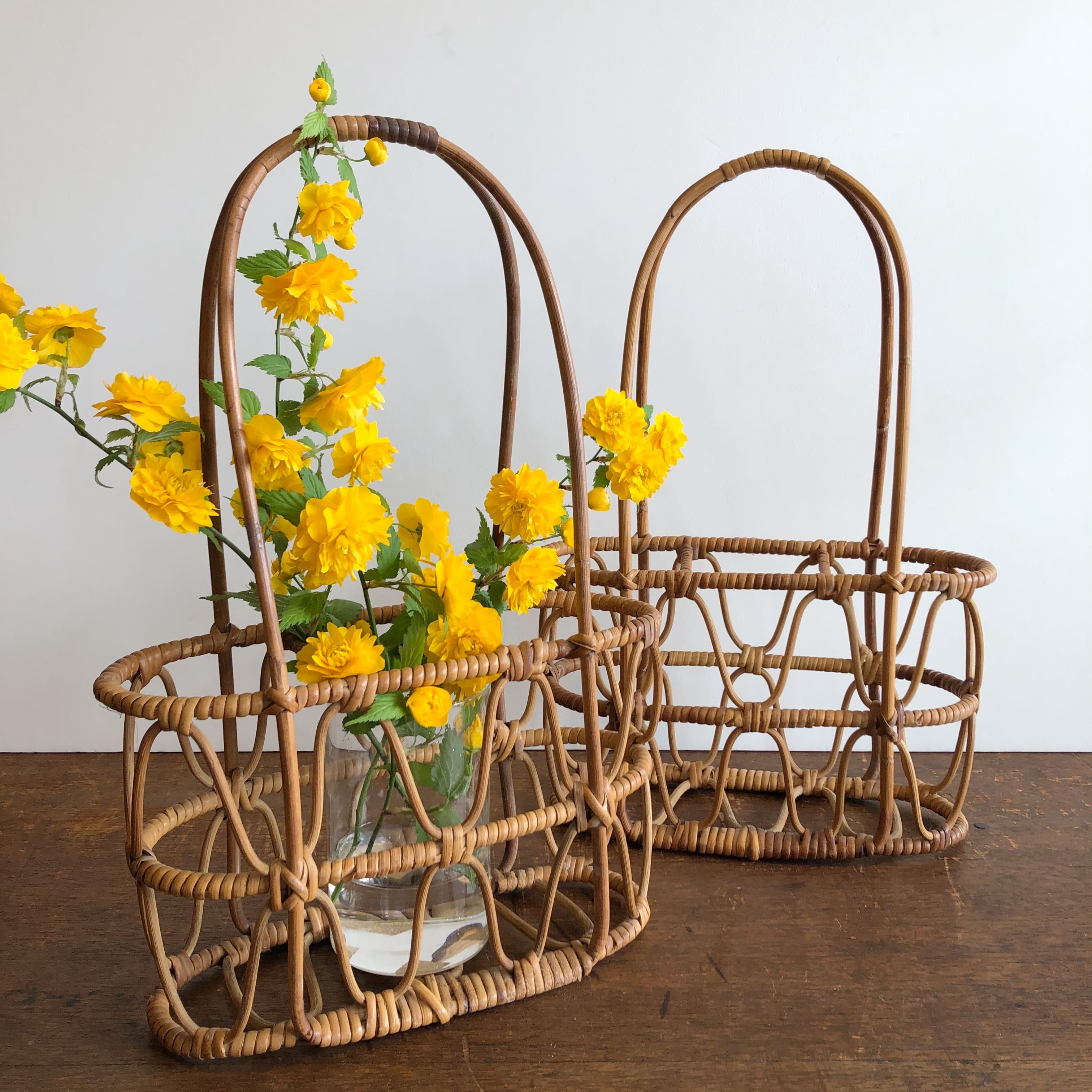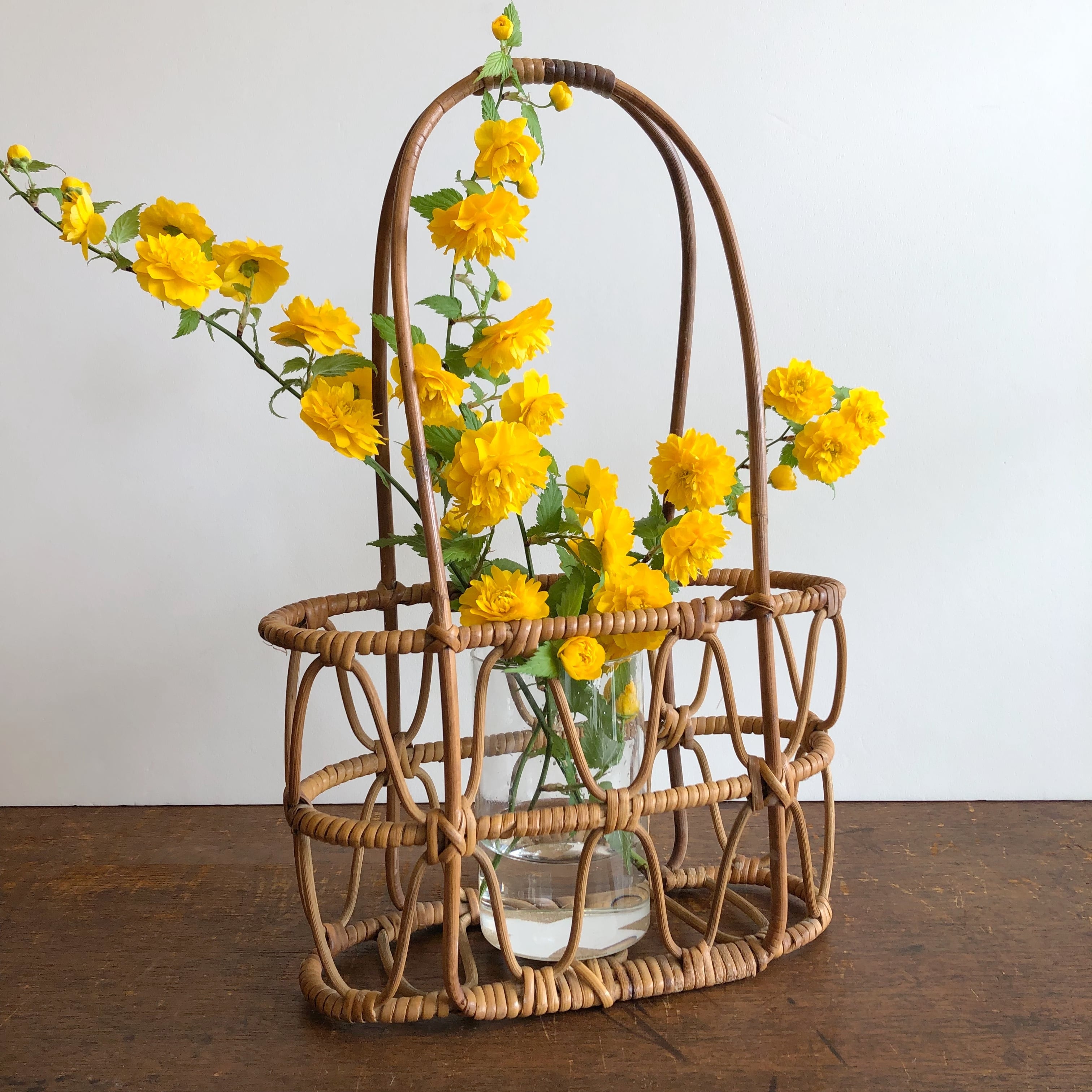 今ではなかなか使う機会も少ないものですが、花器を入れて花籠として使うとかごの編み目が美しいのでよく映えます。奥行きも浅く、壁にも飾りやすい形をしています。