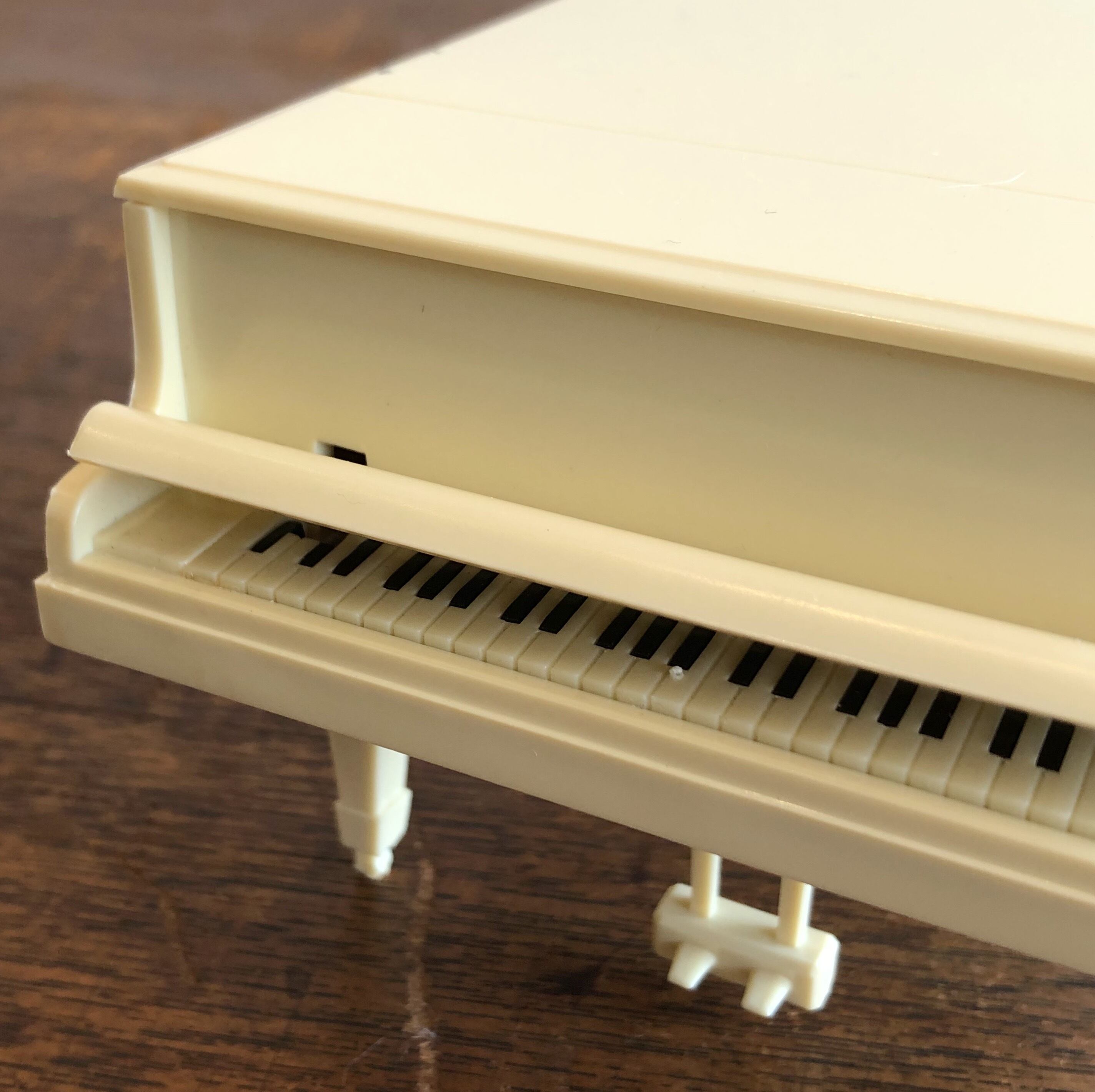 白いグランドピアノ型のオルゴール。