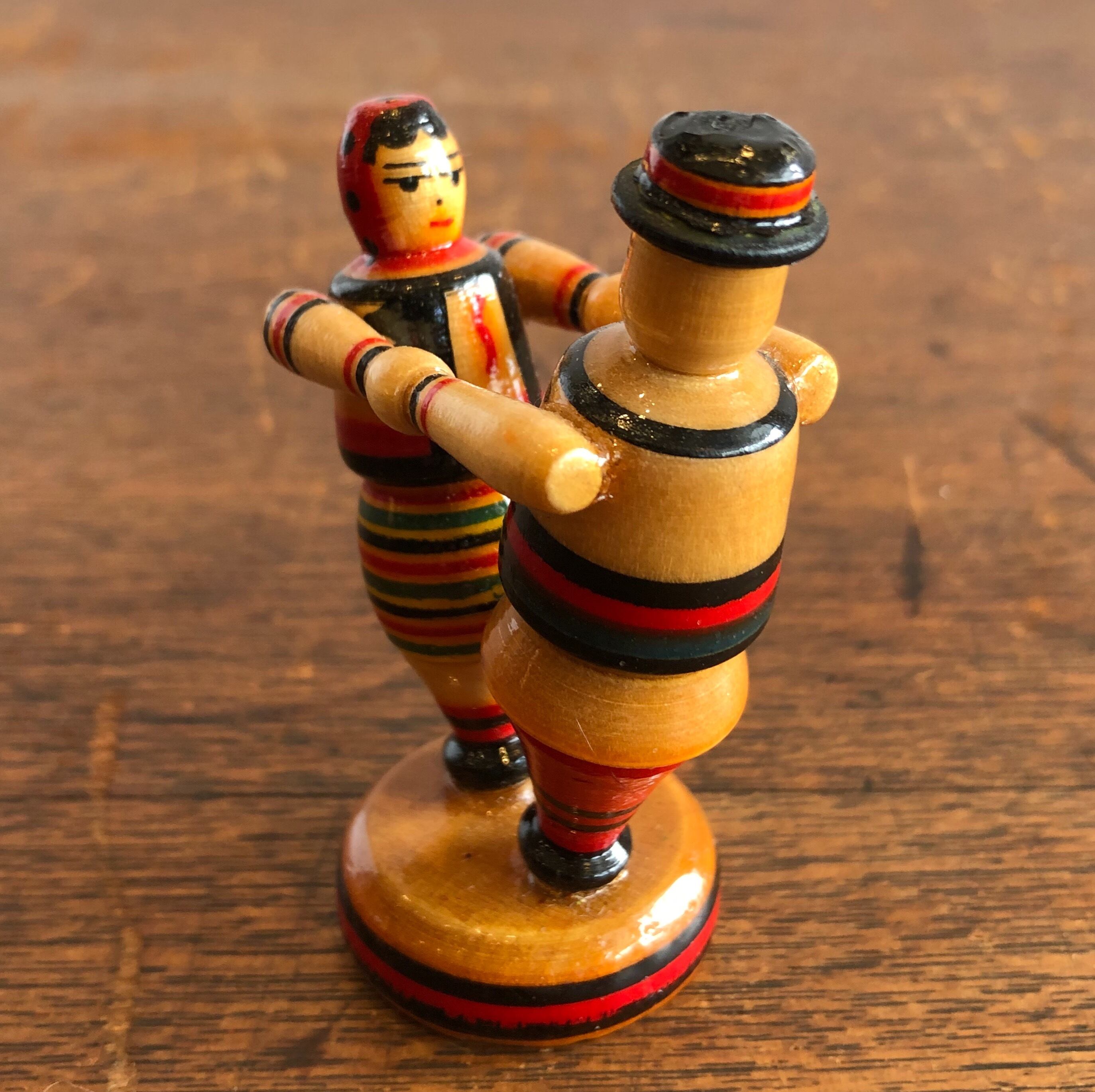 古いもののため、多少の擦れ感、男性の帽子部分に塗料ハゲなどございますが、目立たないように補修済みです。古いものとご理解の上、お買い求めください。