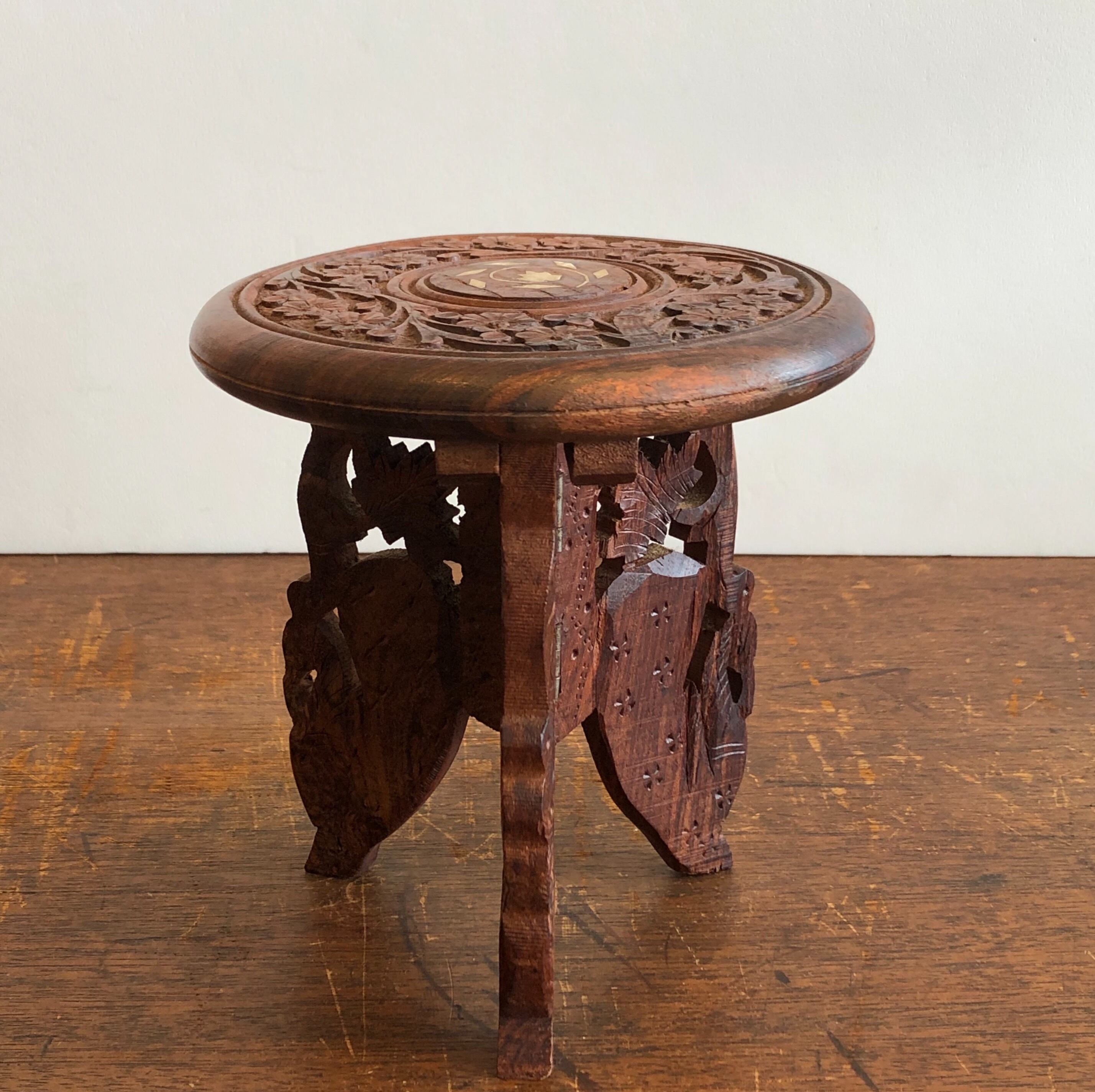 手の込んだ象嵌細工や、細やかな彫刻で作られた飾り台はインテリアのアクセントとして活躍してくれそうです。