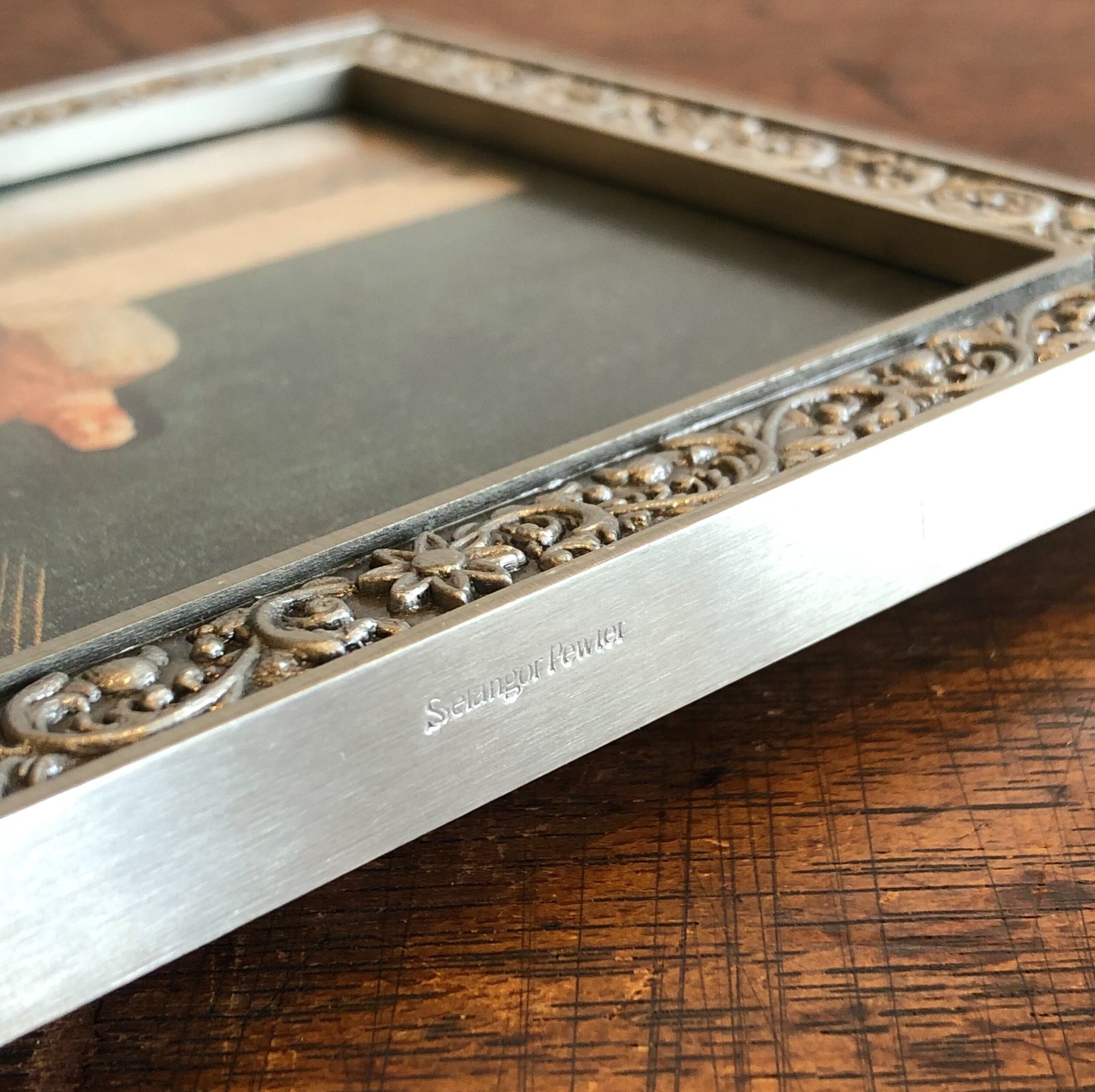 マレーシア王室御用達の世界最大のピューターメーカー、ロイヤルセランゴールのヴィンテージフレーム。艶消しガラスが入っているので中の写真が反射しにくく、ピューターのフレームデザインも高級感があり素敵です。